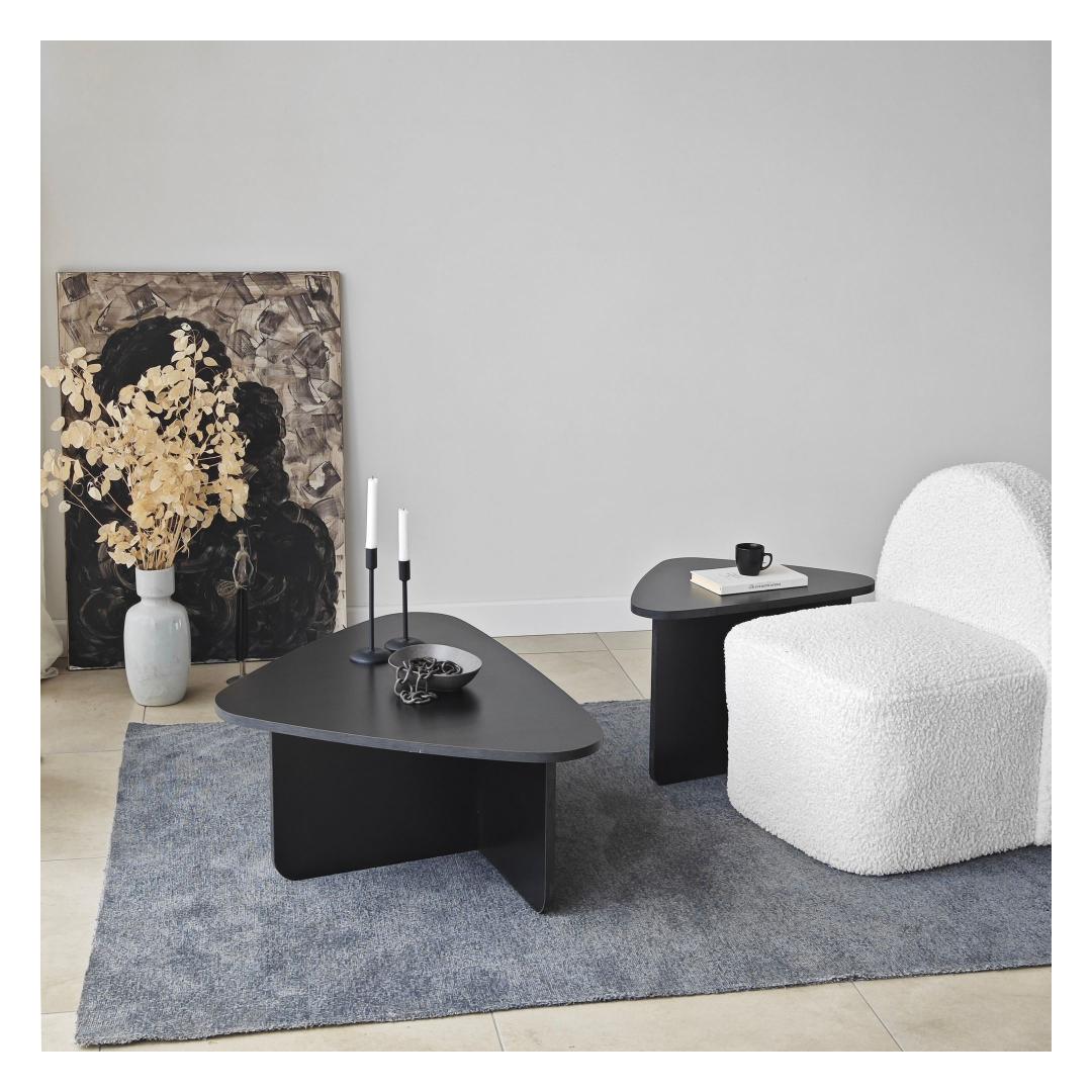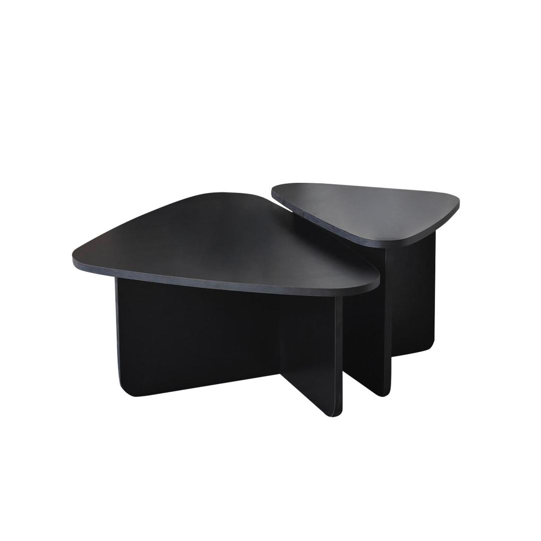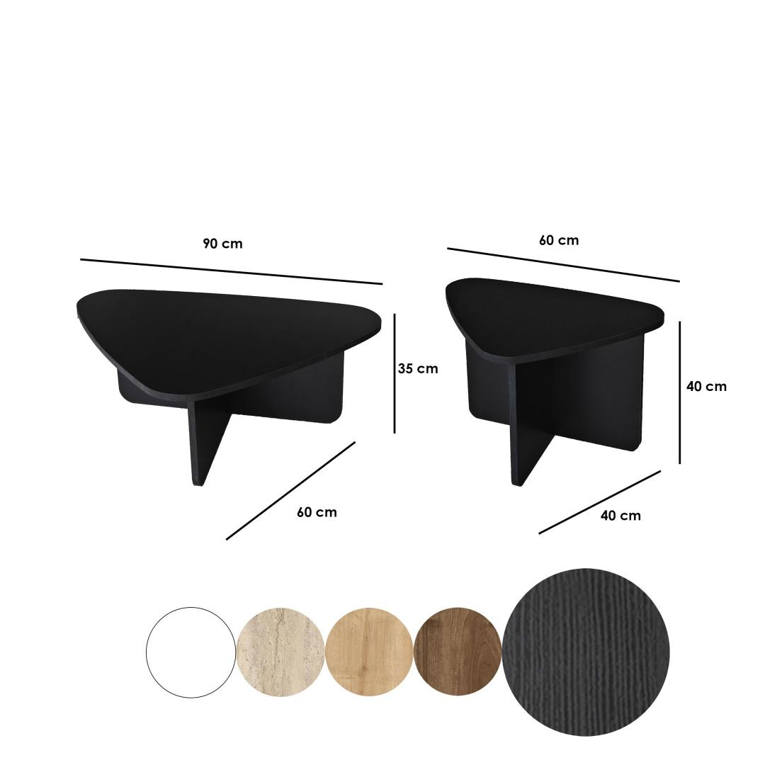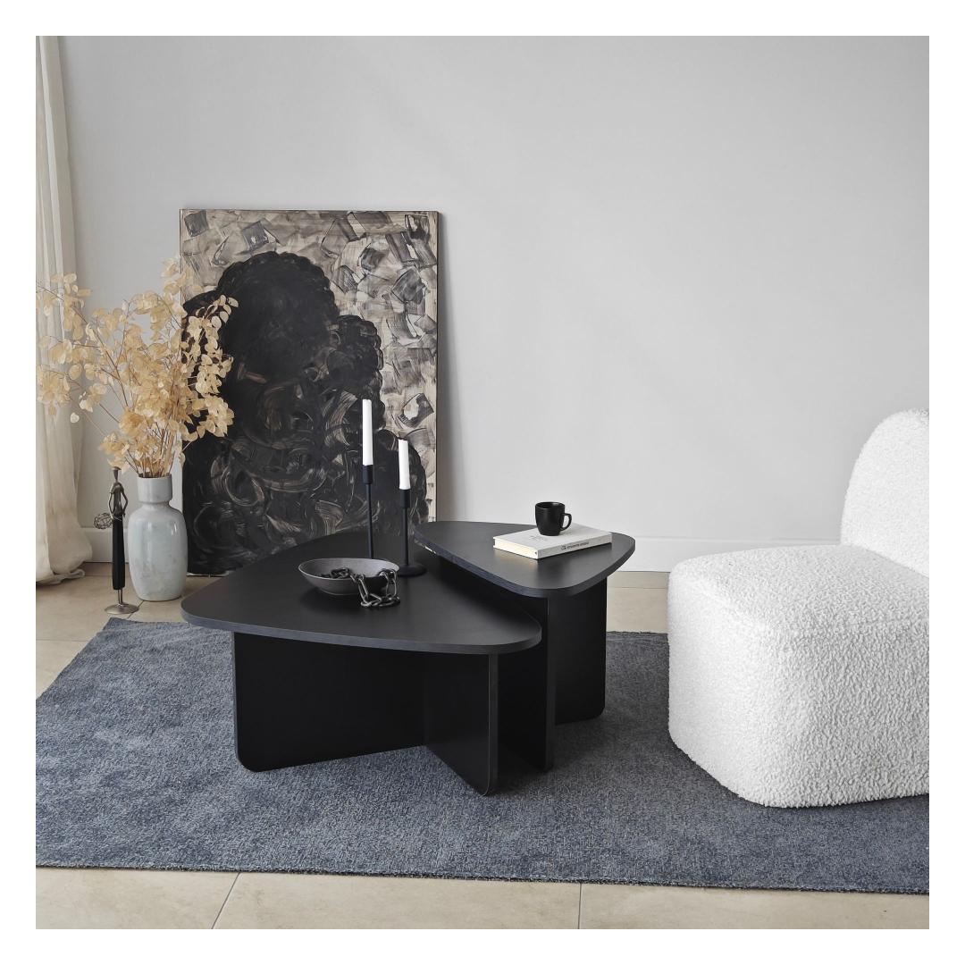 Kohvilaudade komplekti must värv lisab elegantsi igasse ruumi, samas kui 100% melamiiniga kaetud puitlaastplaadi raam tagab vastupidavuse ja pikaealisuse. PVC-kantliistud lisavad komplektile lihvitud viimistluse, muutes selle teie kodu sisustusele ajatuks täienduseks.