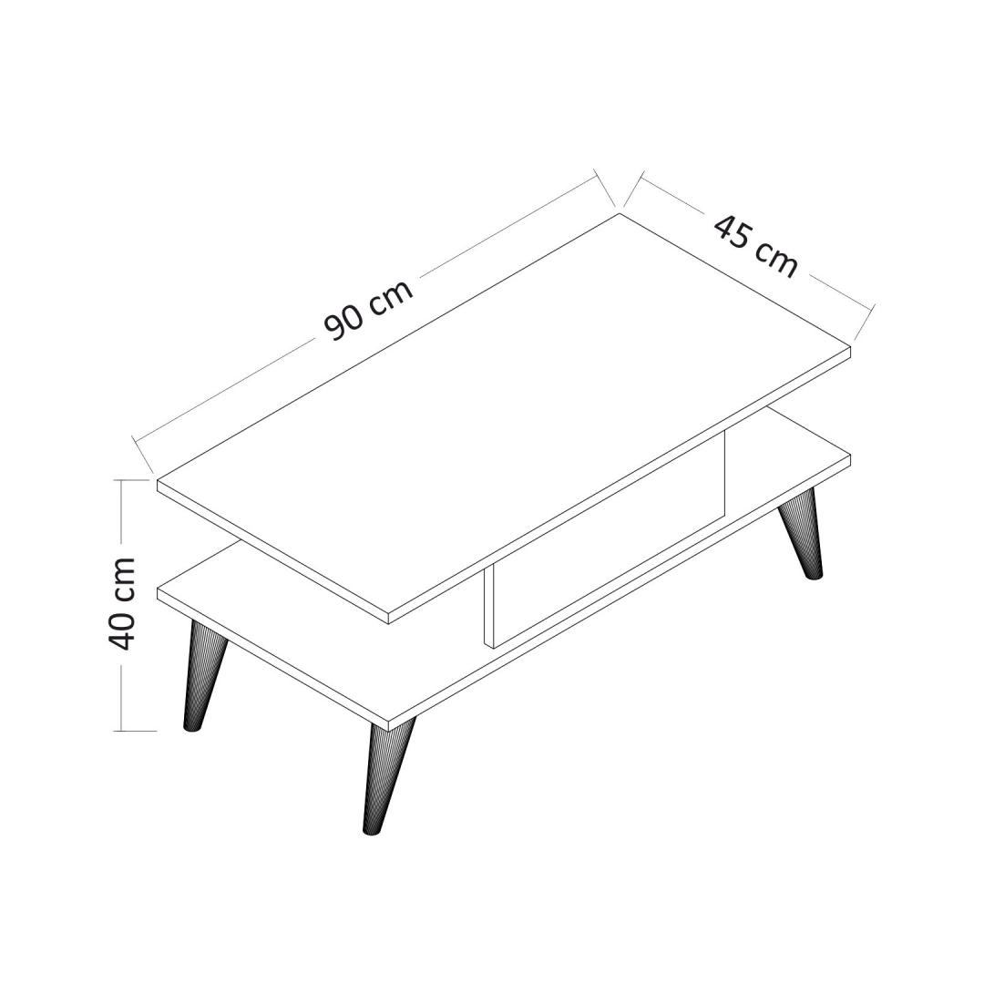 90 cm laiuse, 40 cm kõrguse ja 45 cm sügavusega kohvilaud pakub piisavalt ruumi teie lemmikraamatutele, ajakirjadele või dekoratiivsetele esemetele. Selle ruumikas lauaplaat sobib ideaalselt kohvihommikute korraldamiseks, külaliste vastuvõtmiseks või lihtsalt rahulikuks õhtu nautimiseks oma lähedastega. See on ideaalne keskne ese, mis toob inimesed kokku ning loob sooja ja kutsuva atmosfääri.