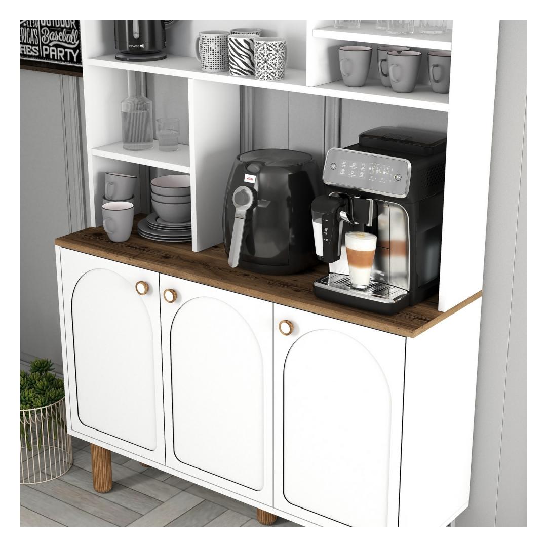 Muuda oma hommikune rutiin meie uimastava kohvibaarikapiga. See elegantne ese on loodud selleks, et tõsta teie kohvielamust ja tuua teie koju rafineeritust. Tänu oma elegantsele disainile ja rohkele hoiuruumile sobib see kapp ideaalselt kõigi teie kohvi tarvikute korraldamiseks ühes mugavas kohas. Organiseeri stiilseltÜtle hüvasti segastele töölaudadele ja segastele kapidele. Meie kohvibaarikapis on arvukalt riiuleid ja täiendavaid hoiuvõimalusi, et hoida oma kohvitassid, oad ja tarvikud korralikult organiseeritud ja kergesti ligipääsetavad. Selle kapi abil saate luua oma kohvioaasi otse oma kööki. Elegantne ja funktsionaalneValmistatud 100% melamiiniga kaetud puitlaastplaadist, ei ole see kapp mitte ainult vastupidav, vaid ka kergesti puhastatav ja hooldatav. Elegantne valge värv lisab igale ruumile kaasaegse tooni, samas kui 18 mm paksus tagab stabiilsuse ja pikaealisuse. Lisaks pakub võimalus kinnitada see seinale lisaturvalisust ja meelerahu. Tehnilised üksikasjad:Materjal: 100% melamiiniga kaetud puitlaastplaatPaksus: 18 mmLaius: 120 cmKõrgus: 203 cmSügavus: 35 cmVärv: valgeArvukad riiulid hoiustamiseksTäiendavad hoiustamisvõimalusedVõimalik kinnitada seina külge stabiilsuse lisamiseksUuendage oma kohvinurka meie kohvibaarikapiga ja kogege mugavust ja elegantsust, mida see teie koju toob. Tellige oma juba täna ja alustage oma päeva stiilselt! Värv: White