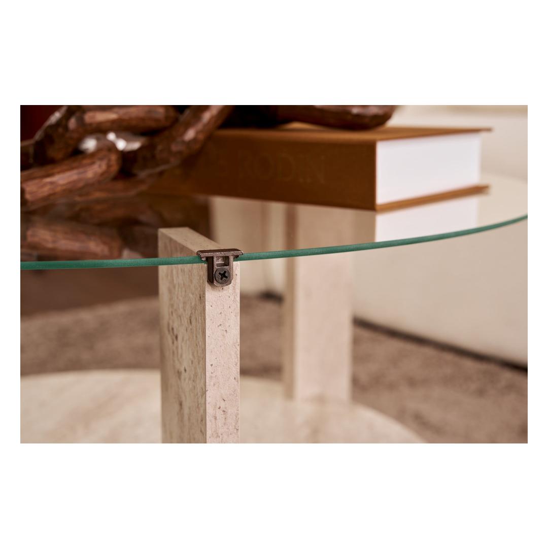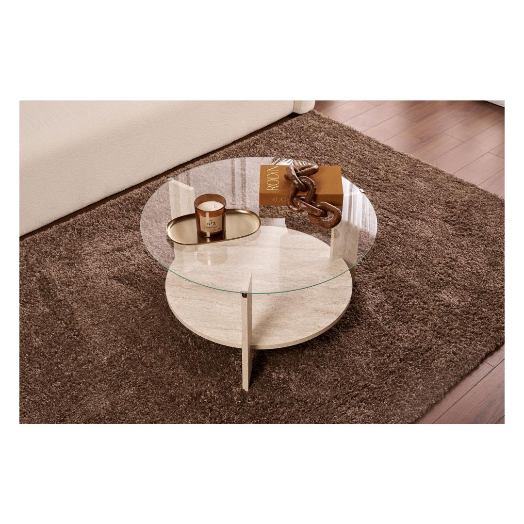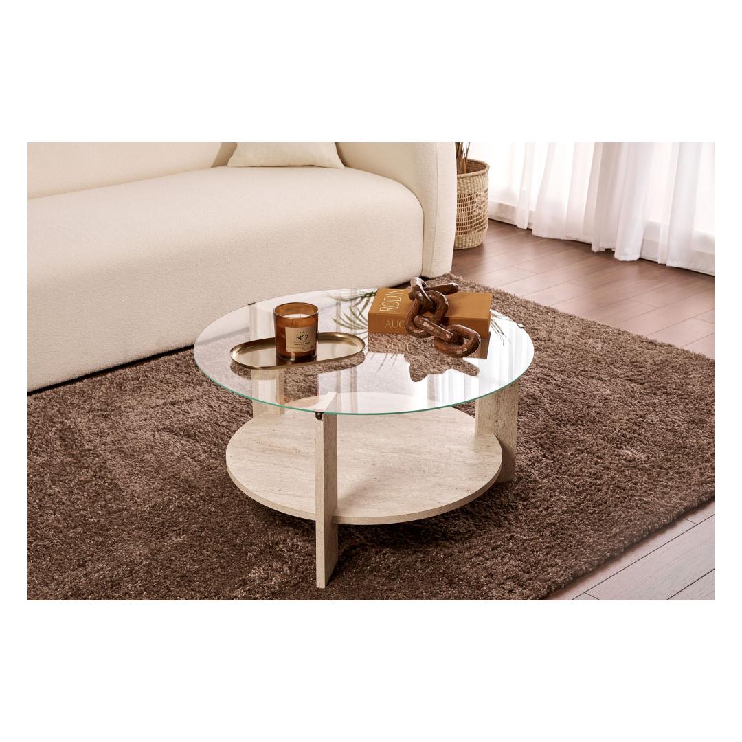Muuda oma eluruum meie kauni kohvilaudaga, mis on valmistatud 100% karastatud klaasist, et saavutada stiilne ja kaasaegne välimus. Läbipaistev klaasipind toob kaunilt esile sinu lemmikdekooritud esemed, samas kui travertiini värvi melamiinkattega puitlaastplaatide raam lisab igasse ruumi elegantsi.