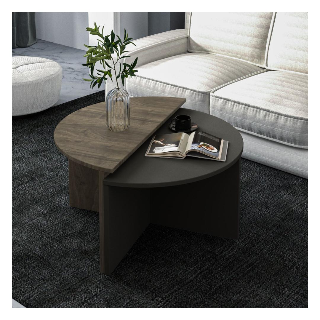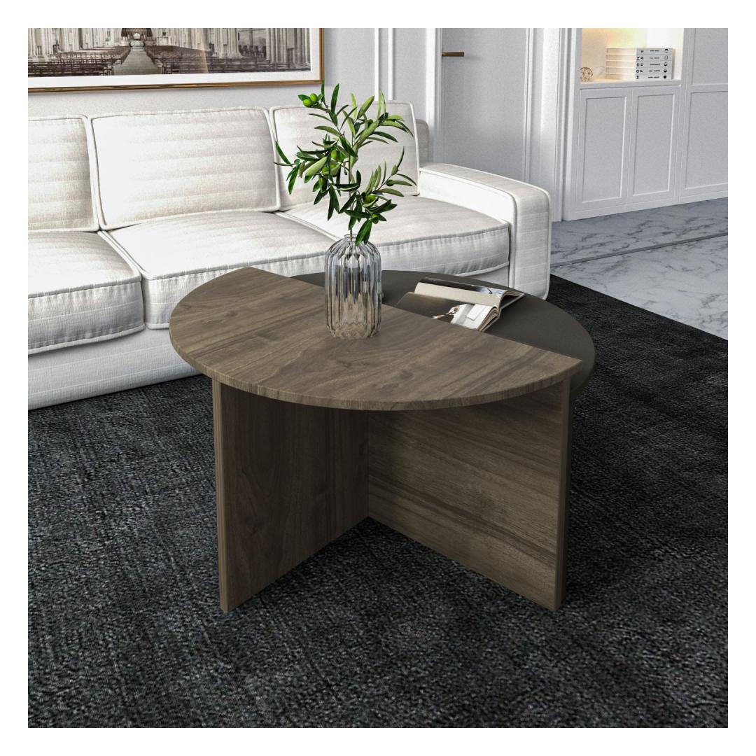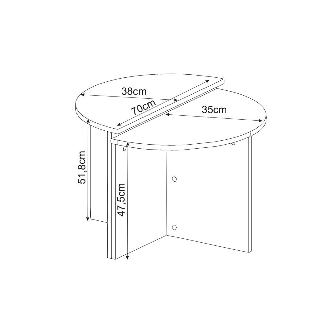 Esitleme meie hämmastavat ja mitmekesist kohvilaudade komplekti, mis on ideaalne, et lisada teie eluruumi elegantsi. See kaunilt valmistatud komplekt on loodud mitte ainult teie kodu esteetika parandamiseks, vaid pakub ka funktsionaalsust ja mugavust.Elegants ja funktsionaalsus koosSelle kohvilaudade komplekti voolujooneline disain kindlasti muljet avaldab teie külalistele ja tõstab teie elutoa üldilmet. Kontrastsed pähklipuu ja antratsiidi värvid lisavad igale sisustusele modernse puudutuse, muutes selle ideaalseks lisandiks igasse koju.Mugavus teie käeulatusesKuna see komplekt sisaldab kahte lauda, on teil paindlikkus kasutada neid koos komplektina või eraldi erinevates kodu piirkondades. Laudade erinevad kõrgused ja suurused võimaldavad lõputuid võimalusi stiilimiseks ja paigutamiseks.Kvaliteetne käsitööValmistatud 100% melamiinkattega puitlaastplaadist, on see kohvilaudade komplekt mitte ainult vastupidav ja pikaealine, vaid ka lihtne puhastada ja hooldada. 18 mm paksune plaat tagab stabiilsuse ja tugevuse, muutes selle usaldusväärseks mööbliesemeks aastateks.Tehnilised andmed:Materjal: 100% melamiinkattega puitlaastplaatPaksus: 18 mmEsimene laud: Laius: 70 cm, Kõrgus: 51,8 cm, Sügavus: 38 cmTeine laud: Laius: 70 cm, Kõrgus: 47,5 cm, Sügavus: 35 cmVärv: Pähklipuu ja antratsiit Värv: Walnut Anthracite