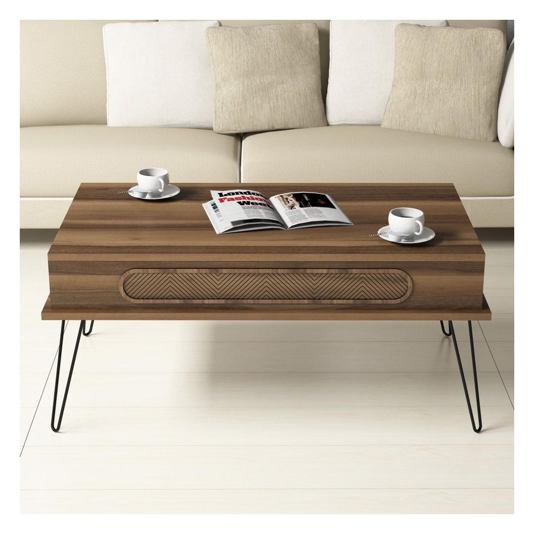 Tutvustame meie uimastavat ja mitmekülgset kohvilauda, mis on teie eluruumi kohustuslik täiendus. See kaasaegse ja uuendusliku disainiga laud vallutab kindlasti teie südame ja tõstab iga ruumi stiili. Vabastage emotsioonide jõudKogege puhta rõõmu tunnet, kui kogunete koos oma lähedastega selle suurepärase kohvilaua ümber. Selle elegantne ja kaasaegne disain loob sooja ja koosolemise atmosfääri, muutes iga koos veedetud hetke veelgi erilisemaks.Vabastage veenmisjõudSee ülima täpsusega valmistatud kohvilaud on valmistatud 100% melamiiniga kaetud puitlaastplaadist, mis tagab vastupidavuse ja pikaealisuse. 18 mm paksus ja 4 mm cnc-reljeef lisavad selle üldisele väljanägemisele elegantsi ja rafineeritust. Metallist jalad pakuvad tugevat tuge, muutes selle usaldusväärseks mööbliesemeks aastateks. Tehnilised üksikasjadMaterjal: Materjal: Materjal: Materjal: Materjal: Materjal: Materjal: Materjal: materjal: 100% melamiiniga kaetud puitlaastplaatPaksus: 18 mmCNC reljeef: 4 mmJalad: MetallLaius: 105 cmKõrgus: 45,8 cmSügavus: 56 cmRiiuli kõrgus: 12. 2 cmJala kõrgus: 30 cmVärv: PähklipuuVabastage stiili jõudVõtke omaks moodne ja uudne kontseptsioon meie kohvilaual, millel on tööstuslikust inspireeritud disain Chevroni aktsentidega. Pähklipuu värv lisab igasse ruumi elegantsust ja elegantsi, mistõttu sobib see ideaalselt nii kaasaegsetesse kui ka traditsioonilistesse interjööridesse. Ärge jätke kasutamata võimalust muuta oma elutuba stiili ja mugavuse pelgupaigaks. Tellige meie kohvilaud juba täna ja kogege emotsiooni ja funktsionaalsuse täiuslikku segu. Värv: Walnut