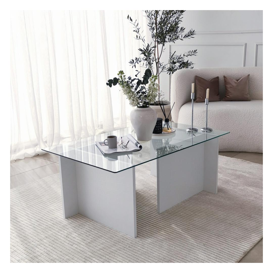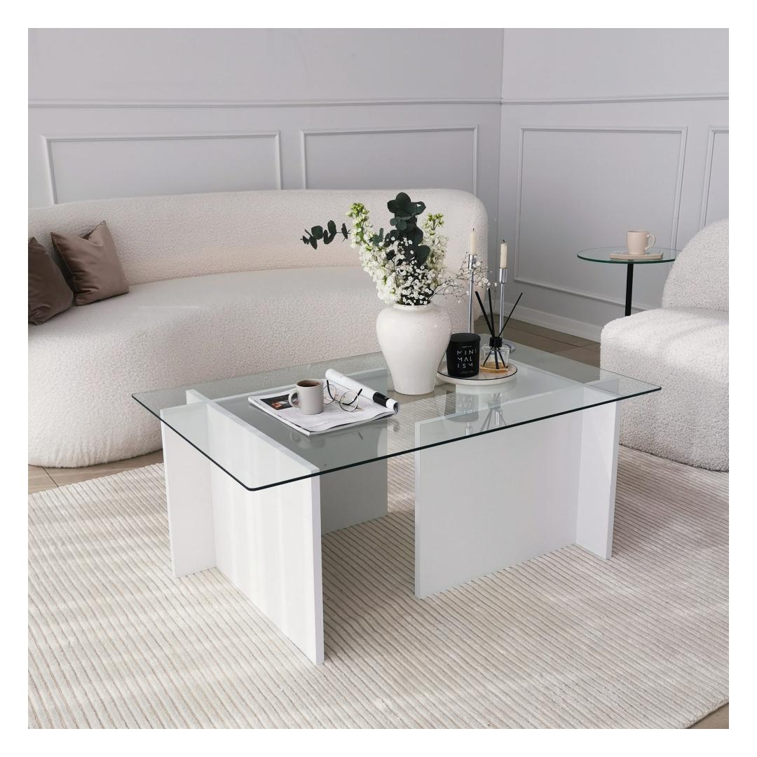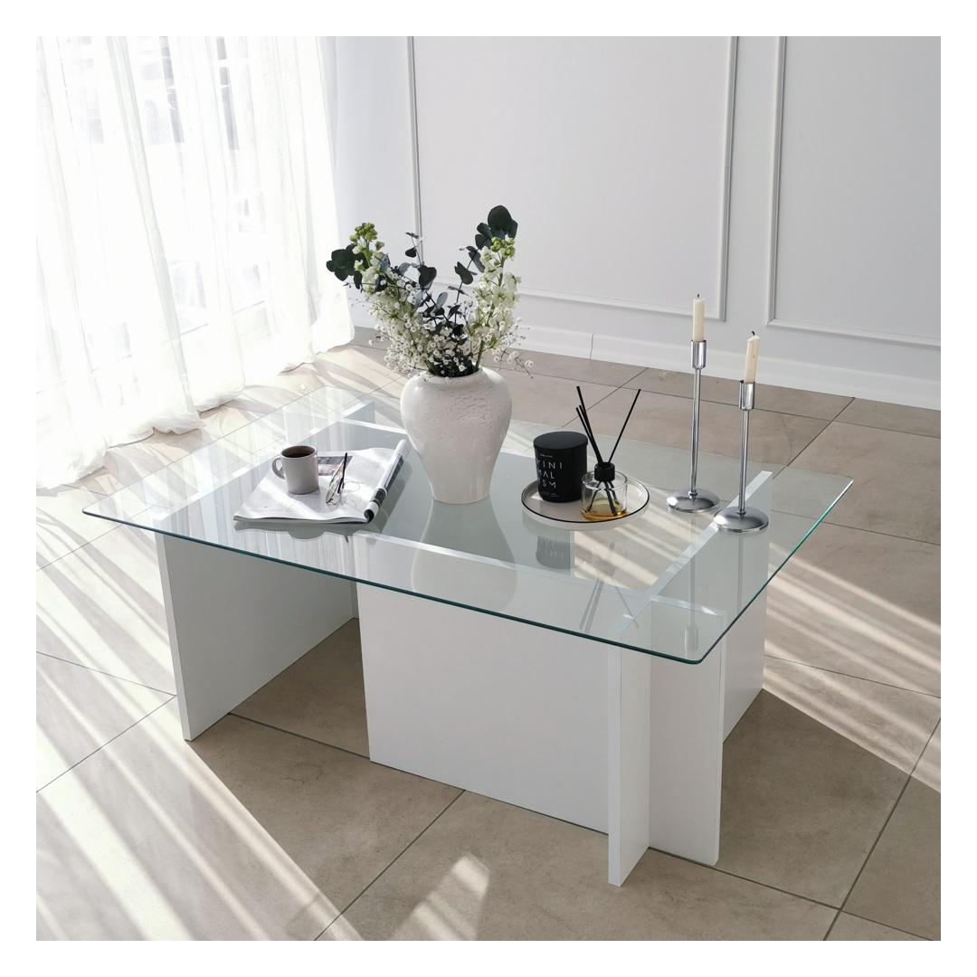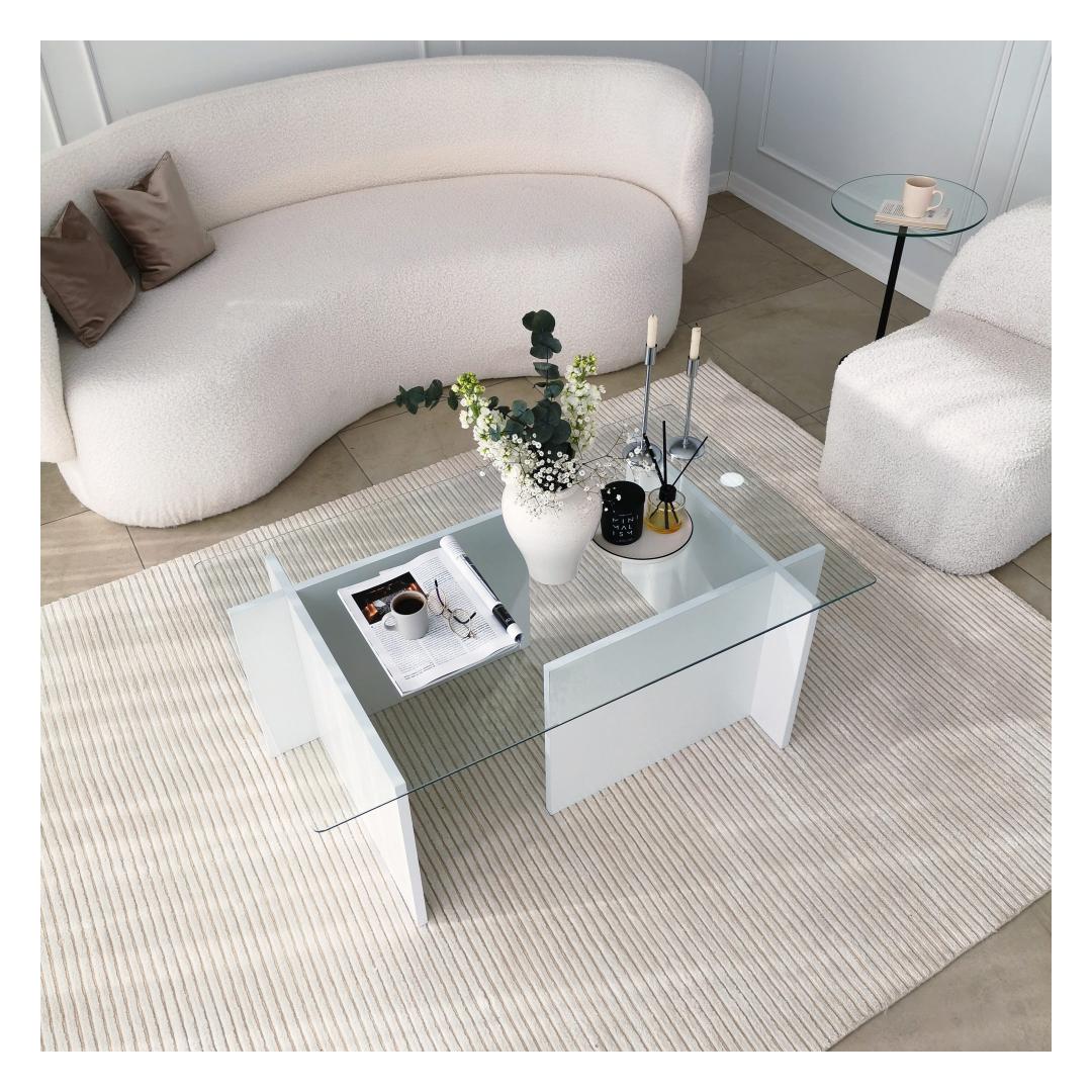See ülima täpsusega valmistatud kohvilaud on valmistatud 100% karastatud klaasist, mis mitte ainult ei lisa glamuuri, vaid tagab ka vastupidavuse ja pikaealisuse. Klaasplaati toetab tugev raam, mis on valmistatud 100% melamiiniga kaetud puitlaastplaadist, mis tagab stabiilsuse ja tugevuse.
