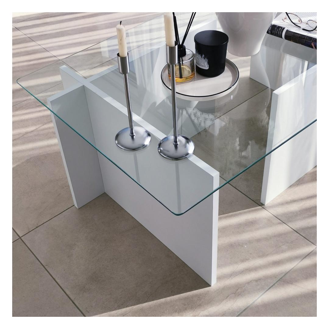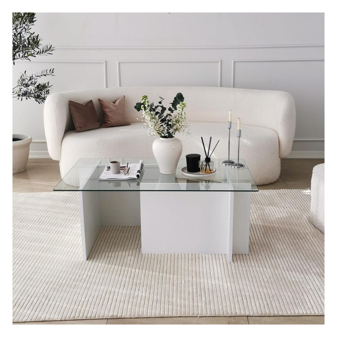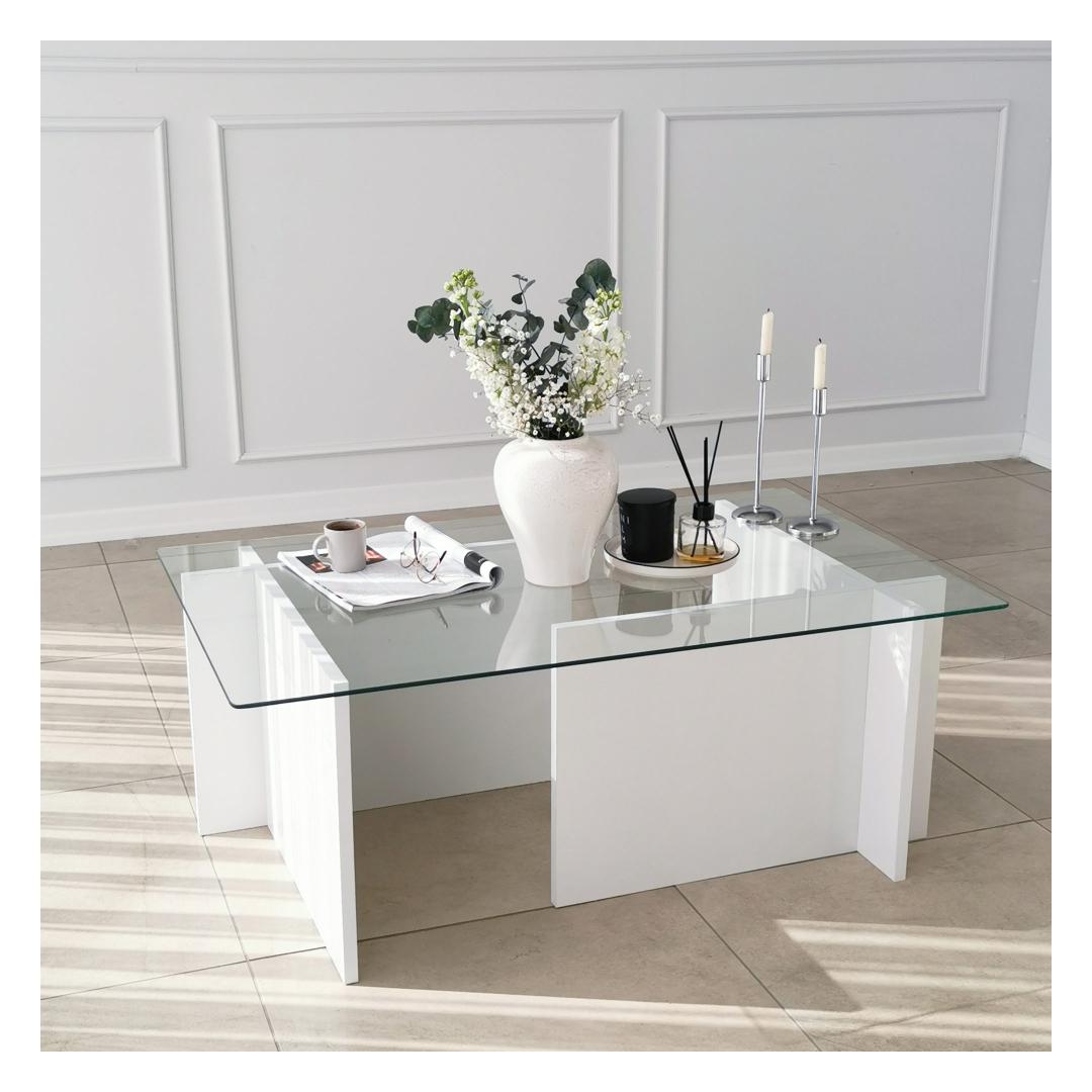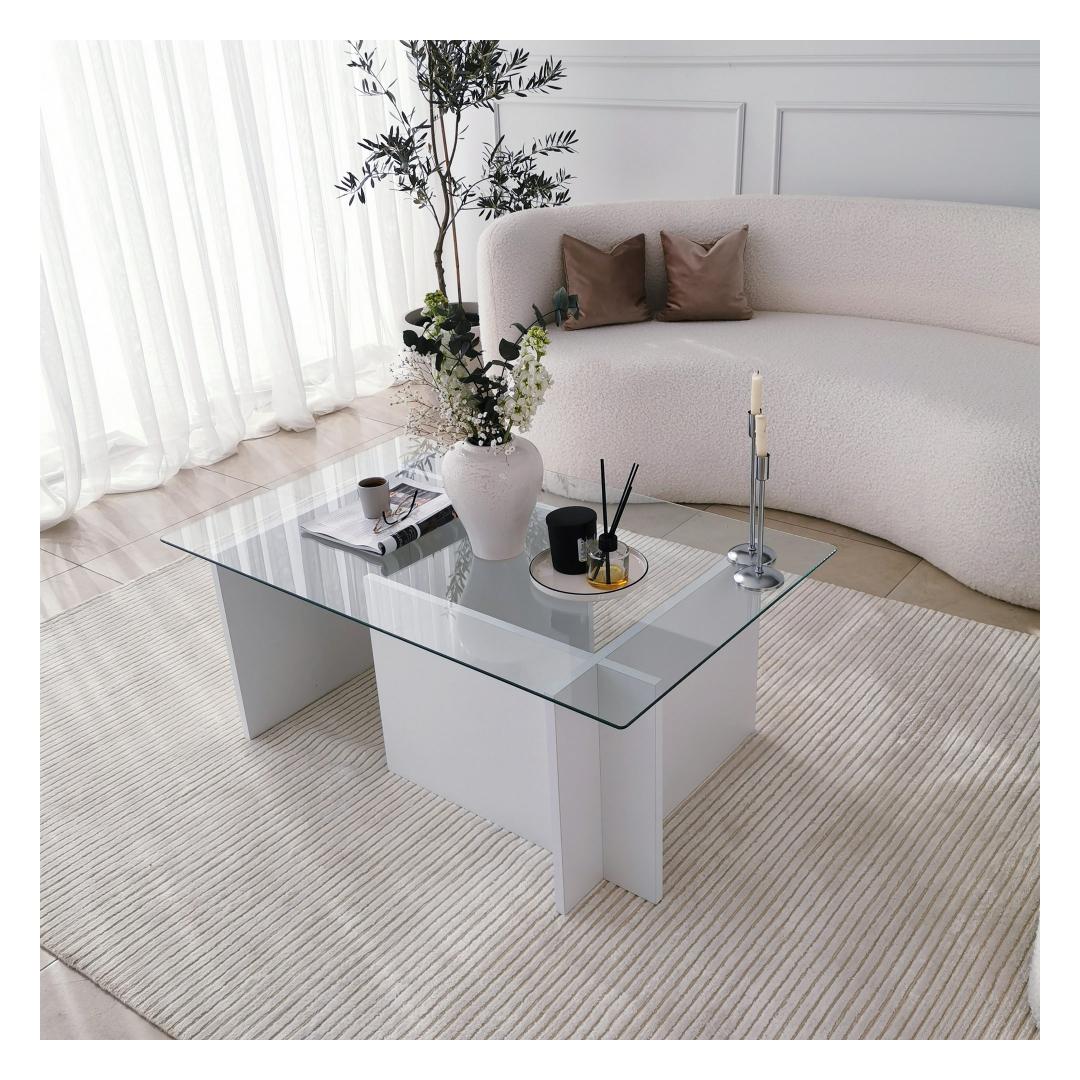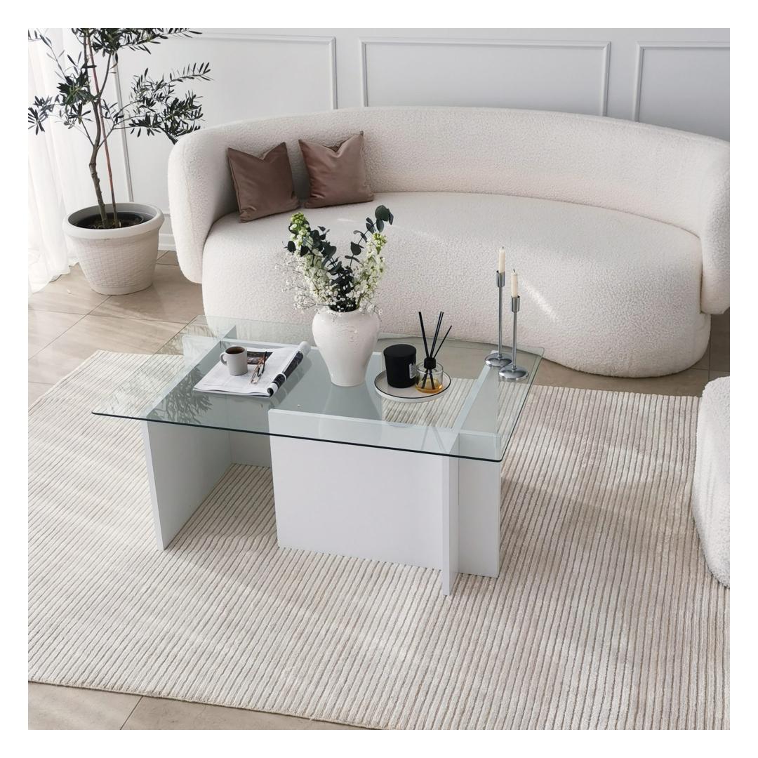 See ülima täpsusega valmistatud kohvilaud on valmistatud 100% karastatud klaasist, mis mitte ainult ei lisa glamuuri, vaid tagab ka vastupidavuse ja pikaealisuse. Klaasplaati toetab tugev raam, mis on valmistatud 100% melamiiniga kaetud puitlaastplaadist, mis tagab stabiilsuse ja tugevuse.