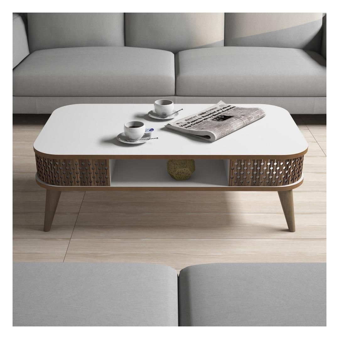 Tutvustame meie suurepärast moodsat uudset kohvilauda, tõelist meistriteost, mis tõstab teie eluruumi atmosfääri uutesse kõrgustesse. See ülima täpsusega ja detailidele tähelepanu pöörates valmistatud kohvilaud on loodud selleks, et võluda teie meeli ja tekitada aukartust. Vabastage elegantsi jõudMeie kohvilaud sobitub oma elegantse ja kaasaegse disainiga vaevata mis tahes sisekujundusega, lisades sellele elegantsi ja rafineeritust. Selle puhtad jooned ja minimalistlik struktuur loovad harmoonilise tasakaalu, muutes selle ideaalseks keskpunktiks teie elutoas.Võrratu kvaliteet ja vastupidavusSee kohvilaud on valmistatud 100% melamiiniga kaetud puitlaastplaadist, mis on ehitatud kestma. 18 mm paksus tagab erakordse tugevuse, mis võimaldab taluda aja katsumust. Võite olla kindel, et see kohvilaud on pikaajaline investeering, mis avaldab muljet veel aastaid. Visioon valge värviKohvilaud on uhke valge värviga, mis õhkab puhtuse ja rahulikkuse tunnet. Selle puhas toon muudab teie ruumi vaevata heledamaks, luues kutsuva atmosfääri, mis sobib ideaalselt lõõgastumiseks ja seltskondlikeks koosviibimisteks. Tehnilised üksikasjad:Materjal: Materjal: Materjal: Materjal: Materjal: Materjal: Materjal: Materjal: materjal: 100% melamiiniga kaetud puitlaastplaatPaksus: 18mmLaius: 105cmKõrgus: 34. 6cmSügavus: 60cmVärv: valgeHellitage meie moodsa-uuendusliku kohvilauda ilu ja kogege stiili ja funktsionaalsuse täiuslikku segu. Tõstke oma eluruumi juba täna esile ja tehke avaldus, mis jätab teie külalised imestama. Värv: White
