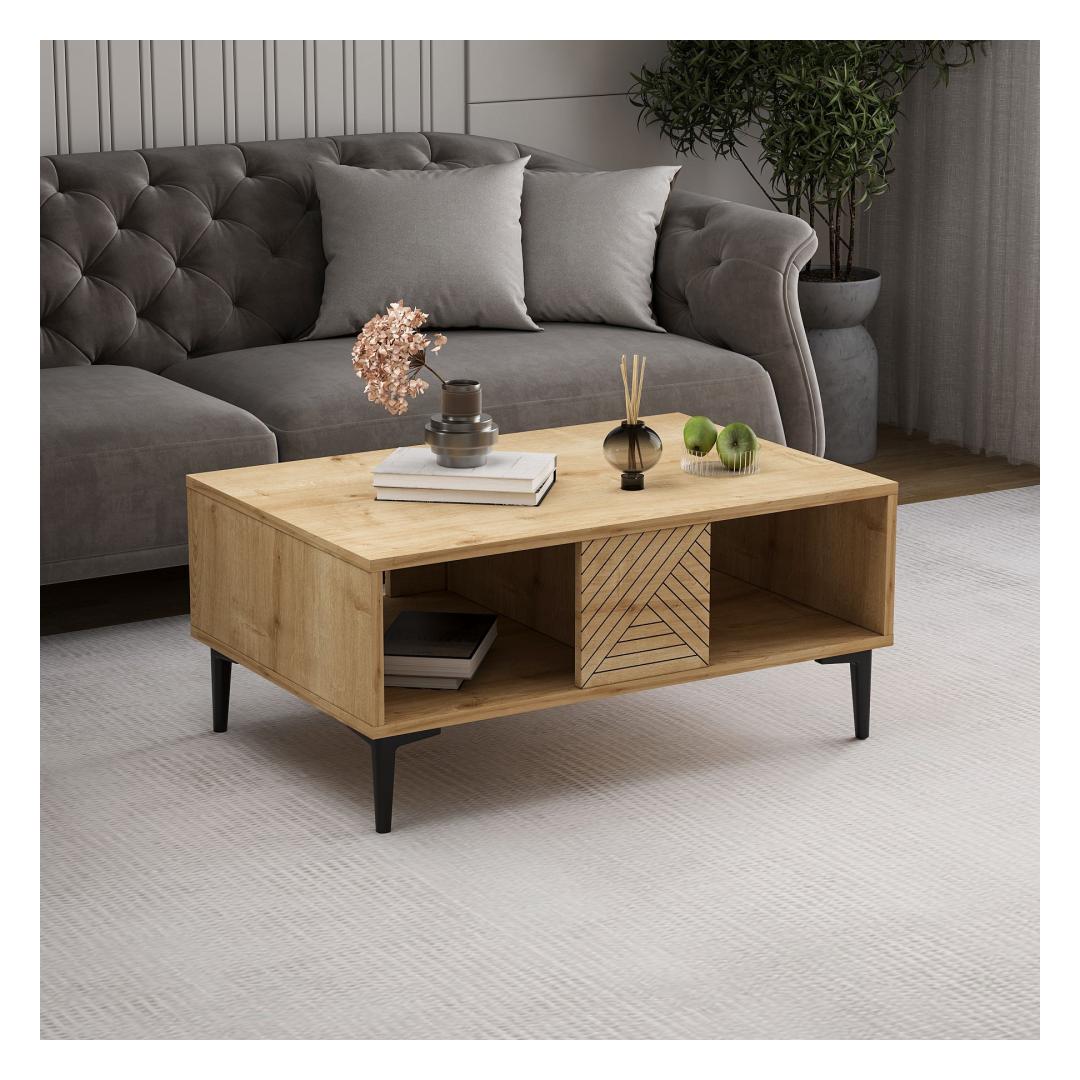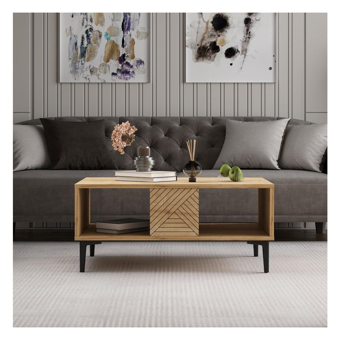 Sapphire Oak kohvilaud on varustatud modernse ja minimalistliku disainiga, mis sobib igasuguste sisustustüüpidega. Selle puhtad jooned ja rafineeritud viimistlus lisavad teie elutuppa luksuse puudutuse, luues sooja ja kutsuva atmosfääri, kus saate koos külalistega aega veeta.