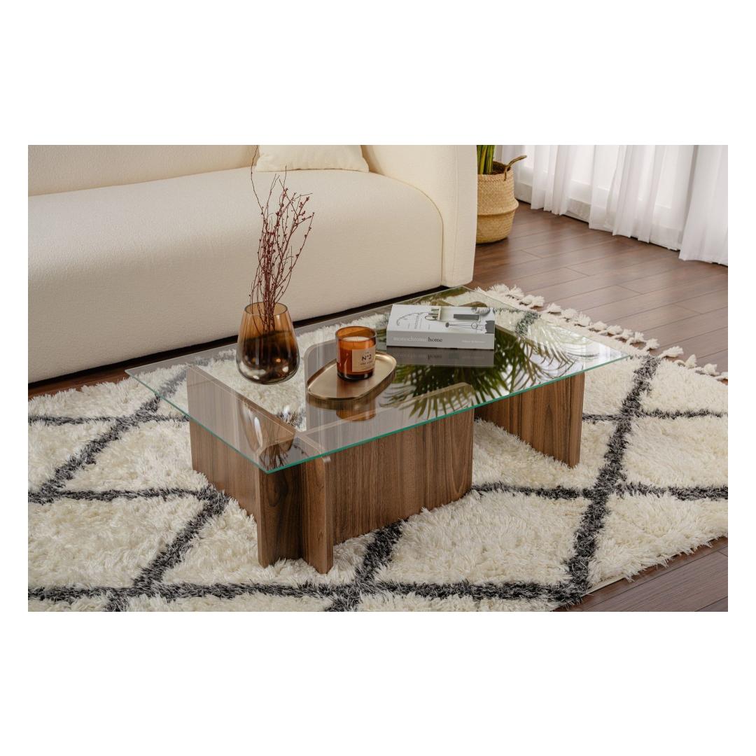 Muuda oma eluruum meie kauni pähklipuidust kohvilauaga. Valmistatud 100% karastatud klaasist ja 100% melamiinkattega puitlaastplaadist raamist, kiirgab see kohvilaud elegantsi ja rafineeritust.