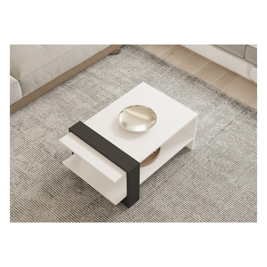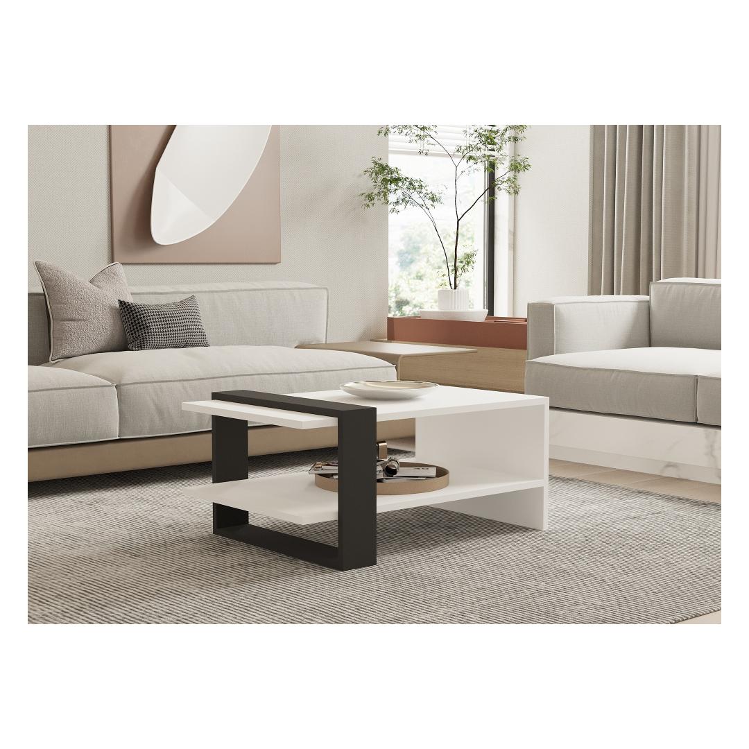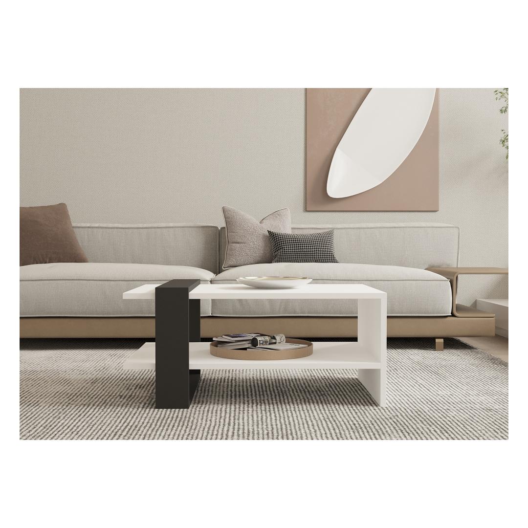 Muuda oma eluruum meie kauni 2-tasandilise mitmeotstarbelise kohvilaudaga. Valmistatud 100% melamiinkattega puitlaastplaadist, on see kohvilaud mitte ainult vastupidav, vaid ka äärmiselt stiilne. Sujuv disain ja kaasaegne värvikombinatsioon antratsiidi ja valgega tõstavad koheselt iga ruumi ilmet.