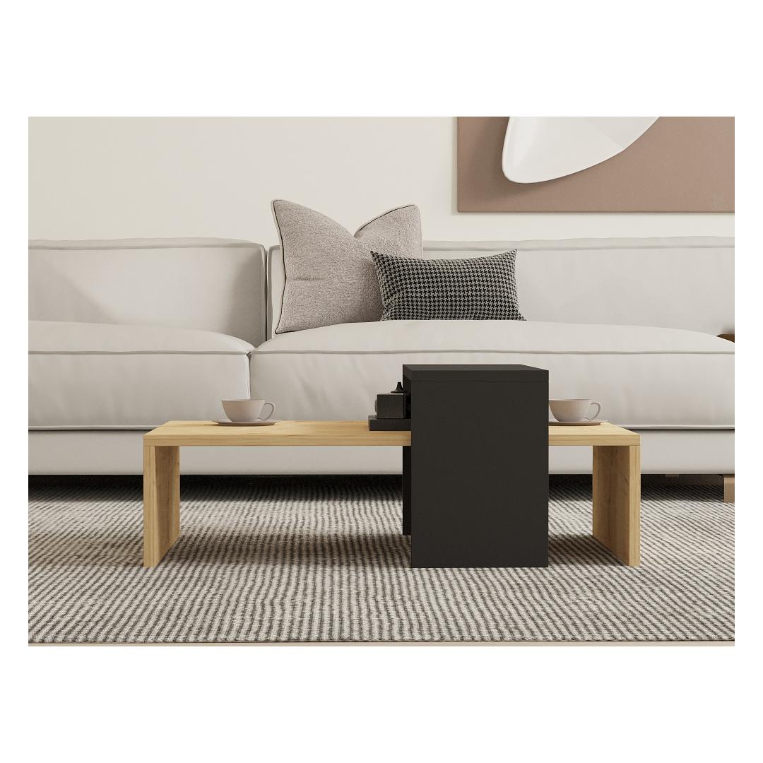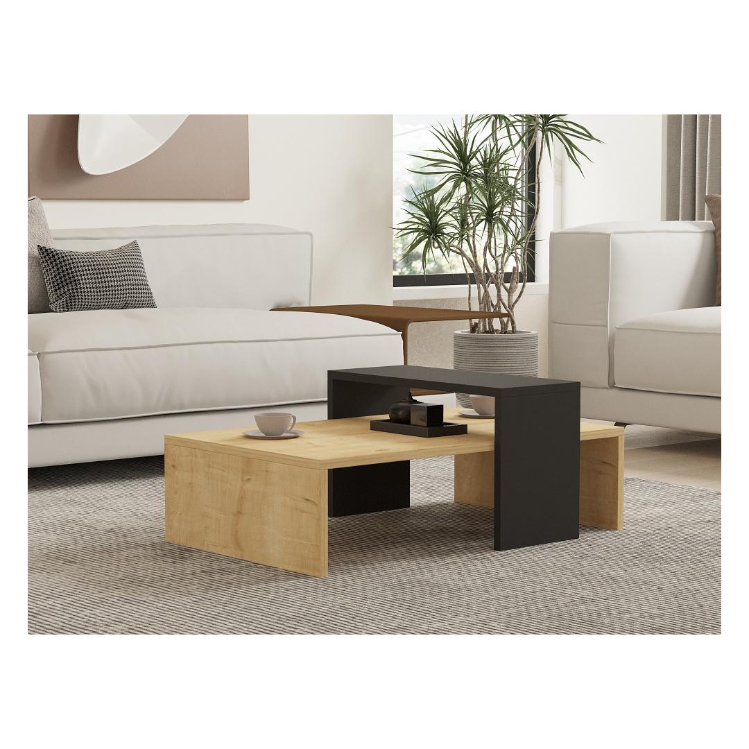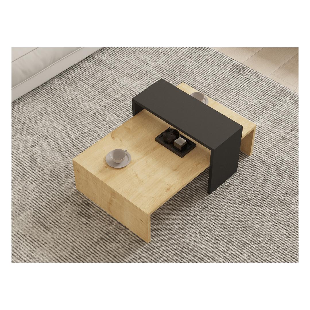Tutvustame meie uimastavat skandinaavia inspiratsiooniga kohvilauda, mis on loodud nii stiili kui ka funktsionaalsuse toomiseks teie eluruumi. See äärmiselt hoolikalt valmistatud kohvilaud on valmistatud 100% melamiiniga kaetud puitlaastplaadist, mis tagab vastupidavuse ja pikaealisuse. Selle elegantne ja modernne disain, milles on kombineeritud safiiri- ja antratsiitvärvid, parandab vaevata iga ruumi esteetikat.