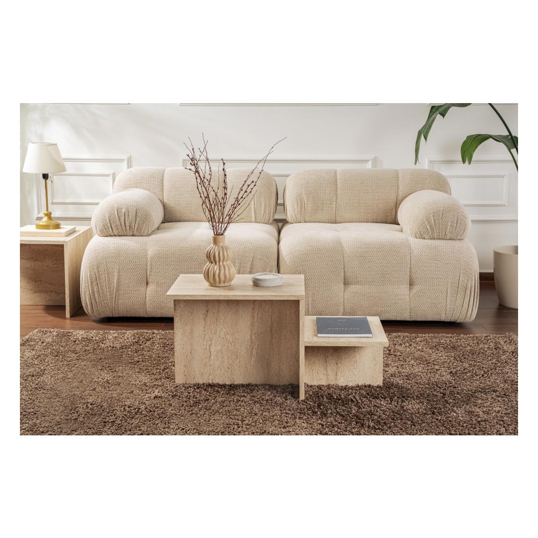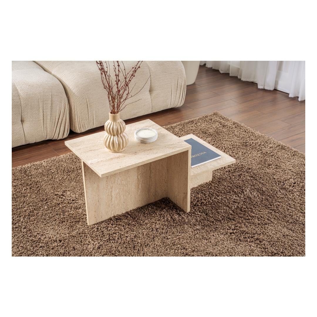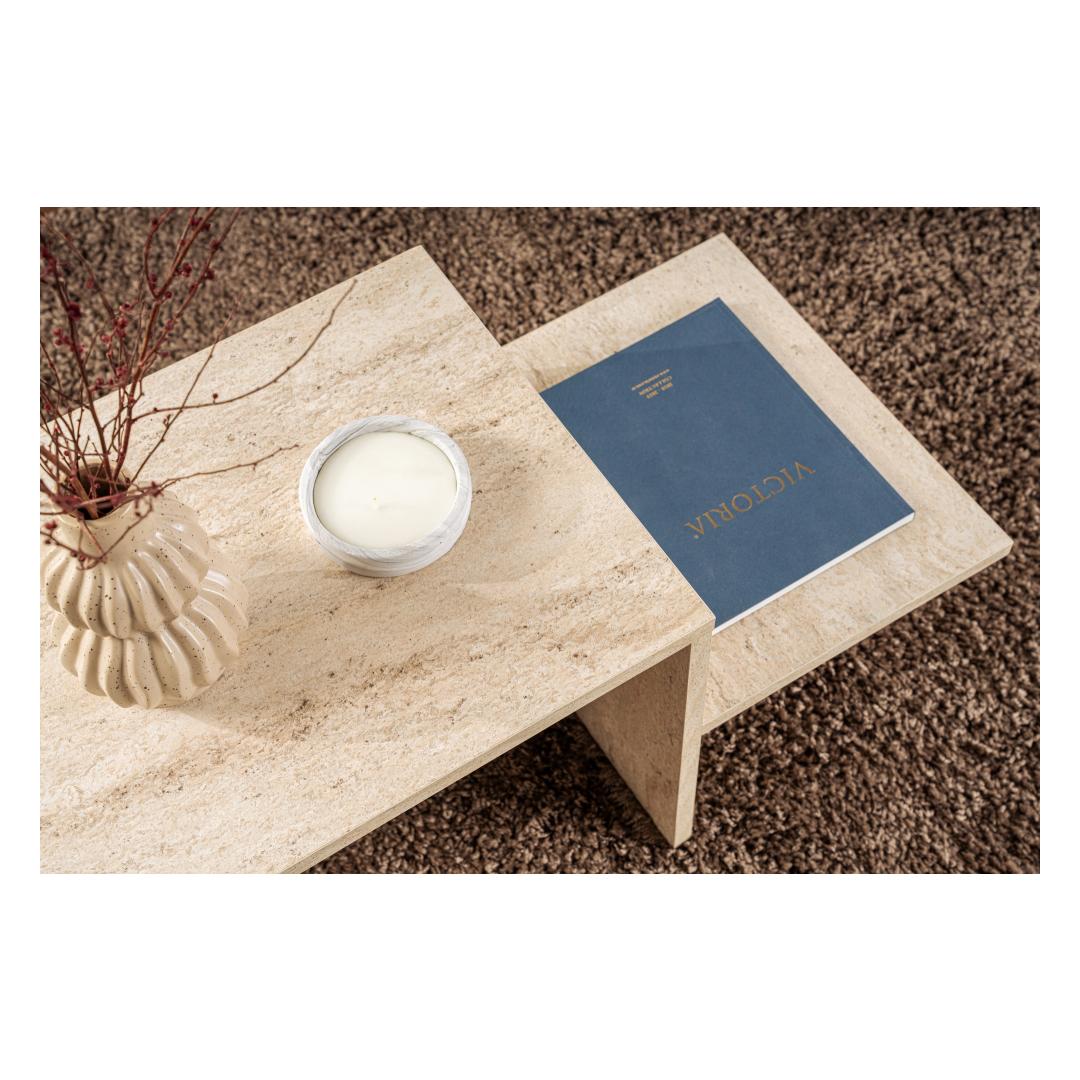 Kujutle, et tuled pärast pikka päeva koju ja lõõgastud selle kauni kohvilauda ees, nautides oma lemmikjooki ja elegantset atmosfääri, mida see sinu koju toob. Travertiini värv lisab luksuse ja rafineerituse puudutuse, muutes selle ideaalseks keskpunktiks sinu elutoas.