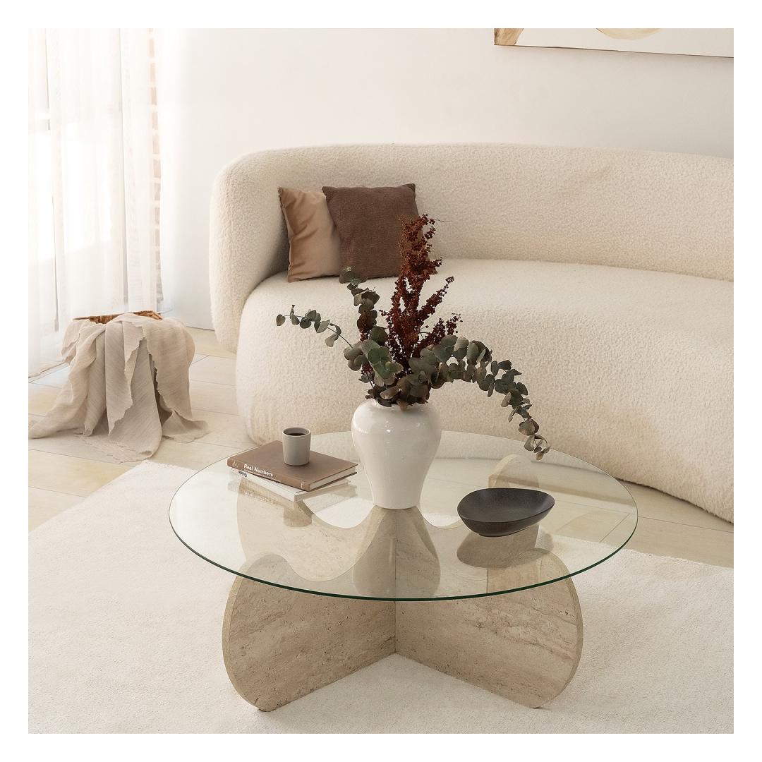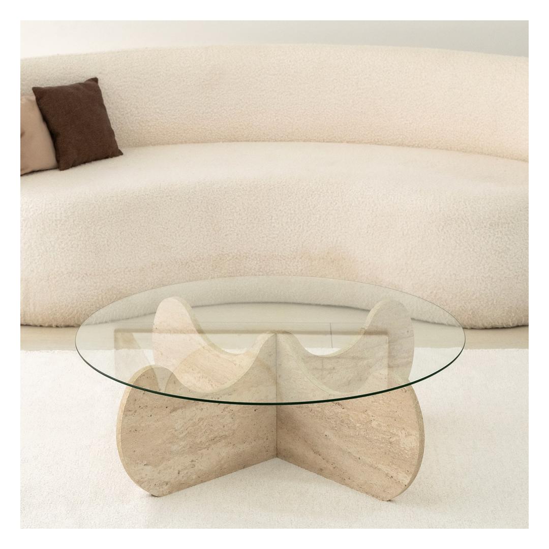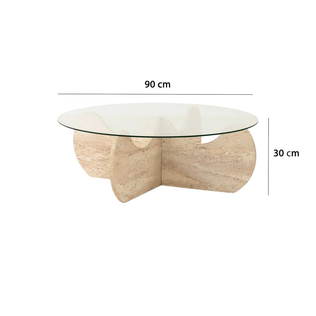 Marble kohvilaud on luksuslik travertiinvärv, mis lisab teie kodukaunistusele pisut küllust. Selle 18 mm paksus ja 90cm läbimõõt pakuvad piisavalt ruumi teie kohvilauaraamatutele, dekoratiivsetele esemetele ja muule. 30cm kõrgus sobib ideaalselt diivanil lebotamiseks ja tassi kohvi või tee nautimiseks.