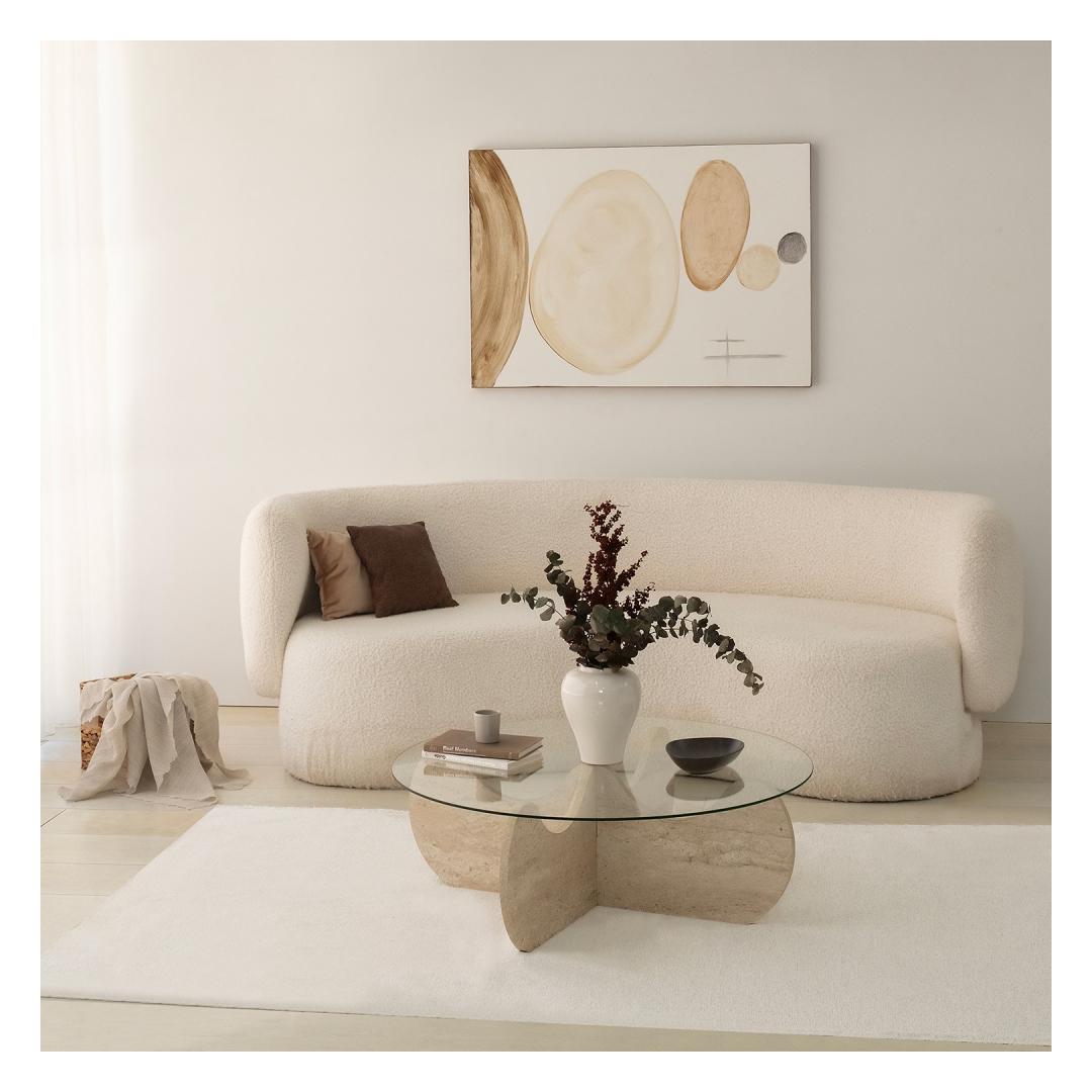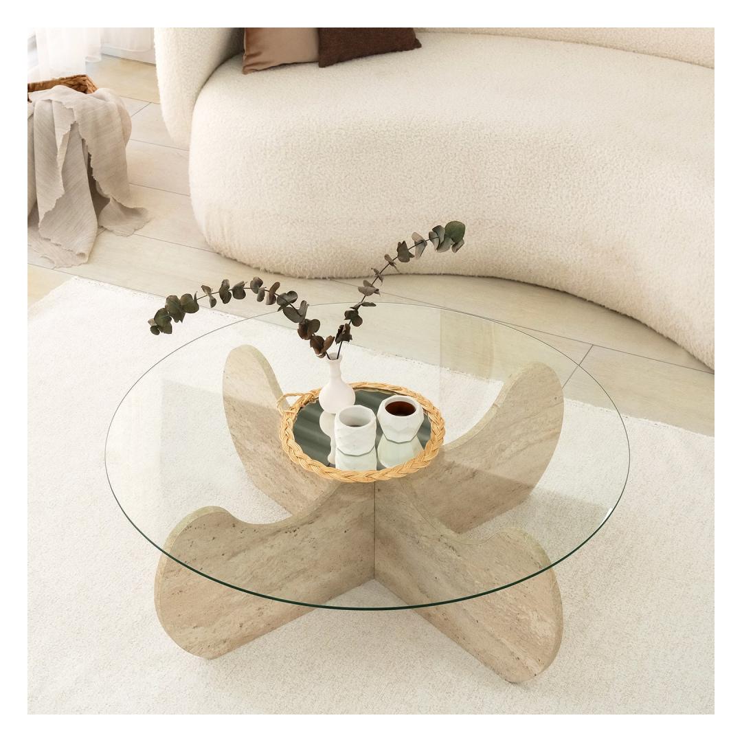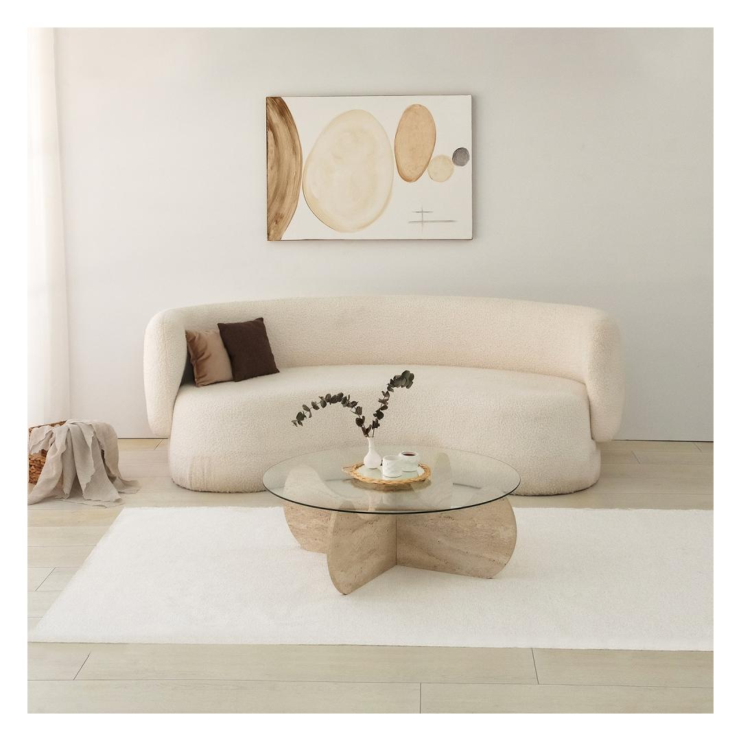 Marble kohvilaud on luksuslik travertiinvärv, mis lisab teie kodukaunistusele pisut küllust. Selle 18 mm paksus ja 90cm läbimõõt pakuvad piisavalt ruumi teie kohvilauaraamatutele, dekoratiivsetele esemetele ja muule. 30cm kõrgus sobib ideaalselt diivanil lebotamiseks ja tassi kohvi või tee nautimiseks.