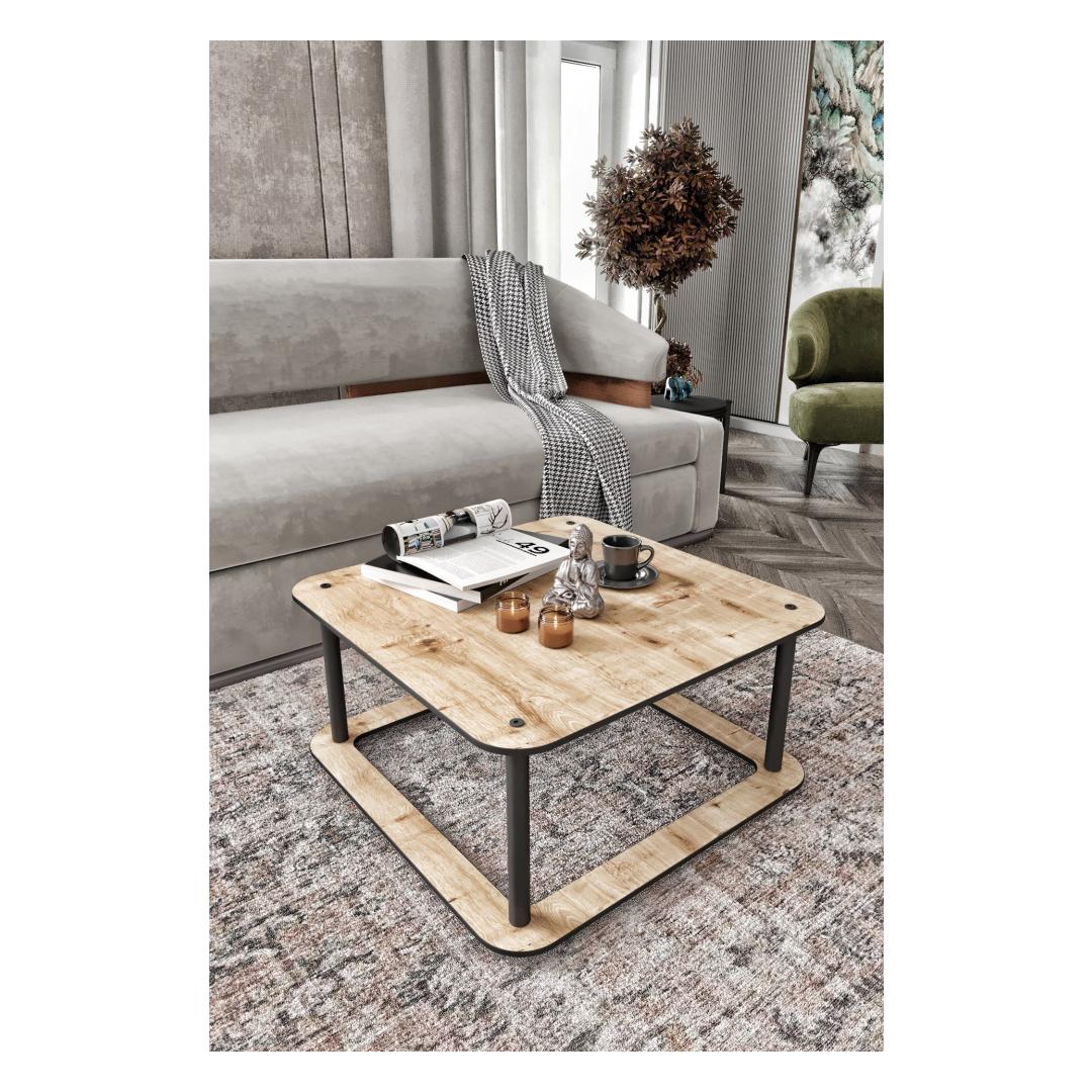 Valmistatud 100% MDF-ist, on see kohvilaud mitte ainult stiilne, vaid ka vastupidav ja pikaealine. Kompressitud Kraft-jalad pakuvad stabiilsust ja tuge, muutes selle ideaalseks lisandiks sinu elutuppa. Sujuv disain ja kaasaegne tööstuslik kontseptsioon teevad sellest kohvilaudast hädavajaliku igas kaasaegses kodus.