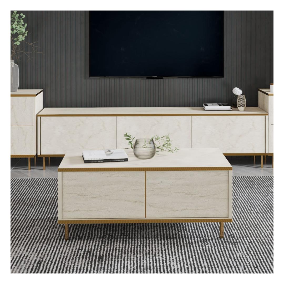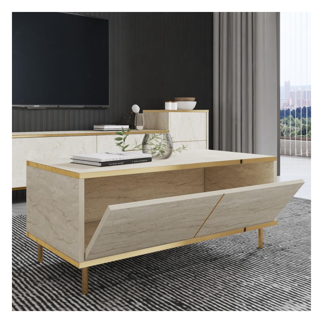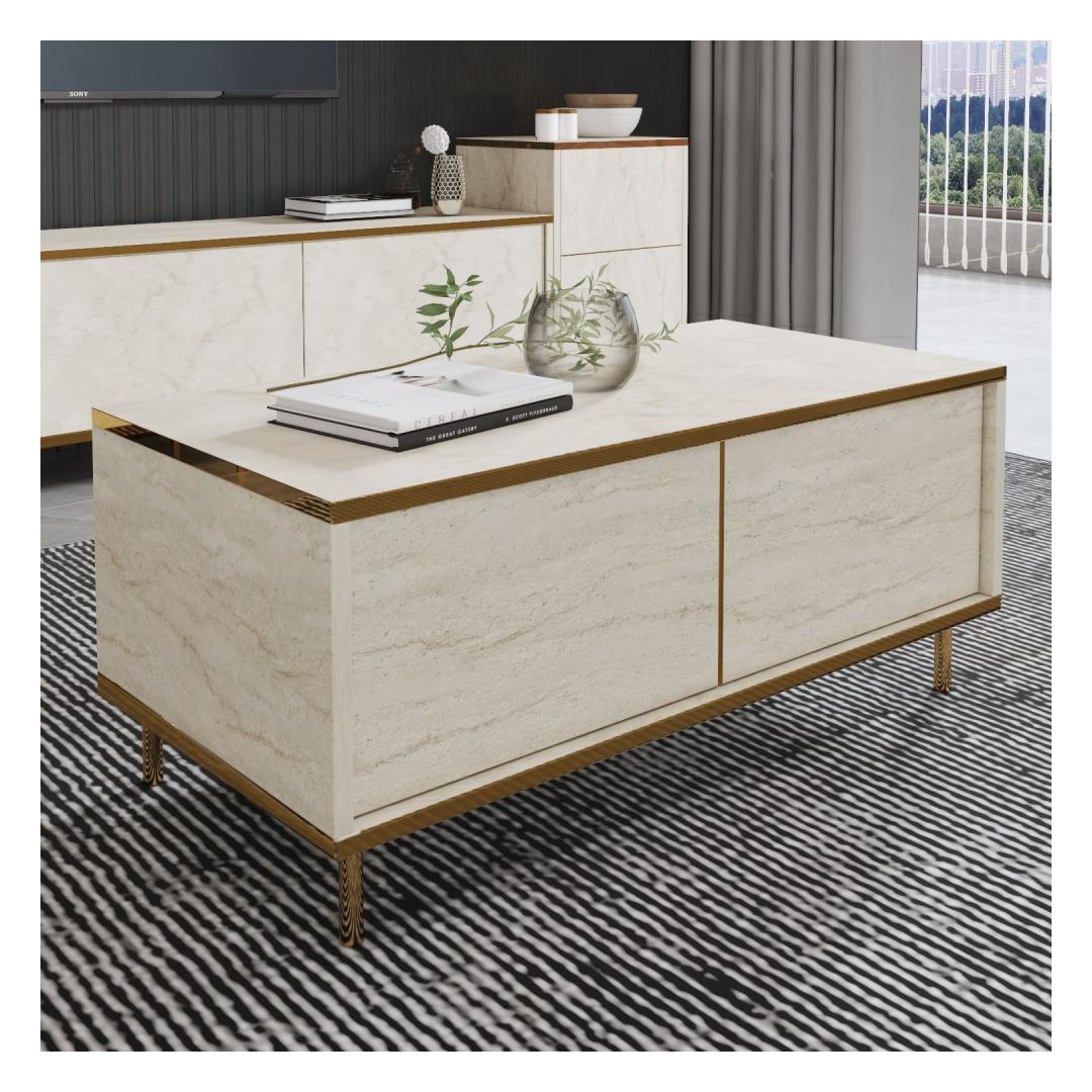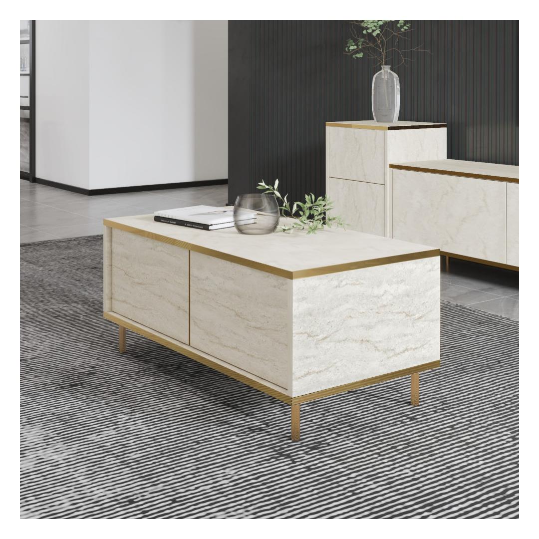 Tutvustame meie uimastavat marmorist kohvilauda, mis tõstab iga elutoa stiili ja elegantsust. See peen laud on luksusliku travertiini ja kulla värvikombinatsiooniga, mis õhkab elegantsi ja klassi. Tõstke oma elutubaLisage oma koju luksust selle kauni marmorist kohvilaualauaga. Selle elegantne disain ja rafineeritud värvipalett tõstavad koheselt teie elutoa väljanägemist, luues ruumi, mis on nii stiilne kui ka kutsuv. Mõjutage oma külalisiMuljetage oma külalisi selle pilkupüüdva esemega, mis on kindlasti vestluse alustajaks. Marmorist inspireeritud disain lisab igasse ruumi külluslikkust, muutes selle teie eluruumi ideaalseks keskpunktiks. Kvaliteetne käsitöö100% melamiiniga kaetud puitlaastplaadist valmistatud kohvilaud ei ole mitte ainult stiilne, vaid ka vastupidav ja kauakestev. 18 mm paksus tagab stabiilsuse ja tugevuse, samas kui 90 cm laius pakub piisavalt ruumi teie kohvilaual olevatele raamatutele, dekoratsioonile ja muule. Tehnilised üksikasjad:Materjal: Materjal: Materjal: Materjal: Materjal: Materjal: Materjal: Materjal: materjal: 100% melamiiniga kaetud puitlaastplaatPaksus: 18mmLaius: 90cmKõrgus: 40cmSügavus: 45cmVärv: travertiin ja kuldKontseptsioon: MarmorÄrge jätke kasutamata võimalust lisada oma koju luksust meie marmorist kohvilauda. Tellige oma juba täna ja muutke oma elutuba stiilseks pühapaigaks. Värv: Travertine Gold