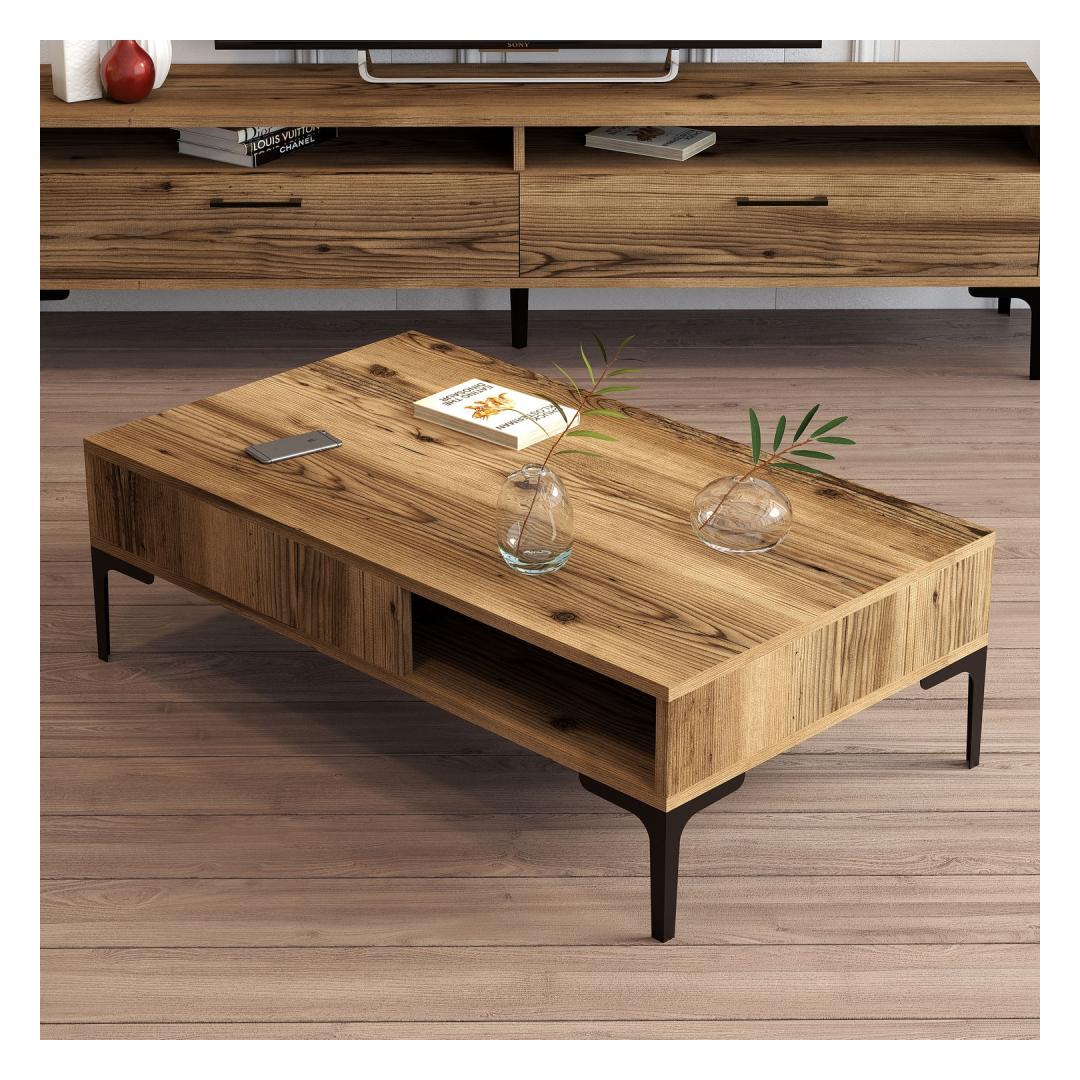Tutvustame meie lummavat ja mitmekülgset kohvilauda, mis on tõeline meistriteos, mis muudab teie eluruumi stiili ja rafineerituse paradiisiks. See äärmiselt hoolikalt ja detailidele tähelepanu pöörates disainitud kohvilaud on täiuslik segu moodsast uudsusest ja tööstuslikust sarmist. Tõstke oma elutuba ajatu elegantsiga100% melamiiniga kaetud puitlaastplaadist valmistatud kohvilaud on erakordselt vastupidav ja kauakestev. Selle tugev konstruktsioon tagab, et see peab vastu aja katsumusele, muutudes teie kodu hinnatud esemeks pikkadeks aastateks.Vabastage oma loovus selle elegantse disainigaSee elegantse ja minimalistliku disainiga kohvilaud täiendab vaevata mis tahes sisekujundust, alates kaasaegsest kuni traditsioonilise sisekujundamiseni. Selle pähklipuidust värv lisab sooja ja rikkalikkust, luues teie elutuppa hubase ja kutsuva atmosfääri. Kogege võrratut funktsionaalsust ja mugavustSuurepärane laius 105 cm, kõrgus 32. 6 cm ja sügavus 60 cm, pakub see kohvilaud piisavalt pinda oma lemmikraamatute, ajakirjade või dekoratiivsete esemete esitlemiseks. Metallist jalad, mille kõrgus on 17 cm, ei lisa mitte ainult industriaalstiili, vaid tagavad ka stabiilsuse ja toe. Tehnilised üksikasjad:Toote tüüp: Toode on mõeldud kasutamiseks, kui see ei ole vajalik, kuid see on võimalik: KohvilaudMaterjal: Materjal: Materjal: Materjal: Materjal: Materjal: Materjal: Materjal: materjal: 100% melamiiniga kaetud puitlaastplaatPaksus: 18 mmLaius: 105 cmKõrgus: 32. 6 cmSügavus: 60 cmMetallist jalad: 17 cmVärv: PähkelpuuKontseptsioon: Kaasaegne - uudsus, tööstuslikHellitage ülimat kohvilauda ja tehke oma elutoas avaldus. Tellige kohe ja laske sellel peenel mööbliesemel saada oma kodu keskpunktiks. Värv: Walnut