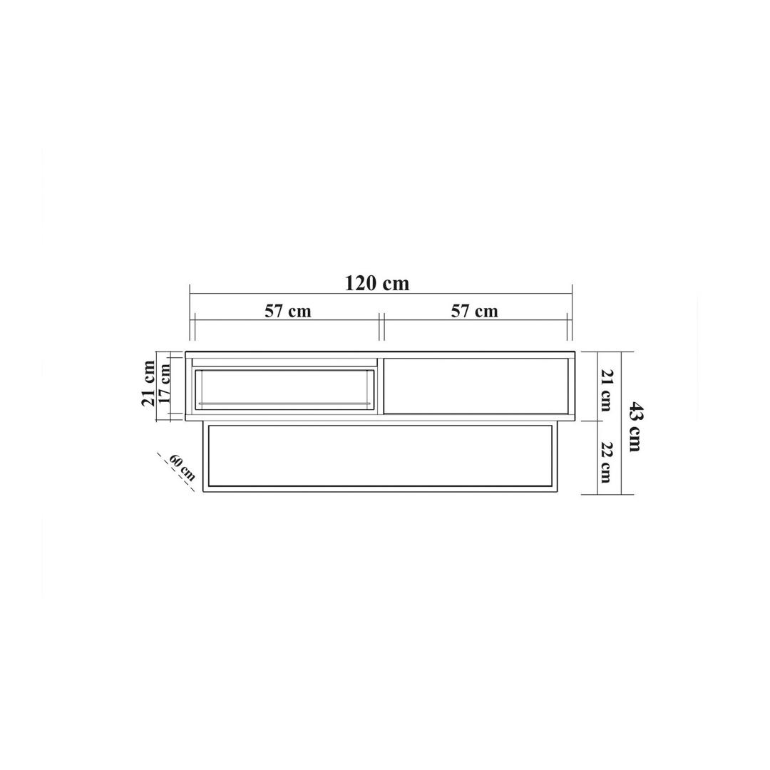 Size: Width: 120 cm Height: 43 cm Depth: 60 cm
