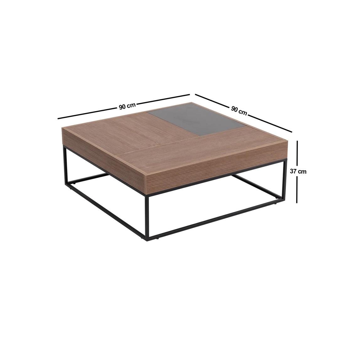 Tutvustame meie suurepärast kohvilauda, mis on täiuslik täiendus teie eluruumile, mis tekitab soojust ja elegantsi. See kohvilaud on valmistatud ülima täpsuse ja tähelepanuga detailidele ning on loodud selleks, et jätta püsivat muljet. Võrratu ilu ja vastupidavus100% melamiiniga kaetud puitlaastplaadist valmistatud kohvilaud on erakordselt vastupidav ja kauakestev. Melamiinkate mitte ainult ei suurenda selle tugevust, vaid lisab sellele ka elegantset välimust. Pähklipuidust värviga kohvilaud kiirgab ajatut võlu, mis täiendab vaevata mis tahes sisekujundust.Täiuslik segu stiilist ja funktsionaalsusestSee elegantsete metalljalgadega kohvilaud saavutab täiusliku tasakaalu stiili ja stabiilsuse vahel. Metallist jalad ei paku mitte ainult suurepärast tuge, vaid lisavad disainile ka moodsa nüansi, muutes selle igas ruumis tähelepanu keskpunktiks. Selle avarad mõõtmed (90 cm laius, 37 cm kõrgus ja 90 cm sügavus) pakuvad piisavalt pinda, et panna välja oma lemmikdekoratsioonid või nautida mõnusat õhtut koos lähedastega. Transformeeri oma eluruumVärskendage oma eluruumi selle kütkestava kohvilaualauaga, mis lubab muuta teie ümbruse mugavuse ja stiili paradiisiks. Olenemata sellest, kas naudite tassi kohvi, korraldate koosviibimist või lihtsalt lõõgastute raamatuga, on see kohvilaud teie ideaalne kaaslane, lisades igale hetkele elegantsi. Tehnilised üksikasjad:Materjal: Materjal: Materjal: Materjal: Materjal: Materjal: Materjal: Materjal: materjal: 100% melamiiniga kaetud puitlaastplaatJalad: Metallist jalad suurema stabiilsuse tagamiseksMõõdud: Laius - 90 cm, kõrgus - 37 cm, sügavus - 90 cm.Värv: Pähkli värvi(d) ajatu ja elegantse välimuse tagamiseks. Värv: Walnut