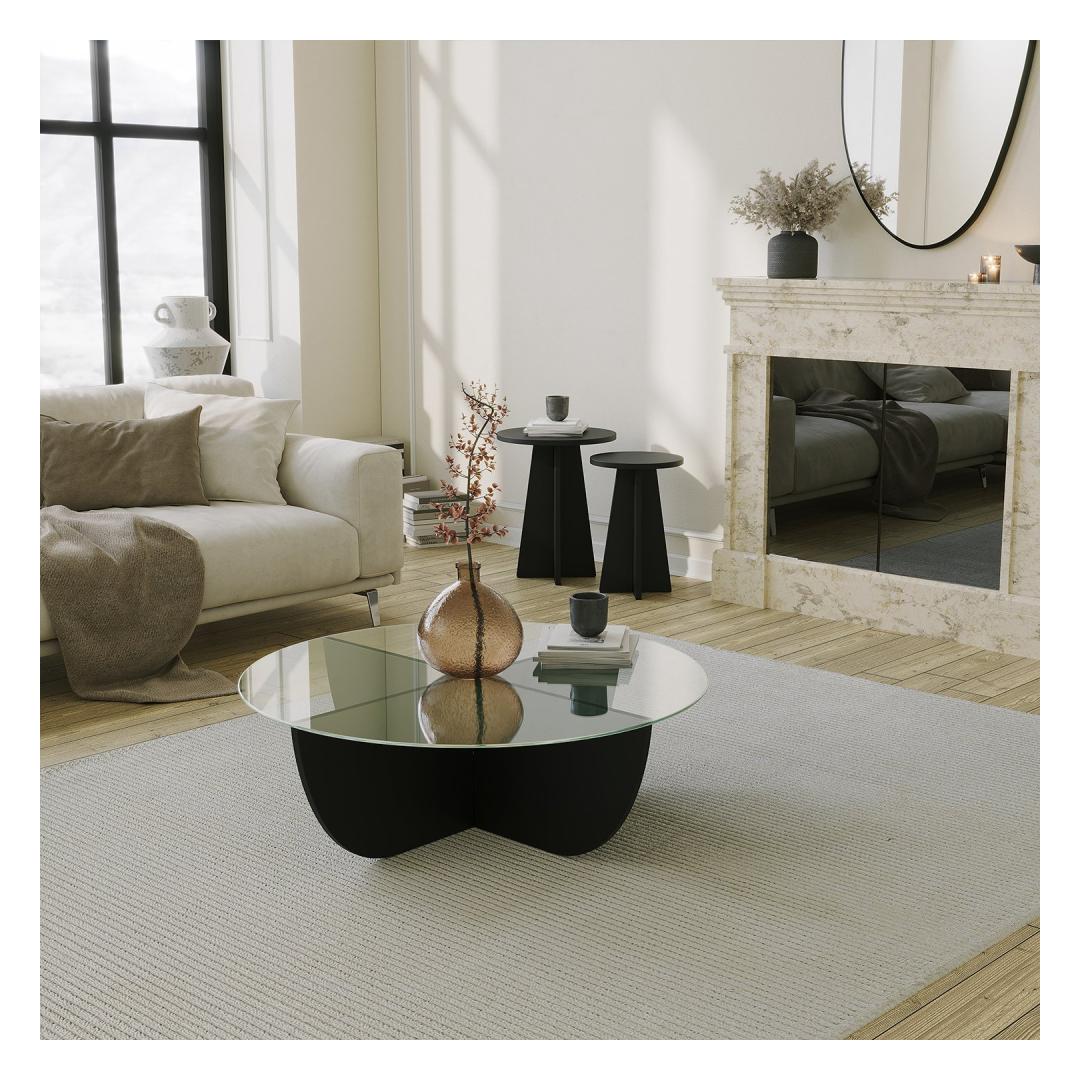 Selle elegantse ja kaasaegse disainiga kohvilaud ühendab vaevata stiili ja funktsionaalsuse. 100% karastatud klaasist plaat lisab elegantsi, samas kui 100% melamiiniga kaetud puitlaastplaadi raam tagab vastupidavuse ja pikaealisuse. Selle must värv lisab julgust, muutes selle igas ruumis väljapaistvaks esemeks.