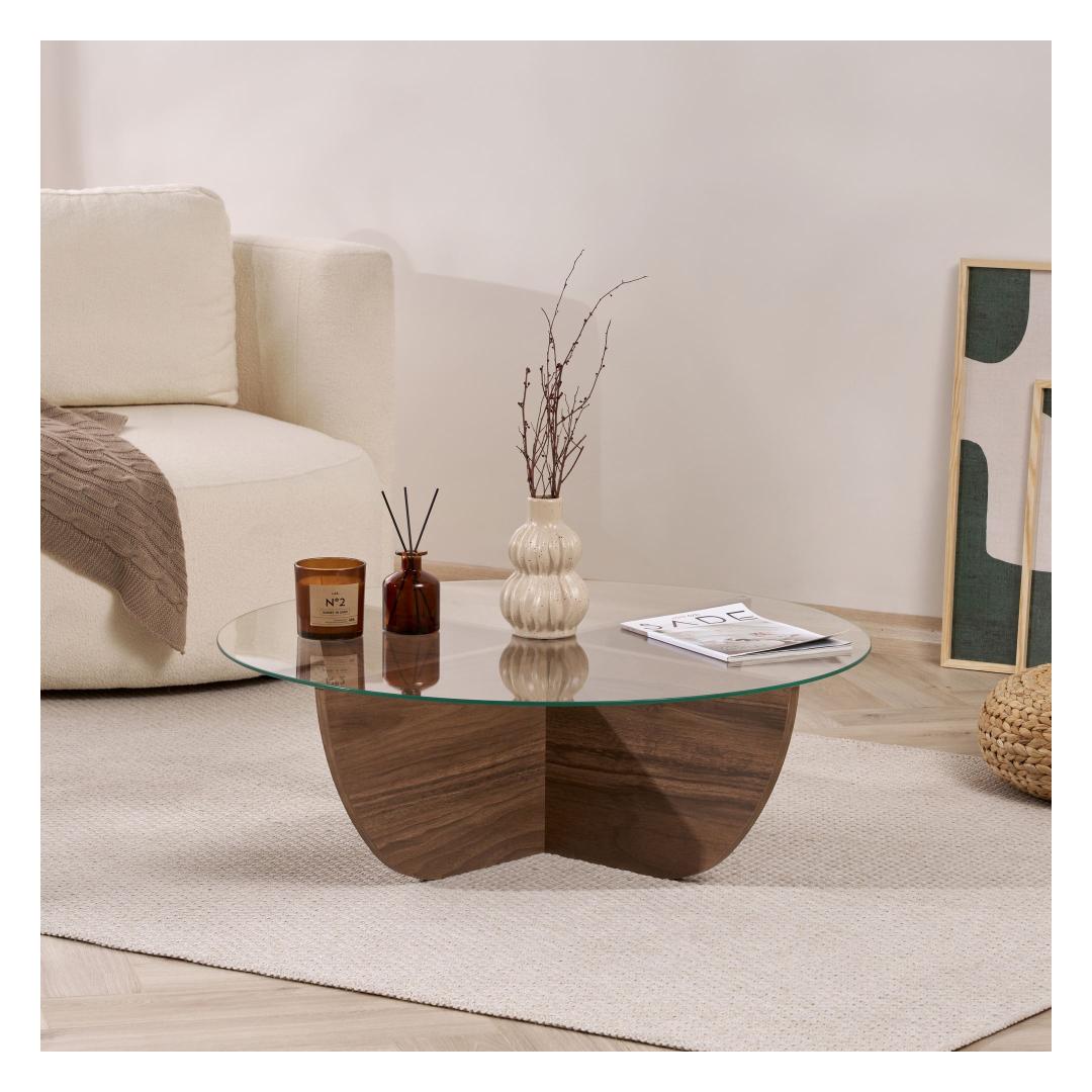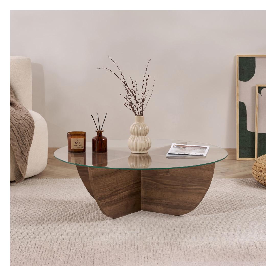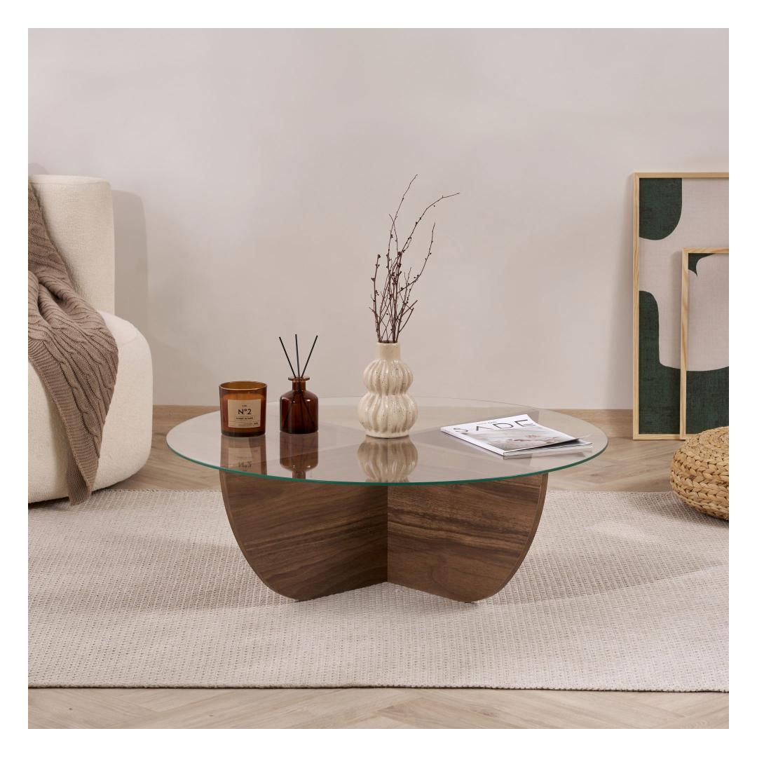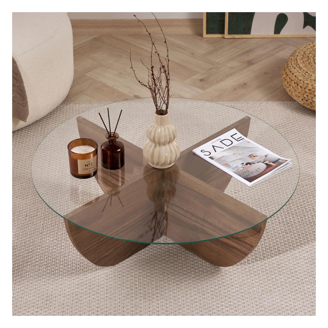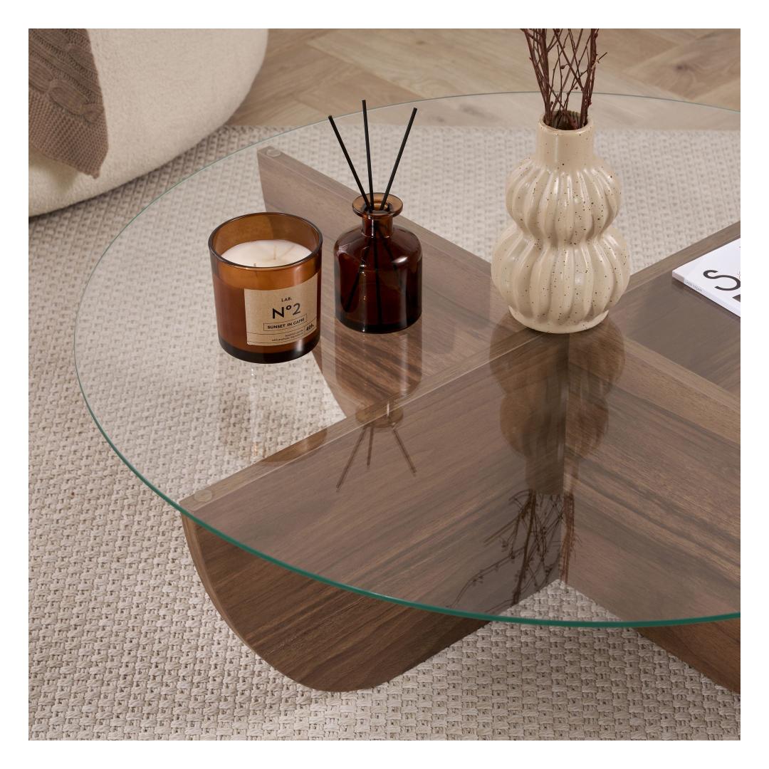 Muuda oma eluruum meie kauni pähklipuidust kohvilaudaga. Valmistatud 100% karastatud klaasist ja melamiinkattega puitlaastplaadist raamist, kiirgab see kohvilaud elegantsi ja rafineeritust.