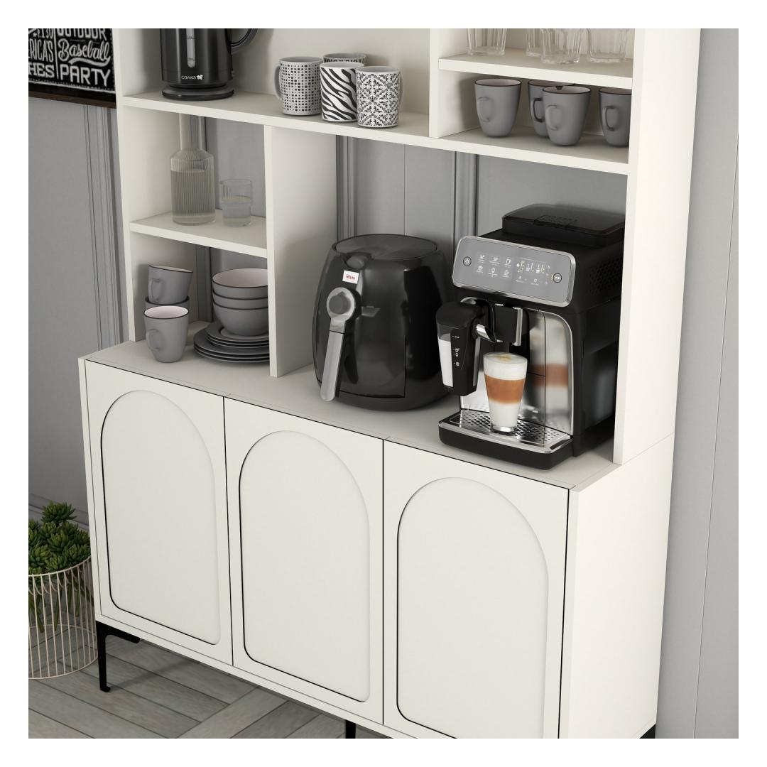 Kas olete kohvisõber, kes unistab omaenda kohvibaari kodus? Vaadake kaugemale kui meie vapustav kohvriba kapp! See tükk pole ainult mööbliese, see on avaldus teie armastusest kohvi vastu ja pühendumus hubase ja kutsuva ruumi loomisele endale ja oma külalistele. tõsta oma kohvikogemust Kujutage ette, et ärkate hommikul ja astute oma isiklikusse kohviparani. Meie kohvibaarikapi abil saate hõlpsalt kõiki oma lemmikkohvioad, kruusid ja aksessuaarid salvestada ühes mugavas kohas. Enam pole segatud kappide või sahtlite kaudu - kõik, mida vajate, on käeulatuses. klanitud ja stiilne disain Meie kohvibaarikapp on mõeldud moodsa ja klanitud esteetikaga, millel on ilus kreemika ja musta värvi kombinatsioon, mis täiendab iga kodukaunistust. 18mm paks melamiiniga kaetud osakeste tahvel tagab vastupidavuse ja pikaealisuse, nii et saate oma kohvibaari nautida veel aastaid. Jääge organiseeritud Arvukate riiulite ja rohkete hoiuruumidega saate oma kohvi olulisi asju korralikult korraldada ja hõlpsasti ligipääsetavat. Alates kohvimasinatest kuni suhkru ja kreemikuni on selles hästi läbimõeldud kapis oma määratud koht. Tehnilised üksikasjad: Materjal: 100% melamiiniga kaetud osakeste laudpaksus: 18 mmlaius: 120 cmKõrgus: 202 cmsügavus: 35 cmJala kõrgus: 20 cmVärv: koor ja must Ärge oodake enam oma unistuste kohviriba loomist. Telli meie kohvibaari kapp täna ja muutke oma kodu kohvisõprade paradiisiks! Värv: Cream Black
