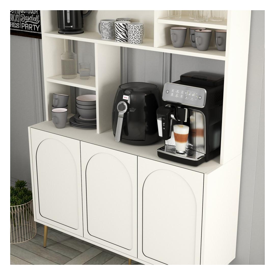 Muutke oma kodu meie peen kohvibaari kapiga hubaseks ja stiilseks pelgupaigaks. See uimastav tükk pole lihtsalt mööbliese, vaid ka elegantsi ja rafineerituse avaldus. Kreemi ja kuldsete värvide kombinatsioon lisab igasse ruumi luksust, samas kui 100% melamiiniga kaetud osakeste tahvel tagab vastupidavuse ja pikaealisuse. tõstke oma kodukaunistus Lisage selle kaunilt kujundatud kohvbaari kapiga oma elamispinnale glamuuri. Kihekujuline disain ja elegantne värvikombinatsioon muudavad selle ideaalseks täienduseks igale kaasaegsele kodukaunistusele. Ükskõik, kas asetate selle oma elutuppa, söögituppa või kööki, tõstab see kapp kindlasti teie ruumi üldise esteetika. Olge stiilis organiseeritud Öelge selle kohvibaarikapi arvukate riiulitega hüvasti ja tere organisatsioonile. Hoidke oma kohvi, kruusid ja muud esemed korralikult organiseeritud ja hõlpsasti kättesaadavad. Avar disain võimaldab palju salvestusruumi ilma stiili osas kompromiteerimata. Tehnilised üksikasjad: Materjal: 100% melamiiniga kaetud osakeste laudpaksus: 18 mmlaius: 120 cmKõrgus: 202 cmsügavus: 35 cmJala kõrgus: 20 cmVärv: koor ja kuldRiiulite arv: mitu Ärge jätke kasutamata võimalust lisada meie kohvibaari kapiga oma koju luksust ja organisatsiooni. Tellige oma täna ja kogege ideaalset segu stiili ja funktsionaalsusest. Värv: Cream Gold