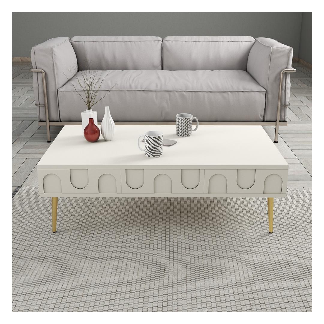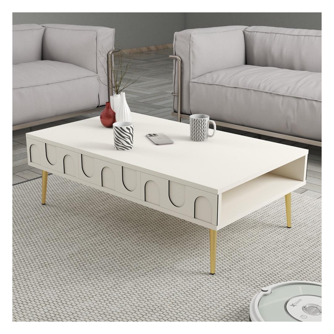 Muuda oma elutuba meie uimastava kreemikas-kuldse kohvilauda abil. See elegantne ese lisab teie koju luksust ja rafineeritust, luues sooja ja kutsuva atmosfääri, mida teie ja teie külalised saavad nautida. Tõstke oma sisekujundustKreemja ja kuldse värvi kaunis kombinatsioon tõstab koheselt teie sisekujundust, lisades igasse ruumi glamuuri ja stiili. Ükskõik, kas paigutate selle oma elutuppa, lounge'i või isegi magamistuppa, see kohvilaud on ruumi keskpunkt. Kvaliteetne käsitööValmistatud 100% melamiiniga kaetud puitlaastplaadist, ei ole see kohvilaud mitte ainult stiilne, vaid ka vastupidav ja kauakestev. 18 mm paksus tagab stabiilsuse ja tugevuse, mistõttu sobib see ideaalselt igapäevaseks kasutamiseks. Ruumikas disain105 cm laiuse, 33. 6 cm kõrguse ja 60 cm sügavusega kohvilaud pakub rohkelt pinda, kus saate välja panna oma lemmikud sisustusesemed, raamatud või isegi nautida mõnusat õhtut tassi kohvi kõrvale. Tehnilised üksikasjad:Materjal: Materjal: Materjal: Materjal: Materjal: Materjal: Materjal: Materjal: materjal: 100% melamiiniga kaetud puitlaastplaatPaksus: 18mmLaius: 105cmKõrgus: 33. 6cmSügavus: 60cmVärv: kreem ja kuld Värv: Cream Gold
