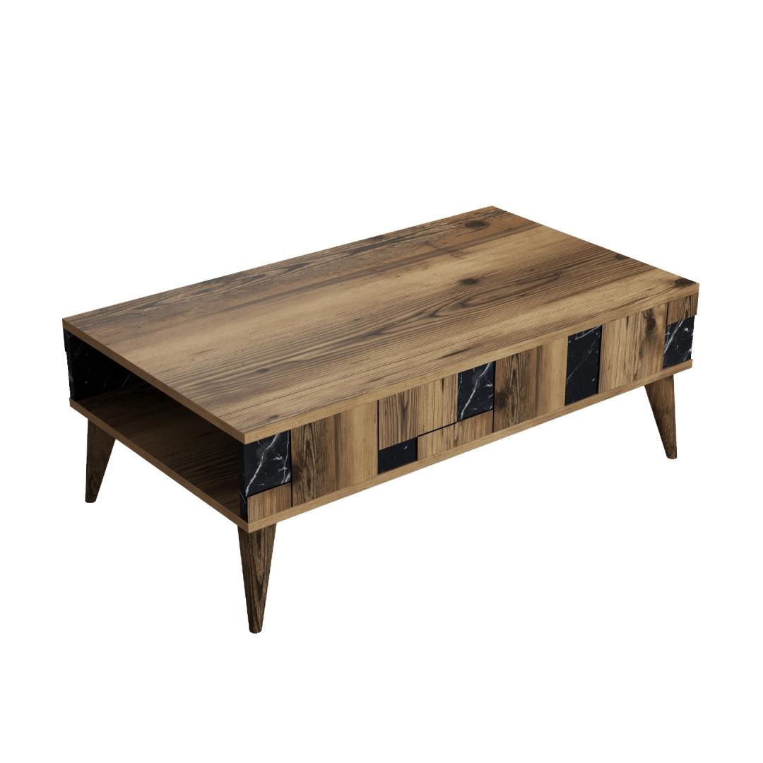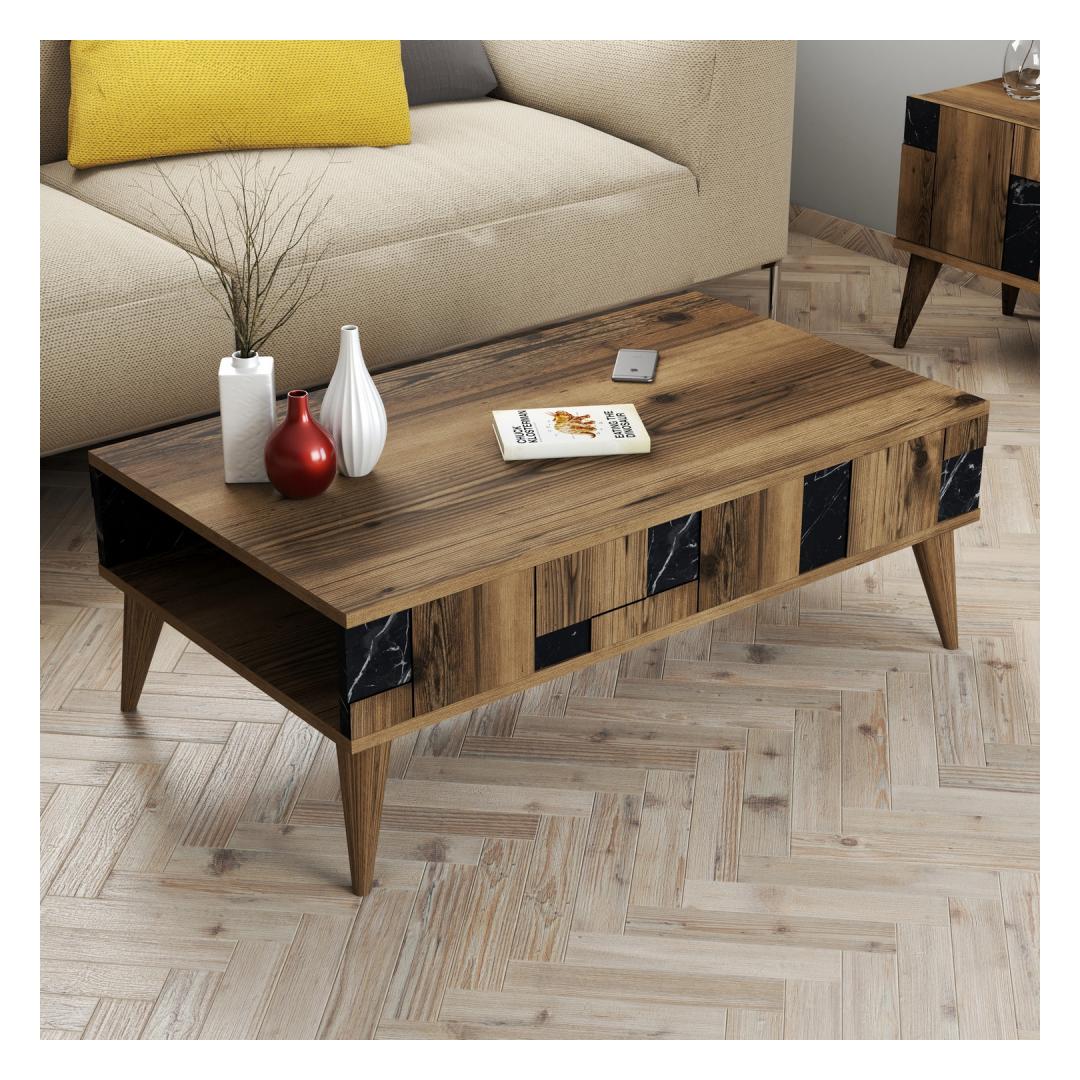 Tutvustame meie suurepärast kohvilauda, mis on tõeline meistriteos, mis tõstab teie eluruumi atmosfääri. Selle elegantse ja moodsa disainiga laud ühendab vaevata uudsuse ja Ameerika traditsiooni elemendid, luues lummava fookuspunkti, mis jätab teie külalised imestama. Võrratu elegants ja vastupidavusSee ülima täpsuse ja tähelepanelikkusega valmistatud kohvilaud on valmistatud 100% melamiiniga kaetud puitlaastplaadist, mis tagab võrratu vastupidavuse ja pikaealisuse. Selle 18 mm paksus tagab tugeva ja usaldusväärse konstruktsiooni, mis peab vastu aja katsumusele, võimaldades teil nautida selle ilu aastaid.Täiuslik pähkli ja musta seguPähklipuu ja musta värvi kombinatsioon lisab igasse ruumi rafineeritust ja elegantsi. Pähklipuu rikkalikud ja soojad toonid täiendavad kaunilt musta elegantsust, luues harmoonilise kontrasti, mis täiendab vaevata teie olemasolevat sisekujundust. Transformeeri oma eluruumSee kohvilaud ei ole lihtsalt mööblitükk; see on stiili ja maitse avaldus. Selle kaasaegne disain ja ainulaadne kontseptsioon muudavad selle mitmekülgseks täienduseks igasse elutuppa, pakkudes täiuslikku platvormi hommikukohvi jaoks, hubaseks koosviibimiseks sõpradega või koha oma lemmikraamatute ja -ajakirjade väljapanekuks. Tehnilised üksikasjad:Materjal: Materjal: Materjal: Materjal: Materjal: Materjal: Materjal: Materjal: materjal: 100% melamiiniga kaetud puitlaastplaatPaksus: 18 mmLaius: 105 cmKõrgus: 37,6 cmSügavus: 60 cmVärv: pähkelpuu ja mustUuendage oma eluruumi meie erakordse kohvilaualauaga ja kogege täiuslikku segu elegantsist, vastupidavusest ja modernsusest. Tellige kohe ja laske sellel lummaval esemel muuta oma kodu stiili ja rafineerituse paradiisiks. Värv: Walnut Black