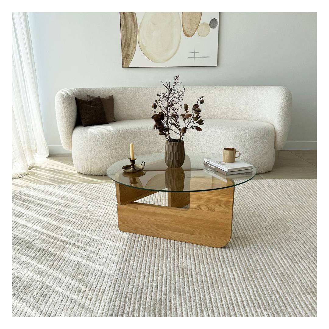 Lisa oma koju modernne puudutus selle stiilse ja elegantse kohvilaudaga. Tammepuu ja läbipaistva värvi kombinatsioon loob kauni kontrasti, mis tõstab koheselt iga ruumi välimust.