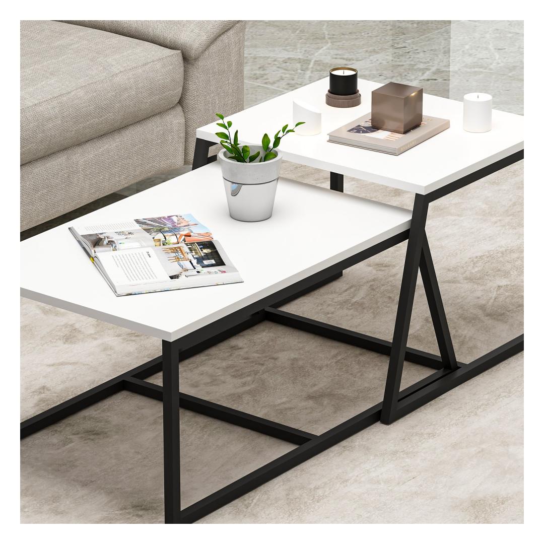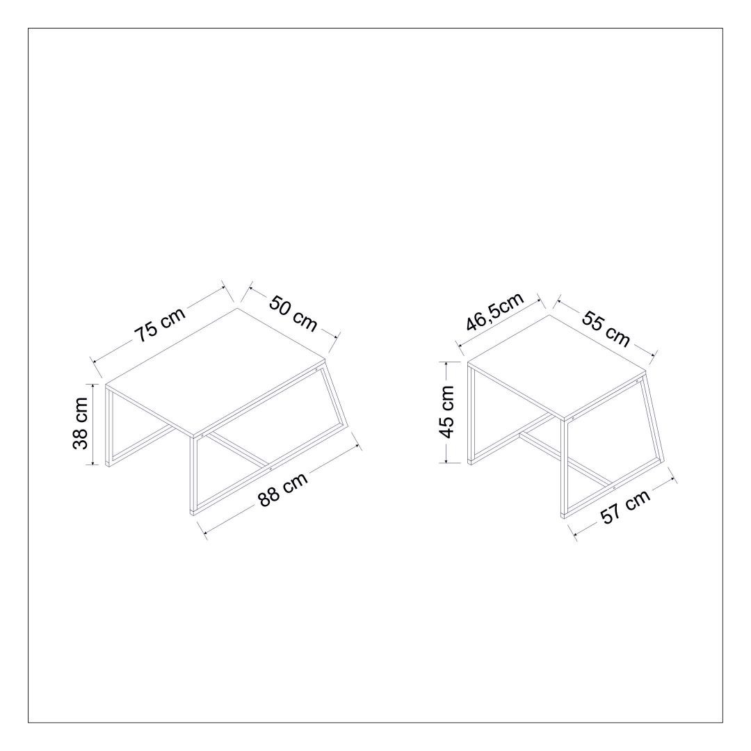 Muuda oma eluruum meie hämmastava modernse kohvilaudaga. See stiilne ja elegantne ese ei ole lihtsalt laud, vaid statement-ese, mis tõstab iga ruumi ilmet. 100% melamiinkattega puitlaastplaat tagab vastupidavuse ja pikaealisuse, nii et saad seda eset nautida aastaid.Tõsta oma ruumiLisa oma koju natuke rafineeritust meie kaasaegse kohvilaudaga. Puhtad jooned ja minimalistlik disain teevad sellest ideaalse lisandi igasse modernsesse sisustusse. Olgu see siis sinu lemmikraamatute väljapanekuks või kohvi puhkepaigaks, see laud on sama funktsionaalne kui ka ilus.Mitmekülgne ja praktilineSuure ja väikese lauaosa mitmed riiulid pakuvad piisavalt ruumi sinu asjade hoidmiseks ja organiseerimiseks. Võimalus see seina külge kinnitada lisab täiendava stabiilsuse ja turvalisuse taseme, muutes selle ideaalseks kodudesse, kus on lapsi või lemmikloomi.Aegumatu elegantsSelle kohvilauda valge värv lisab igasse ruumi elegantsi ja rafineeritust. Selle modernne ja uuenduslik disain tagab, et see ei lähe kunagi moest välja, muutes selle ajatu esemeks, mida armastad aastaid.Tehnilised andmed:Materjal: 100% melamiinkattega puitlaastplaatPaksus: 18 mmSuur laua mõõtmed: Laius: 75 cm, Kõrgus: 38 cm, Sügavus: 50 cmVäikese laua mõõtmed: Laius: 55 cm, Kõrgus: 45 cm, Sügavus: 57 cmVärv: Valge Värv: White