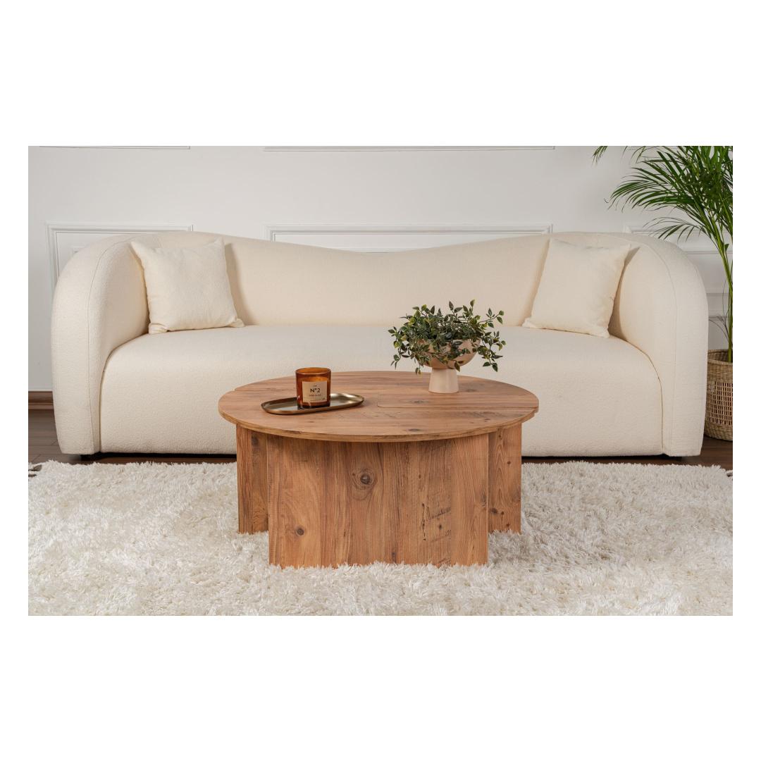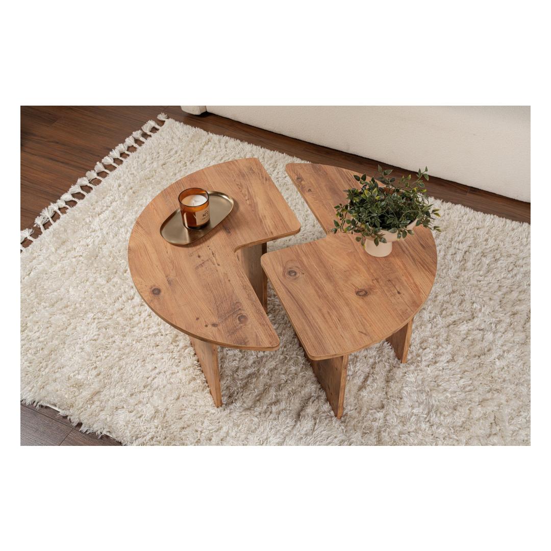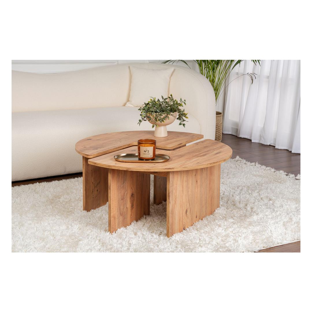 Muuda oma elutuba hubaseks ja stiilseks pelgupaigaks meie kauni Atlandi mändi kohvilaudadega. Valmistatud 100% melamiinkattega puitlaastplaadist, kiirgab see kohvilaud elegantsi ja vastupidavust. Soe ja kutsuv Atlandi mändi värv lisab igasse ruumi natuke maamajalikku võlu, muutes selle ideaalseks keskpunktiks sinu kodus.