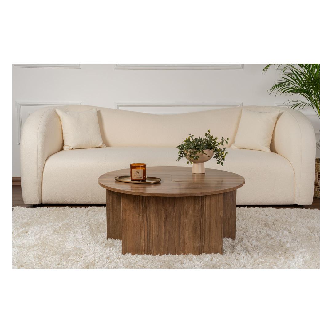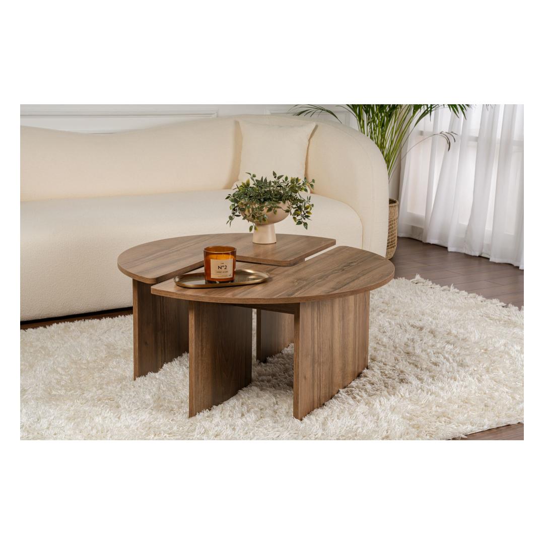 Meie kohvilaud on meisterlikult valmistatud kvaliteetsetest materjalidest, tagades pikaajalise eseme, mis talub igapäevast kasutamist. Melamiiniga kate lisab kaitsekihti, muutes selle lihtsaks puhastada ja hooldada. Oma ajatu disaini ja vastupidava konstruktsiooniga on see kohvilaud igas kodus hädavajalik.