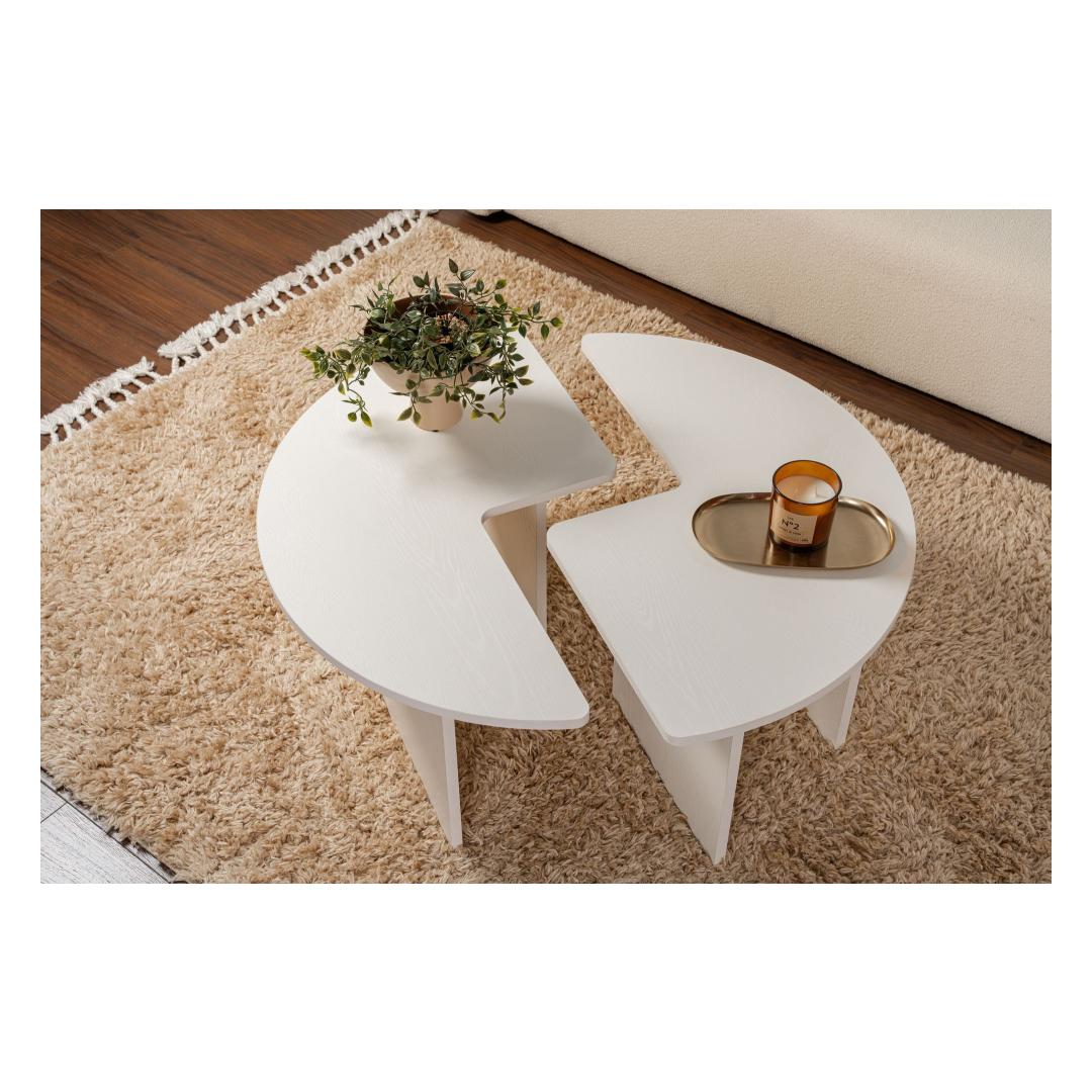 Valmistatud 18 mm paksusest melamiiniga kaetud puitlaastplaadist, on see kohvilaud loodud kestma. Tugev konstruktsioon tagab stabiilsuse ja toe kõigile teie elutoa tarvikutele. Puidu Valge värv lisab teie kodu sisustusele elegantsi ja võlu.