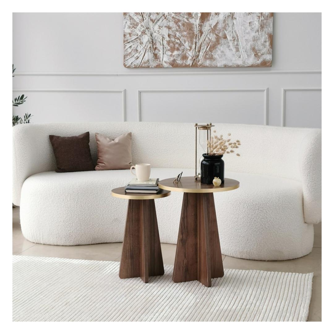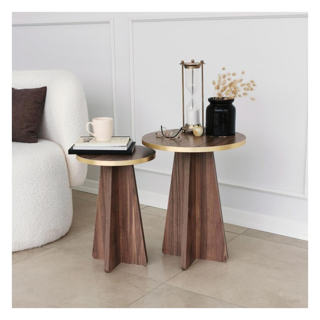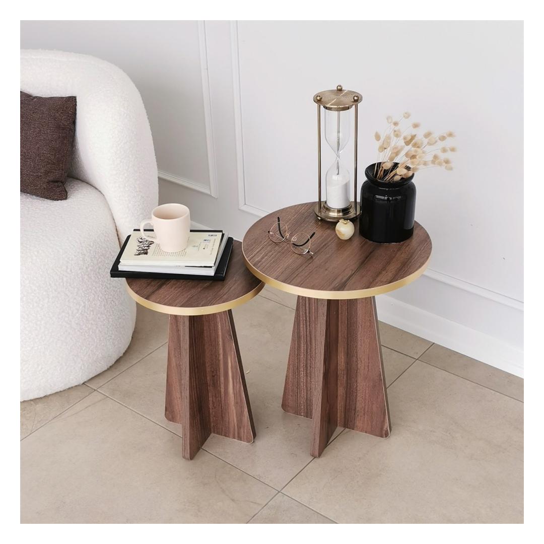 Tutvustame meie suurepärast kohvilaudade komplekti, mis on teie eluruumi kohustuslik täiendus, mis tekitab elegantsi ja rafineerituse tunde. See komplekt on valmistatud ülima hoole ja tähelepanelikkusega, et muuta teie kodu stiili ja mugavuse paradiisiks. Väljendage oma elutoa iluMeie kohvilaudade komplekt sulandub oma uimastava kuldse ja pähklipuu värvi kombinatsiooniga vaevata mis tahes sisustusega, lisades teie ruumile külluslikkust. Rikkalikud toonid ja elegantne disain loovad lummava fookuspunkti, mis jätab teie külalised imestama.Kompromissitu kvaliteet ja vastupidavusSee komplekt on valmistatud 100% melamiiniga kaetud puitlaastplaadist, mis peab vastu. 18 mm paksus tagab tugevuse ja stabiilsuse, samas kui PVC-servaribad pakuvad täiendavat kaitset kulumise vastu. Võite olla kindel, et see kohvilaudade komplekt on valmistatud kestma. Lihtne kokkupanek, muretut hooldustöödMe mõistame, kui oluline on mugavus teie tihedas elus. Seepärast tuleb meie kohvilaudade komplekt lahtivõetuna, mistõttu on seda lihtne kokku panna ja paigutada vastavalt teie eelistustele. Ka puhastamine on imelihtne tänu melamiinkattele, mis peab vastu plekkidele ja määrdumistele. Tehnilised üksikasjad:Materjal: materjal: 100% melamiiniga kaetud puitlaastplaatPaksus: 18mmMõõdud: Materjal: Paneel, mis on valmistatud puidust, kuid ei sisalda pinda:Suur laud: Laius 40cm x kõrgus 50cm x sügavus 40cm.Väike laud: Laius 30cm x kõrgus 45cm x sügavus 30cm.PVC-servapaelad lisakaitseksVärv: kuld ja pähkelpuuElustage oma elutuba meie kohvilaudade komplektiga ja kogege täiuslikku segu stiilist, funktsionaalsusest ja vastupidavusest. Tõsta oma kodu sisustus uutele kõrgustele ja loo koos lähedastega unustamatuid mälestusi. Tellige kohe ja hellitage väärilist luksust. Värv: Gold Walnut