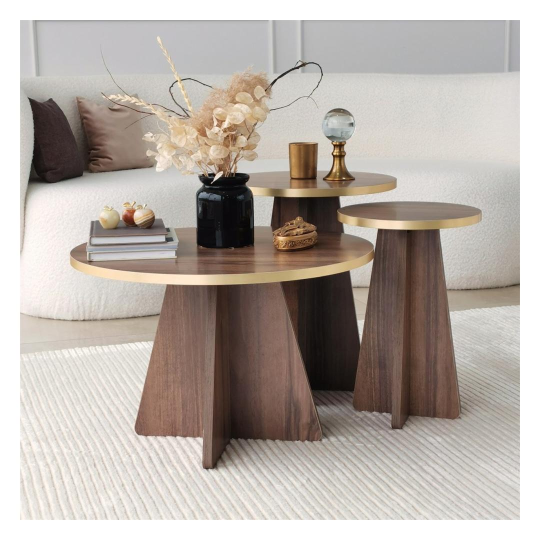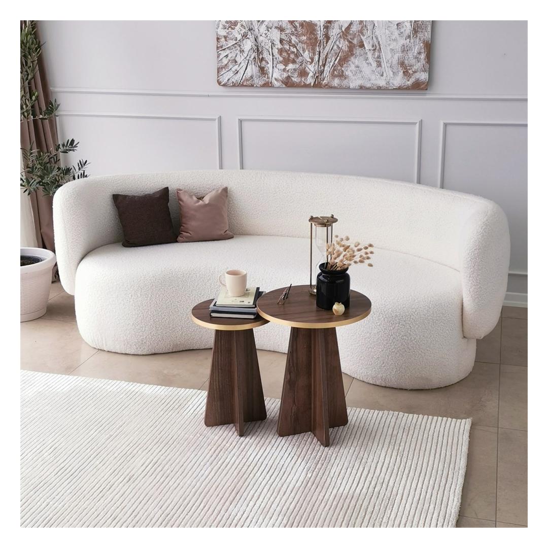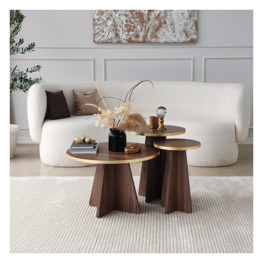 Tutvustame meie suurepärast kohvilaudade komplekti, mis on teie eluruumi kohustuslik täiendus, mis tekitab elegantsi ja rafineerituse tunde. See komplekt on valmistatud ülima hoole ja tähelepanelikkusega, et muuta teie kodu stiili ja mugavuse paradiisiks. Väljendage oma elutoa iluMeie kohvilaudade komplekt sulandub oma uimastava kuldse ja pähklipuu värvi kombinatsiooniga vaevata mis tahes sisustusega, lisades teie ruumile külluslikkust. Rikkalikud toonid ja elegantne disain loovad lummava fookuspunkti, mis jätab teie külalised imestama.Kompromissitu kvaliteet ja vastupidavusSee komplekt on valmistatud 100% melamiiniga kaetud puitlaastplaadist, mis peab vastu. 18 mm paksus tagab tugevuse ja stabiilsuse, samas kui PVC-servaribad pakuvad täiendavat kaitset kulumise vastu. Võite olla kindel, et see kohvilaudade komplekt on valmistatud kestma. Lihtne kokkupanek, muretut hooldustöödMe mõistame, kui oluline on mugavus teie tihedas elus. Seepärast tuleb meie kohvilaudade komplekt lahtivõetuna, mistõttu on seda lihtne kokku panna ja paigutada vastavalt teie eelistustele. Ka puhastamine on imelihtne tänu melamiinkattele, mis peab vastu plekkidele ja määrdumistele. Tehnilised üksikasjad:Materjal: materjal: 100% melamiiniga kaetud puitlaastplaatPaksus: 18mmMõõdud: Materjal: Paneel, mis on valmistatud puidust, kuid ei sisalda pinda:Suur laud: Laius 40cm x kõrgus 50cm x sügavus 40cm.Väike laud: Laius 30cm x kõrgus 45cm x sügavus 30cm.PVC-servapaelad lisakaitseksVärv: kuld ja pähkelpuuElustage oma elutuba meie kohvilaudade komplektiga ja kogege täiuslikku segu stiilist, funktsionaalsusest ja vastupidavusest. Tõsta oma kodu sisustus uutele kõrgustele ja loo koos lähedastega unustamatuid mälestusi. Tellige kohe ja hellitage väärilist luksust. Värv: Gold Walnut