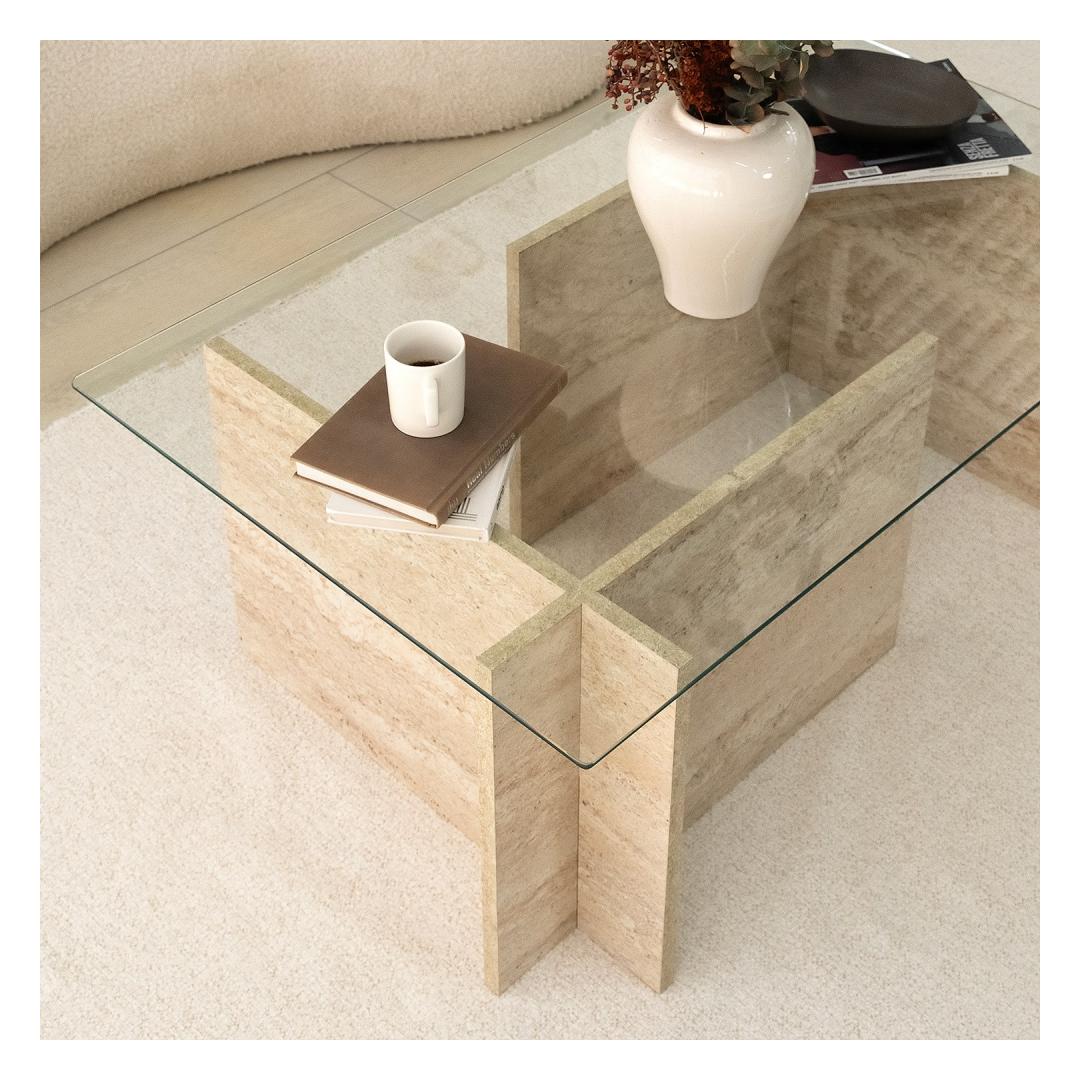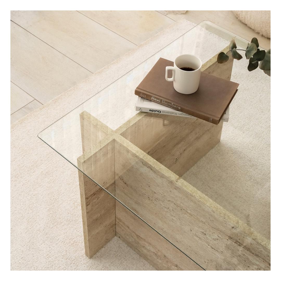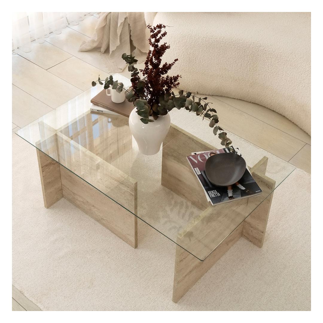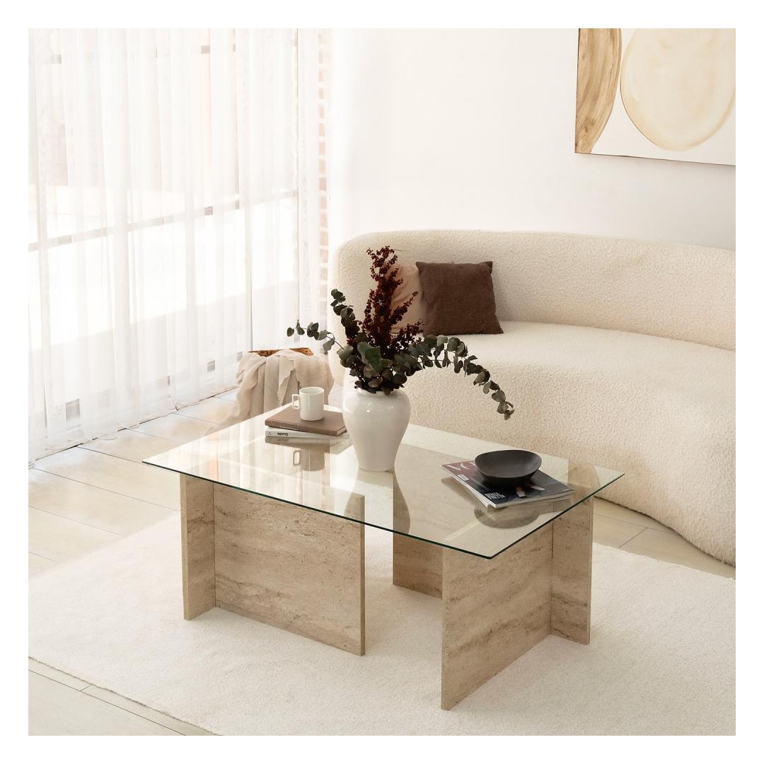 Tõstke oma elamispinna stiil ja keerukus meie uimastava marmorist kohvilauaga. See kohvilaud, mis on valmistatud 100% -lise klaasist ja 100% melamiiniga kaetud osakesteplaadi põhjaga, õhutab luksust ja elegantsi. Klaanitud disain koos travertiinvärviga loob ajatu tüki, mis täiendab vaevata iga kaunistust.