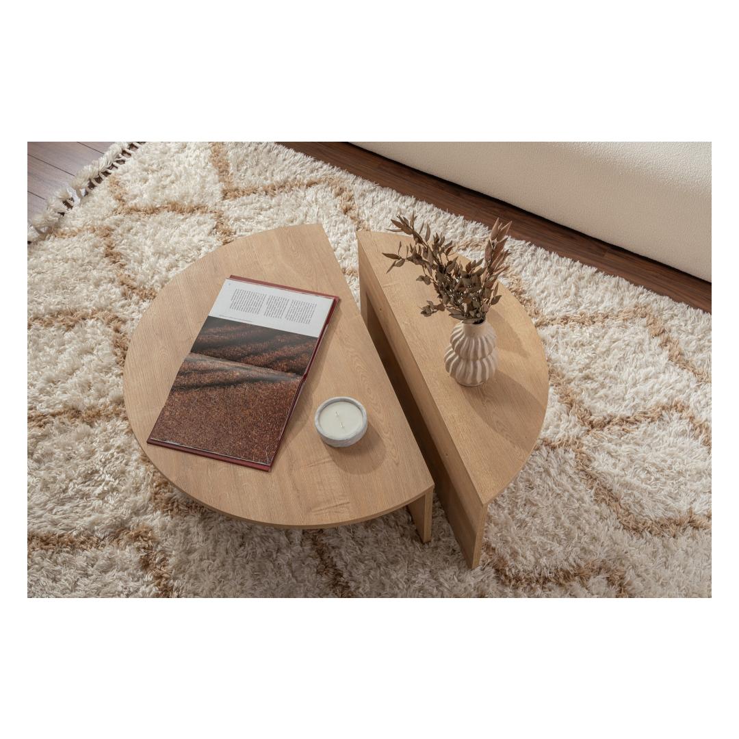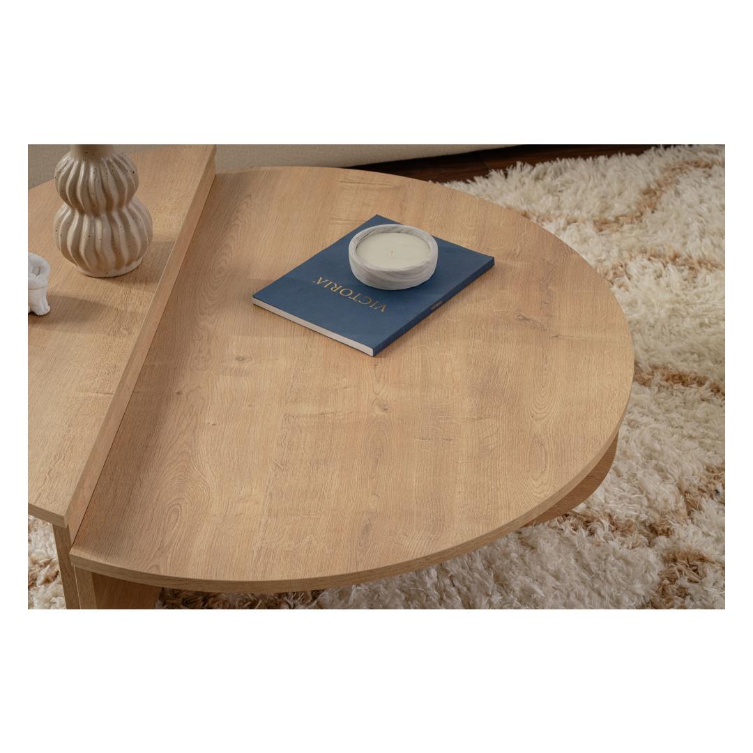 Muuda oma elutuba hubaseks ja kutsuvaks ruumiks meie kauni Honey Oak kohvilaudadega. Valmistatud 100% melamiinkattega puitlaastplaadist, on see kohvilaud mitte ainult stiilne, vaid ka vastupidav ja pikaealine.