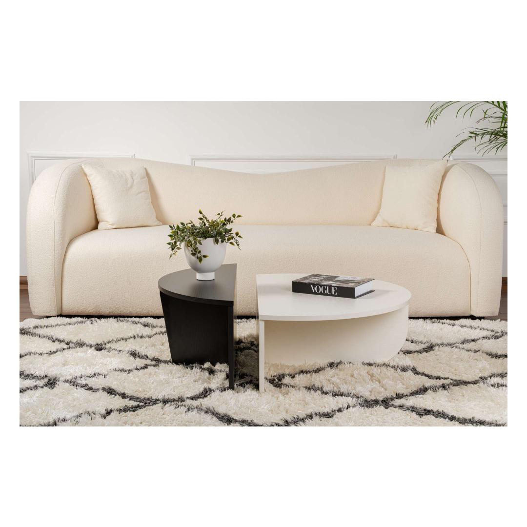 Lisa oma koju luksuse puudutus meie kauni disainiga kohvilaudaga. Puitvalge ja puitmust värvikombinatsioon loob šiki ja kaasaegse ilme, mis jätab sinu külalised muljet ja paneb nad imetlema. Must ääristamine lisab kontrasti ja rafineeritust, muutes selle mööblieseme tõeliseks silmapaistvaks detailiks igas ruumis.