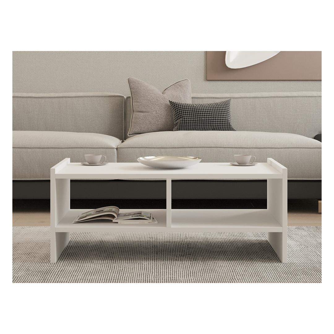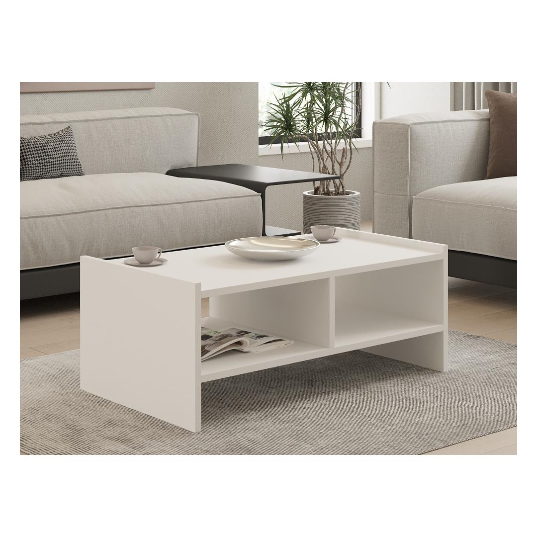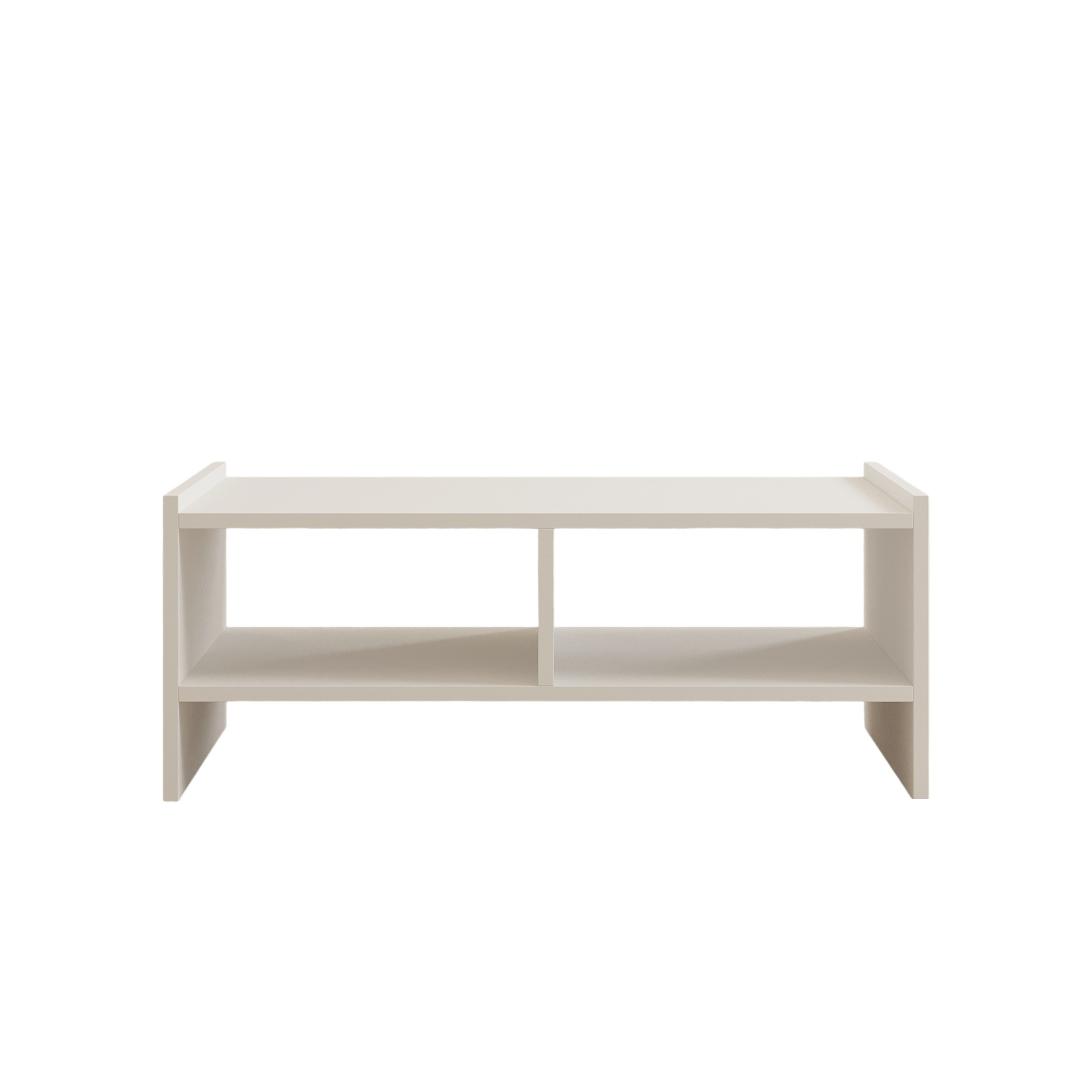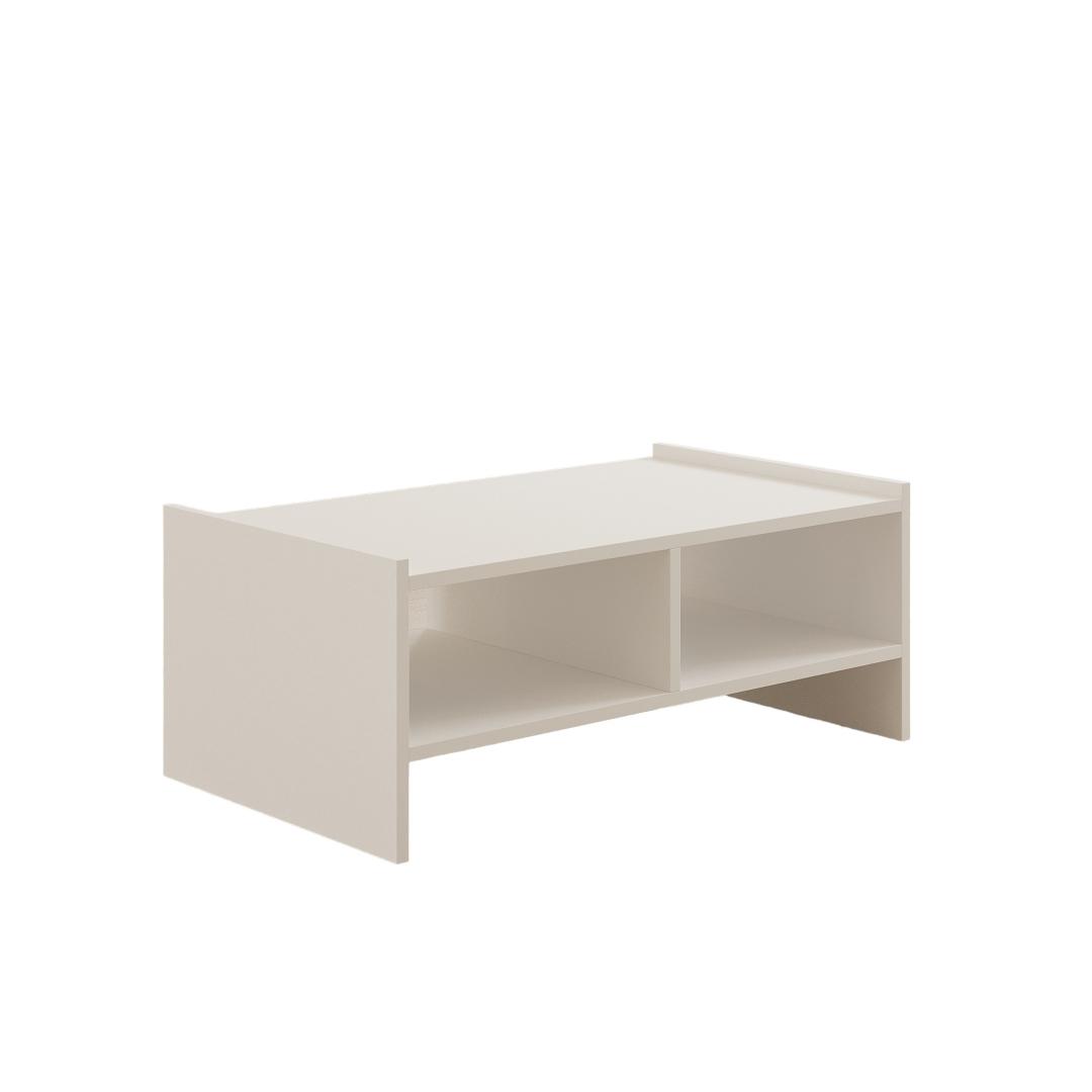 See kohvilaud ei ole mitte ainult ilu keskpunktiks, vaid pakub ka täiendavat hoiuruumi, et hoida teie elutuba organiseeritud ja korrastatud. 2-tasandiline disain pakub piisavalt ruumi oma lemmikraamatute, ajakirjade või dekoratiivsete esemete esitlemiseks, samal ajal kui avar lauaplaat pakub ideaalset kohta hommikuse kohvitassi või hubase õhtu veetmiseks lähedastega.