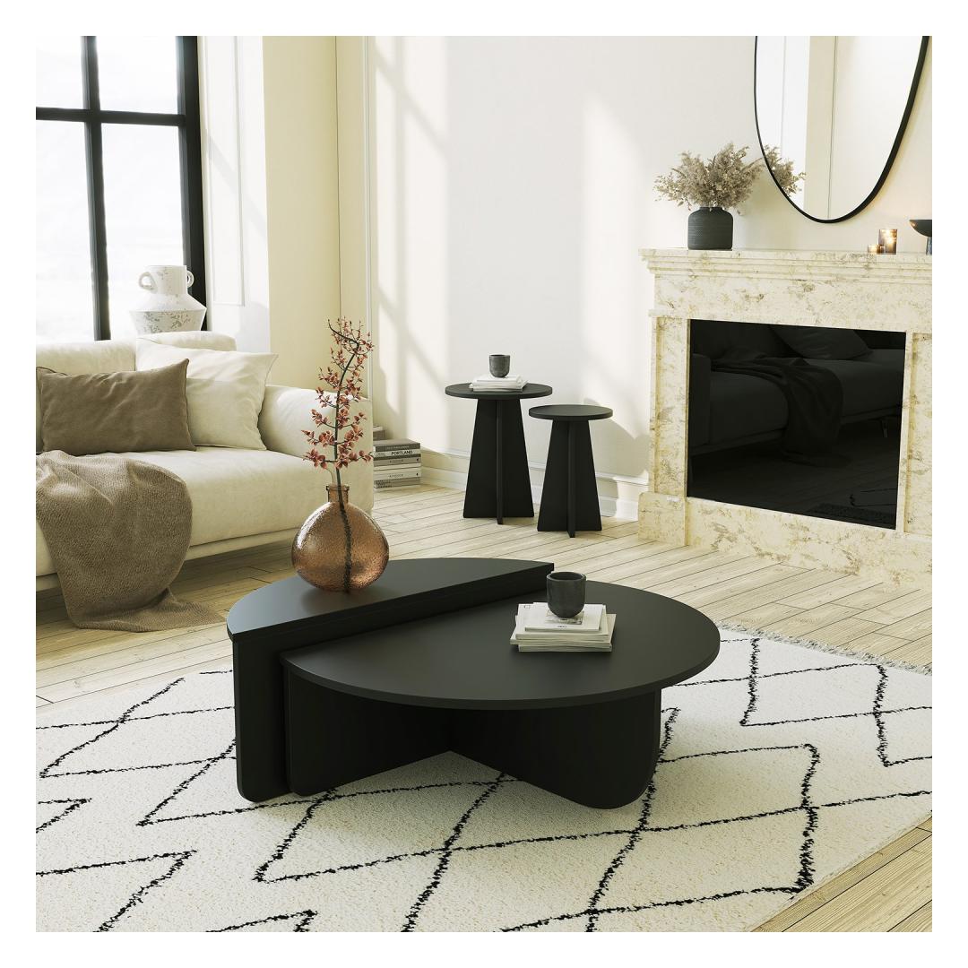 Meie kohvilaud on elegantse ja moodsa disainiga, mis täiendab vaevata iga sisustusstiili, alates kaasaegsest kuni traditsiooniliseni. Must värv lisab teie eluruumile elegantsi ja rafineeritust, muutes selle iga ruumi keskpunktiks.