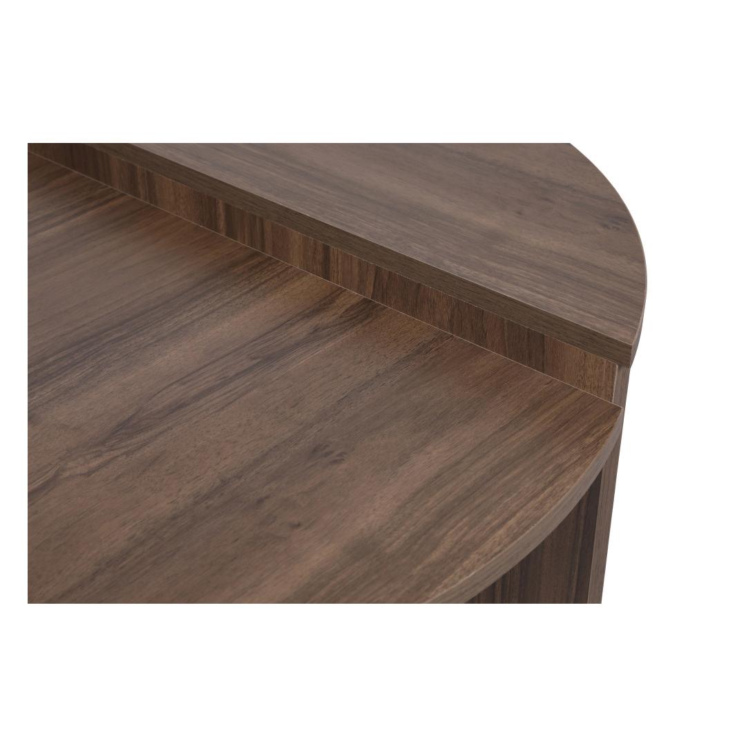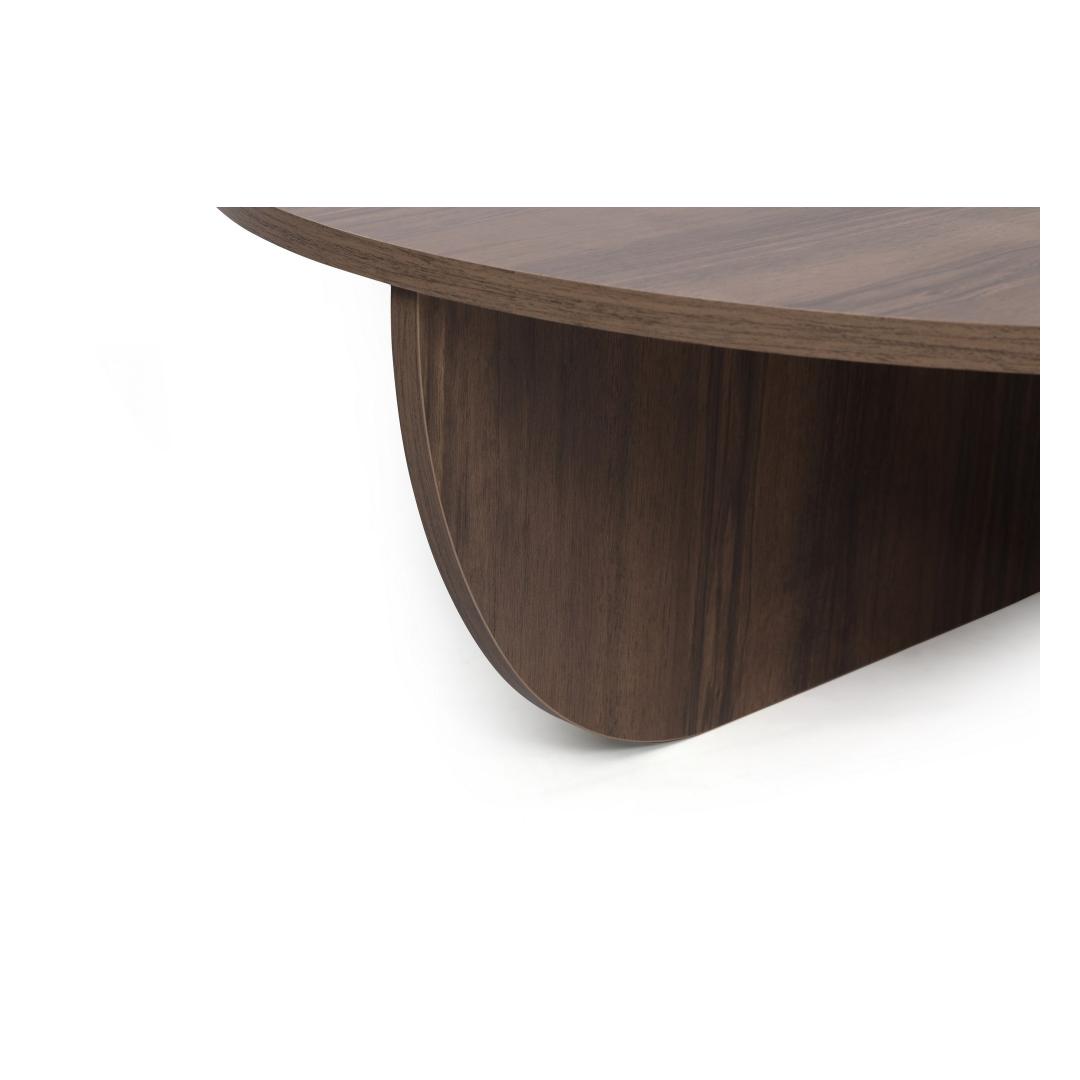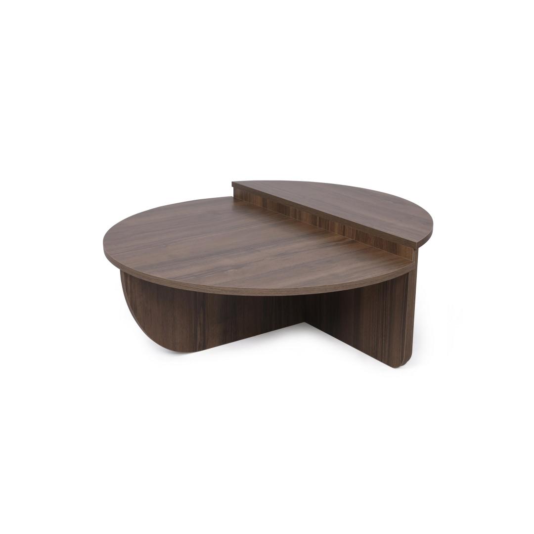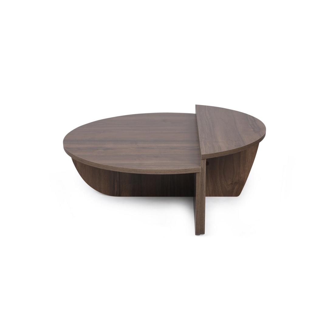 Meie kohvilaud on valmistatud 100% melamiiniga kaetud puitlaastplaadist, mis on ehitatud kestma. 18 mm paksus tagab vastupidavuse ja stabiilsuse, muutes selle usaldusväärseks mööbliesemeks aastateks. Pähklipuu värv lisab teie eluruumile elegantsi ja elegantsi.