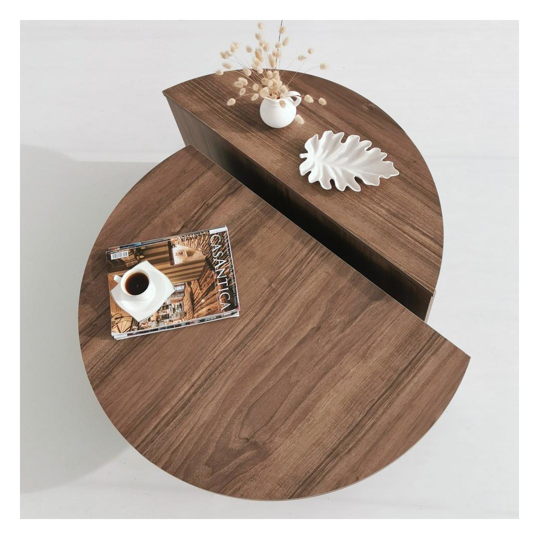 Meie kohvilaud pakub tänu oma heldele mõõtmetele piisavalt ruumi teie lemmikraamatutele, ajakirjadele ja dekoratiivsetele esemetele. Selle praktiline disain sisaldab kahte eraldi tükki, mida saab paigutada erinevatesse konfiguratsioonidesse vastavalt teie vajadustele ja eelistustele.