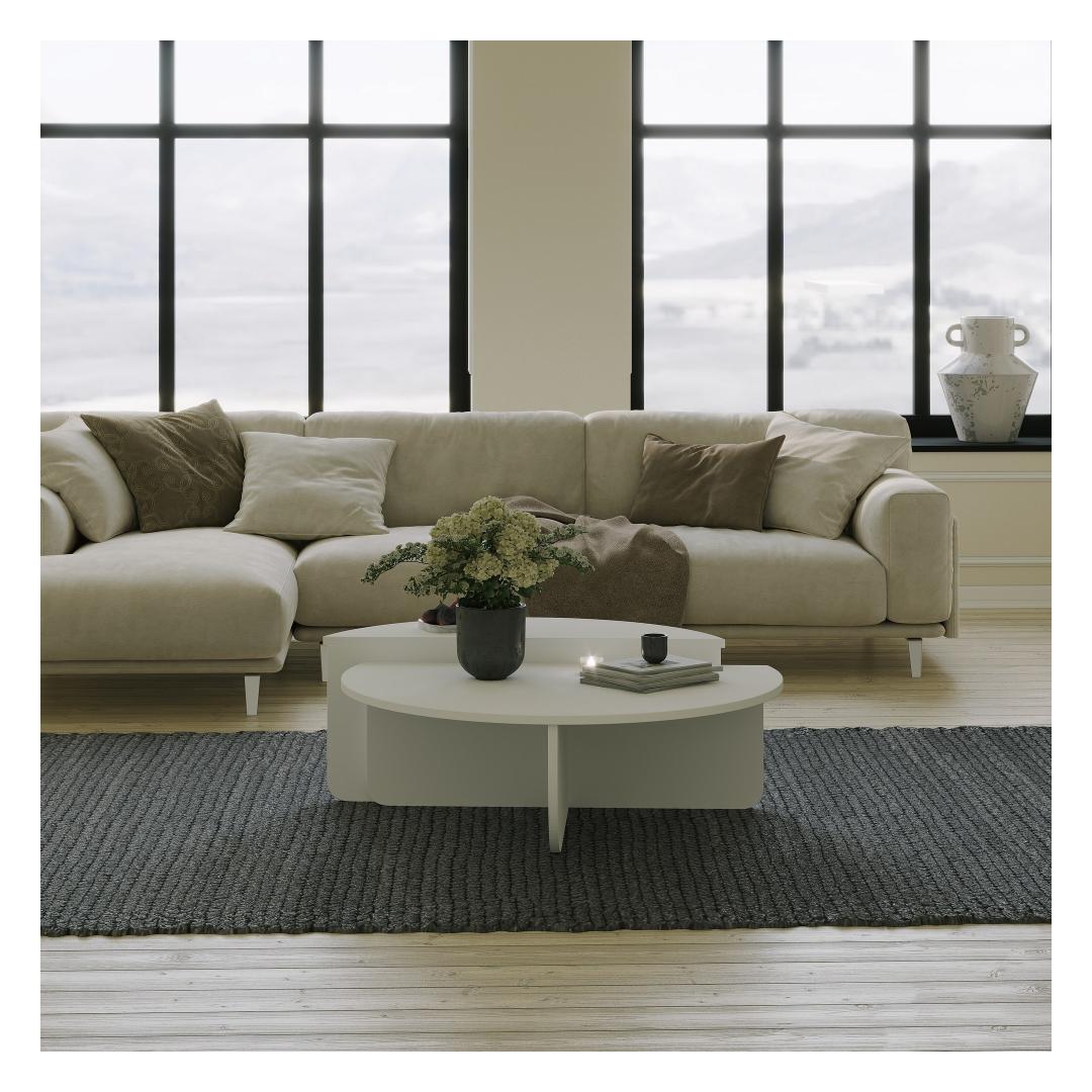 See kindla värvi ja abstraktse disainiga kohvilaud lisab igasse ruumi modernsust. Kerge valge värvus täiendab vaevata mis tahes olemasolevat sisustust, muutes selle teie kodu mitmekülgseks täienduseks. Olenemata sellest, kas teie stiil on kaasaegne või traditsiooniline, see kohvilaud sulandub sujuvalt.