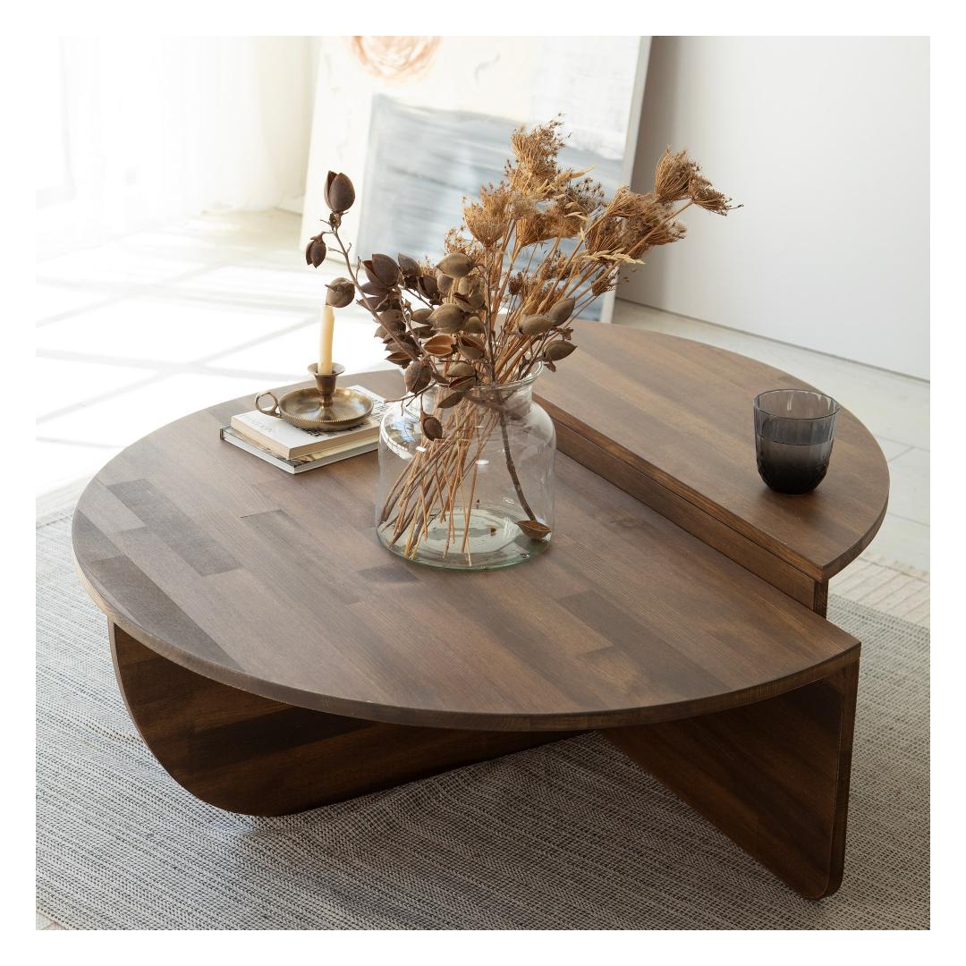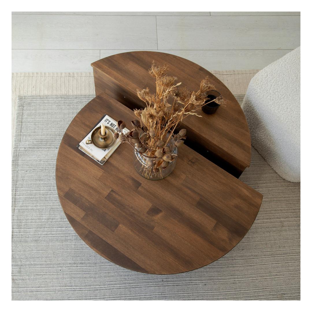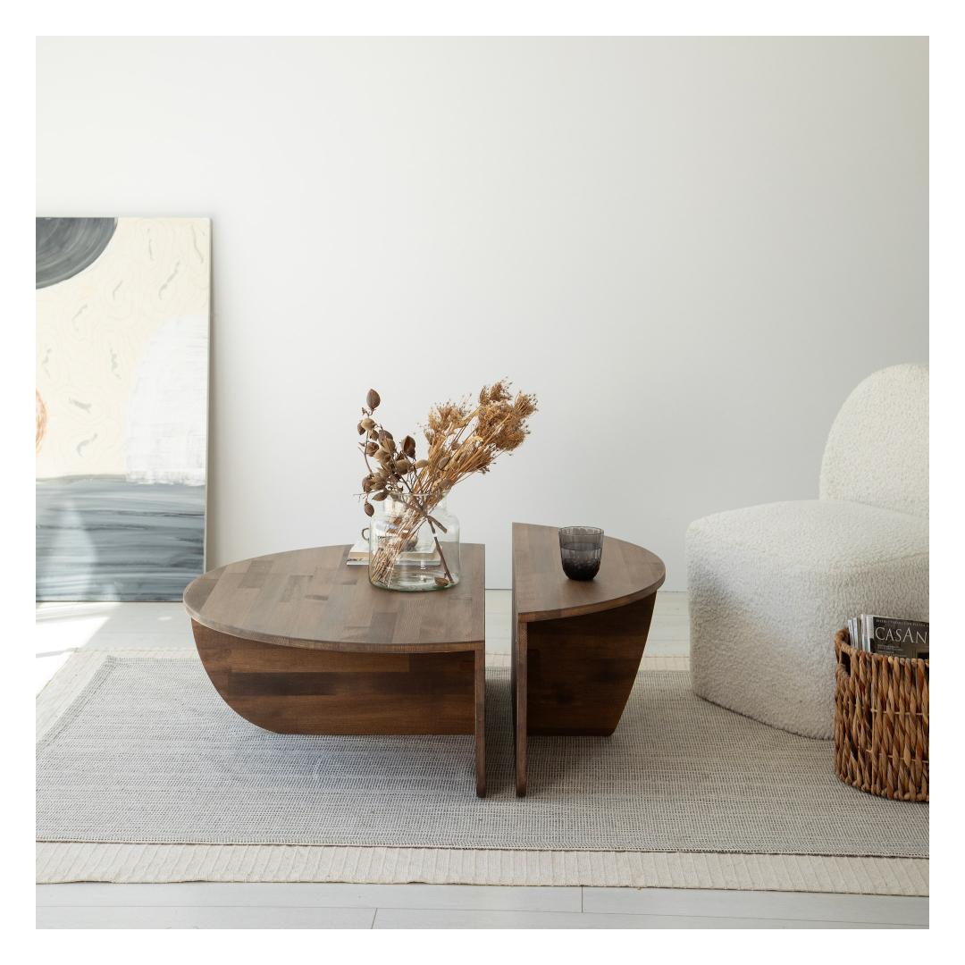 Muutke oma elutuba stiilseks ja elegantseks paradiisiks meie uimastava kohvilaudade komplektiga. See komplekt on valmistatud 100% männi täispuidust, mis väljendab elegantsust ja vastupidavust, muutes selle ideaalseks täienduseks igasse koju.
