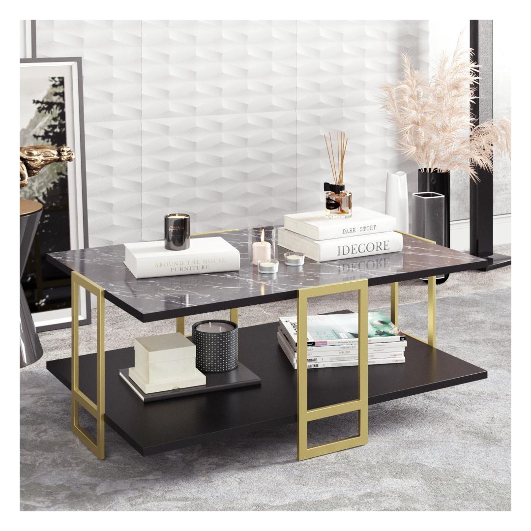 Tutvustame meie suurepärast barokist inspireeritud kohvilauda, mis on loodud lisama teie eluruumi glamuuri ja elegantsi. See ülima täpsusega valmistatud kohvilaud on valmistatud 100% melamiiniga kaetud puitlaastplaadist, mis tagab vastupidavuse ja pikaealisuse. 18 mm paksus lisab sellele vastupidavust, muutes selle ideaalseks täienduseks teie kodule. Võrratu ilu ja stiilSee lummava marmormustriga kohvilaud õhkab rafineeritust ja luksust. Keerukad detailid ja rikkalikud kuldsed ja mustad värvid loovad hämmastava visuaalse atraktiivsuse, mis muudab selle igas toas tähelepanu keskpunktiks. Selle barokist inspireeritud disain lisab külluslikkust, tõstes teie ruumi üldist esteetikat. Muudatlik ja funktsionaalneSee kohvilaud mitte ainult ei tõsta teie kodu ilu, vaid pakub ka praktilisust. 2-astmeline disain pakub rohkelt hoiuruumi, mis võimaldab teil hoida oma hädavajalikke asju organiseeritult ja käeulatuses. Metallist jalad tagavad stabiilsuse ja toe, mis tagab, et see kohvilaud peab vastu aja katsumusele. Tehnilised üksikasjad:Materjal: Materjal: Materjal: Materjal: Materjal: Materjal: Materjal: Materjal: materjal: 100% melamiiniga kaetud puitlaastplaatPaksus: 18mmMetallist jalad lisavad stabiilsustKohvilaua suurus: Laius: 91. 5cm, kõrgus: 36. 6cm, sügavus: 61. 5cmRiiuli kõrgus: 24,8 cmTäiendav panipaik mugavuse tagamiseksVõtke omaks meie barokist inspireeritud kohvilaud ja muutke oma elutuba elegantsi ja rafineerituse paradiisiks. Hellitage selle marmormustri ilu ja kogege stiili ja funktsionaalsuse täiuslikku segu. Uuendage oma kodu selle peenikese esemega juba täna. Värv: Gold Black