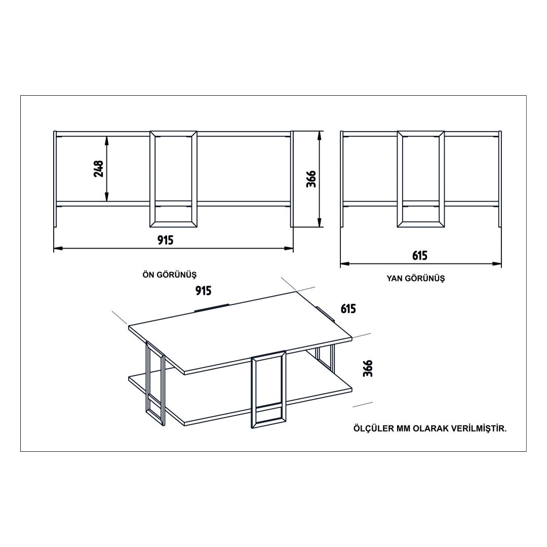 Coffee Table Size: Width: 91,5 cm Height: 36,6 cm Depth: 61,5 cm