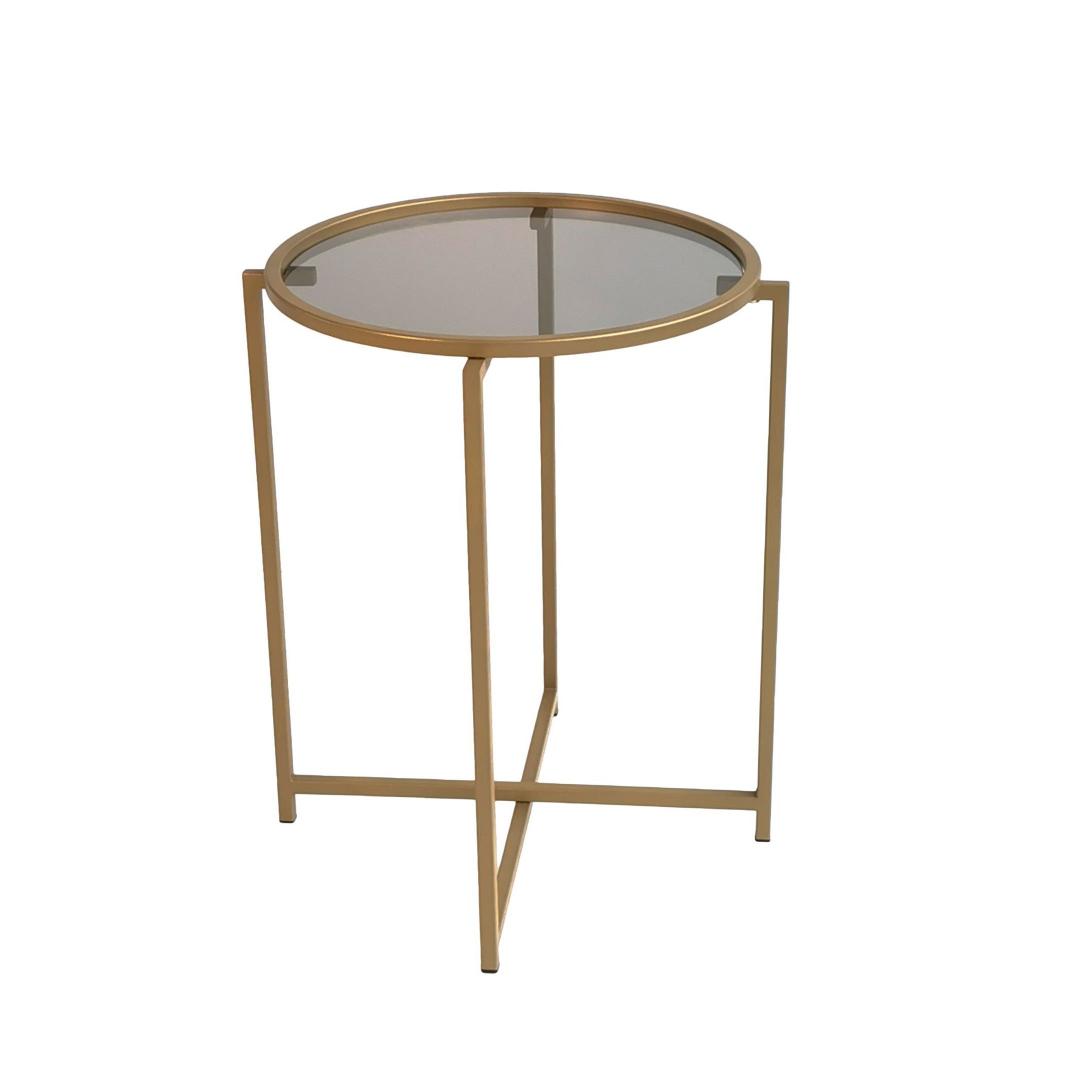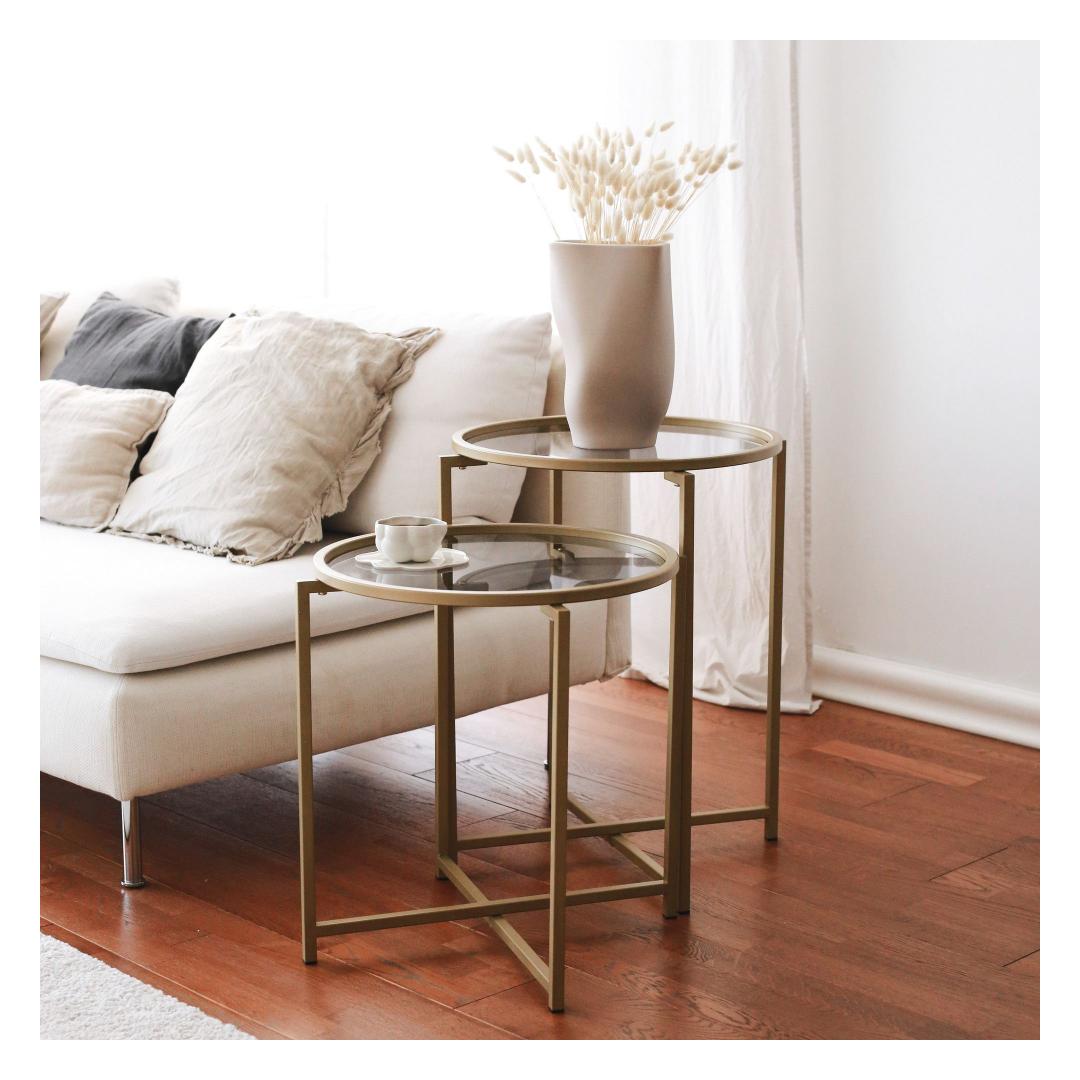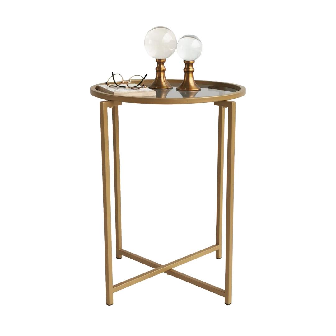 Selle kohvilaua kuld- ja suitsuvärvide kombinatsioon õhkab rafineeritust ja stiili. Kontrastsed toonid loovad lummava visuaalse atraktiivsuse, muutes selle tähelepanu keskpunktiks igas ruumis. Kompaktsete mõõtmetega (50 cm laius, 60 cm kõrgus ja 50 cm sügavus) on see mitmekülgne ese, mis sobib sujuvalt igasse ruumi.
