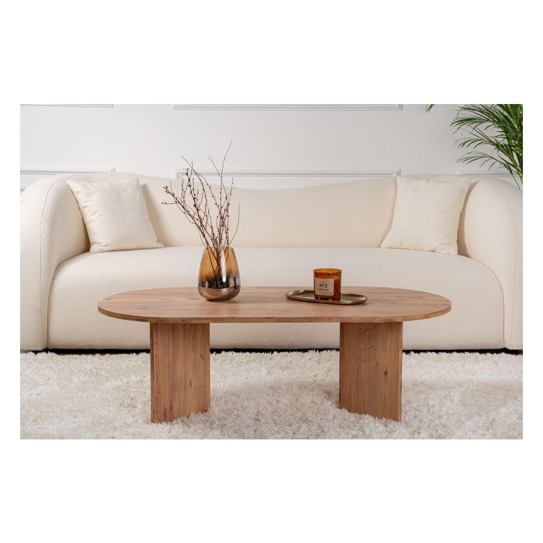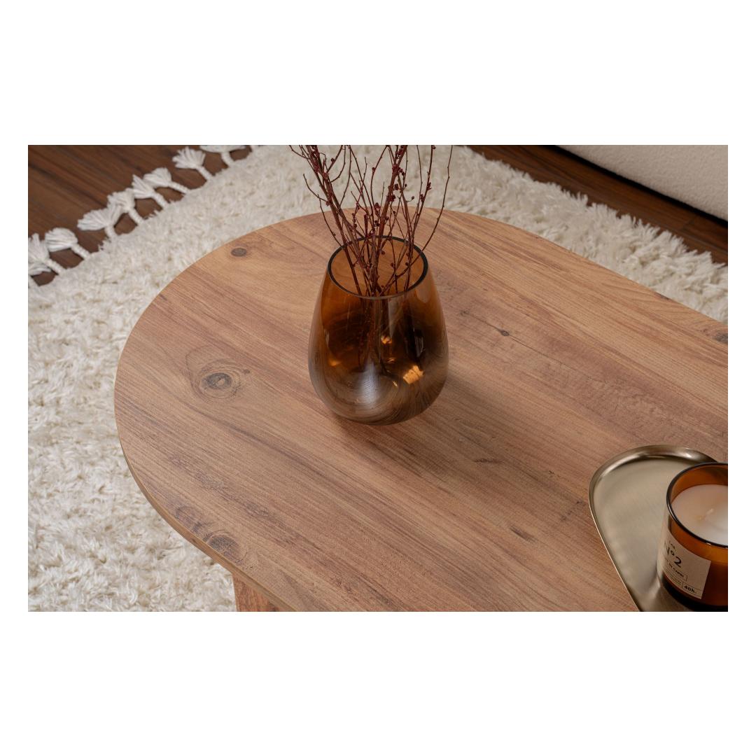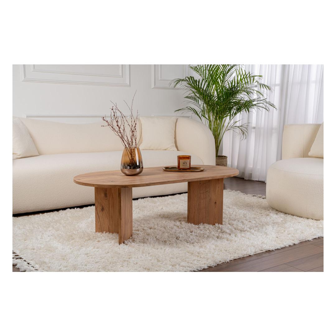 Atlandi mändi kohvilaud on valmistatud 100% melamiinkattega puitlaastplaadist, tagades vastupidavuse ja pikaealisuse. Sujuv disain ja Atlandi mändi värv lisavad igasse ruumi soojust ja rafineeritust. Selle piisav suurus pakub rohkelt ruumi teie kohvitasside, ajakirjade ja dekoratiivsete esemete jaoks, muutes selle nii funktsionaalseks kui ka stiilseks.