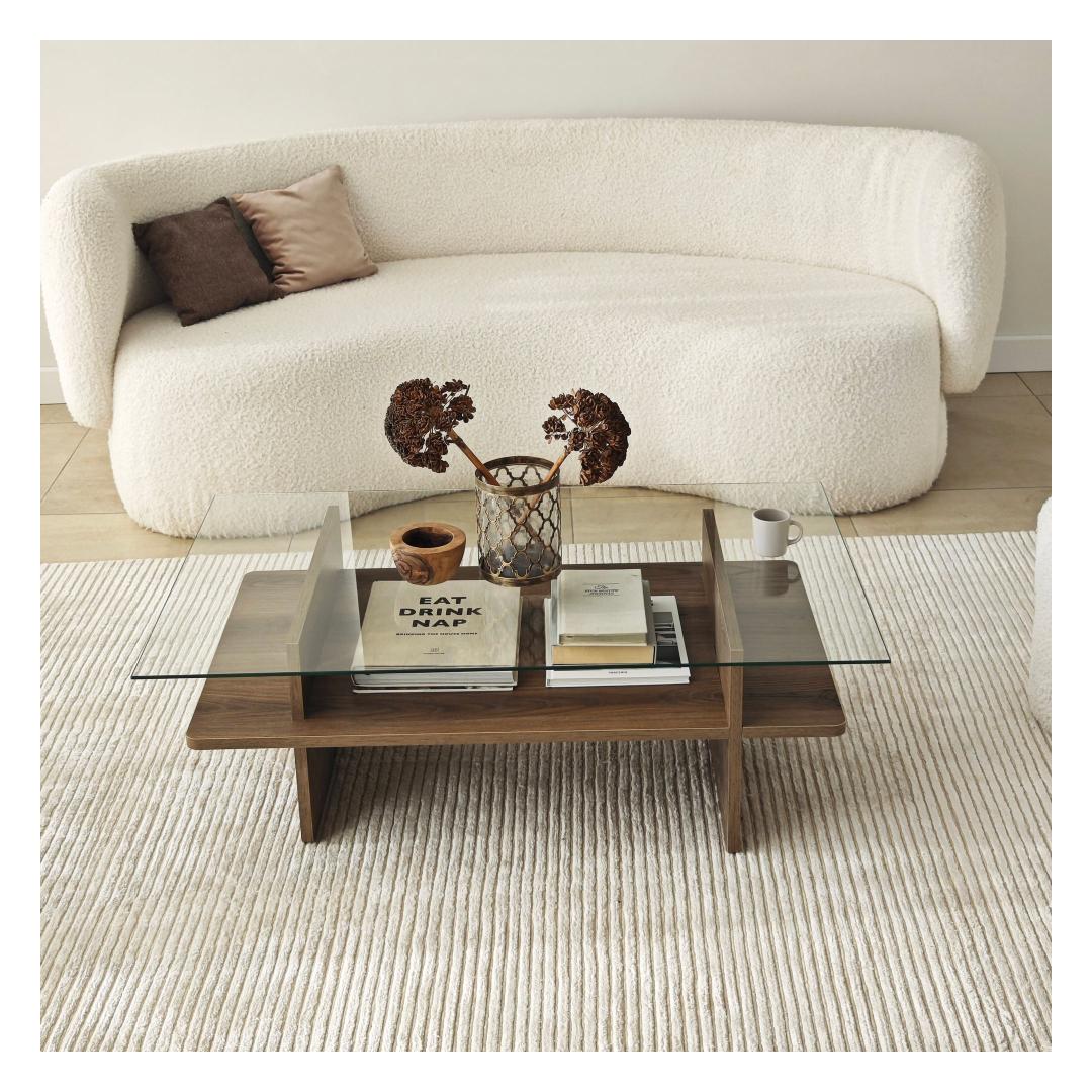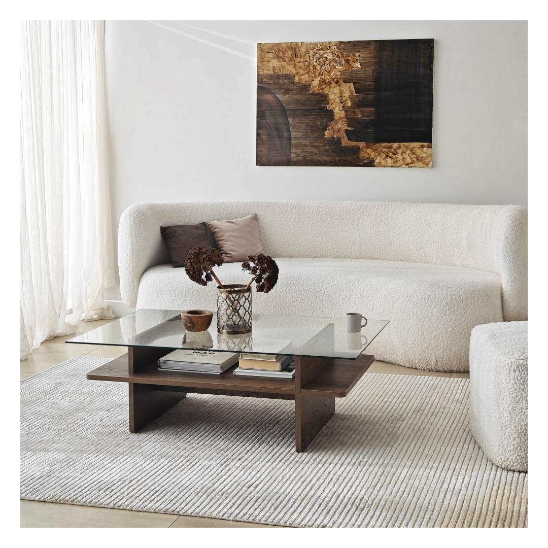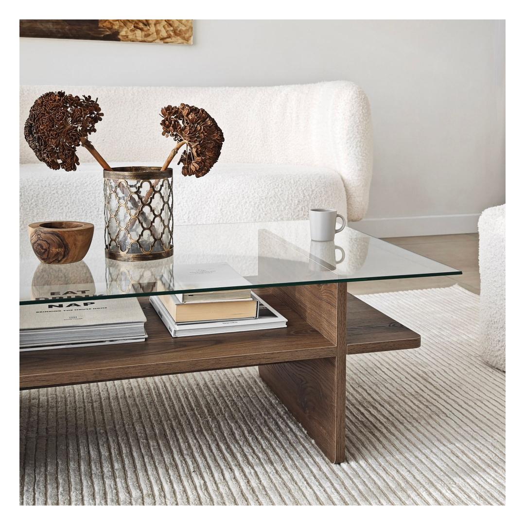 Muuda oma elutuba meie uimastava kohvilaualauaga, mis on valmistatud 100% karastatud klaasist, mis tagab elegantse ja moodsa välimuse. Läbipaistev klaasplaat võimaldab teil esitleda oma lemmikdekoori, samal ajal kui pähklipuu värvi raam lisab igasse ruumi soojust ja elegantsust.