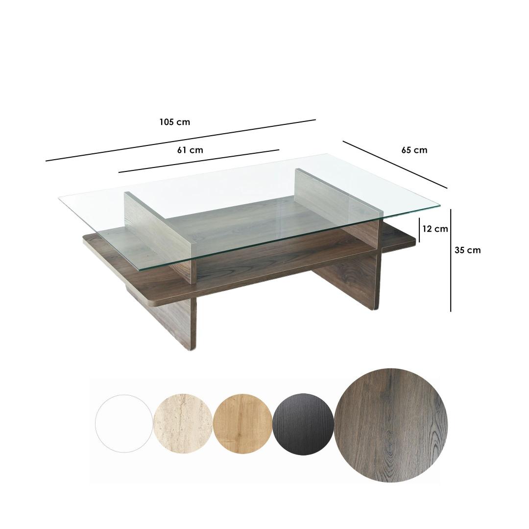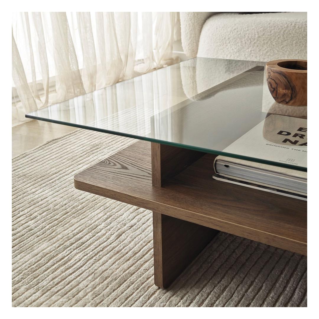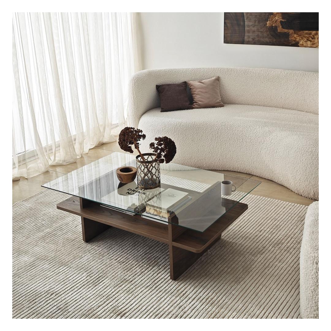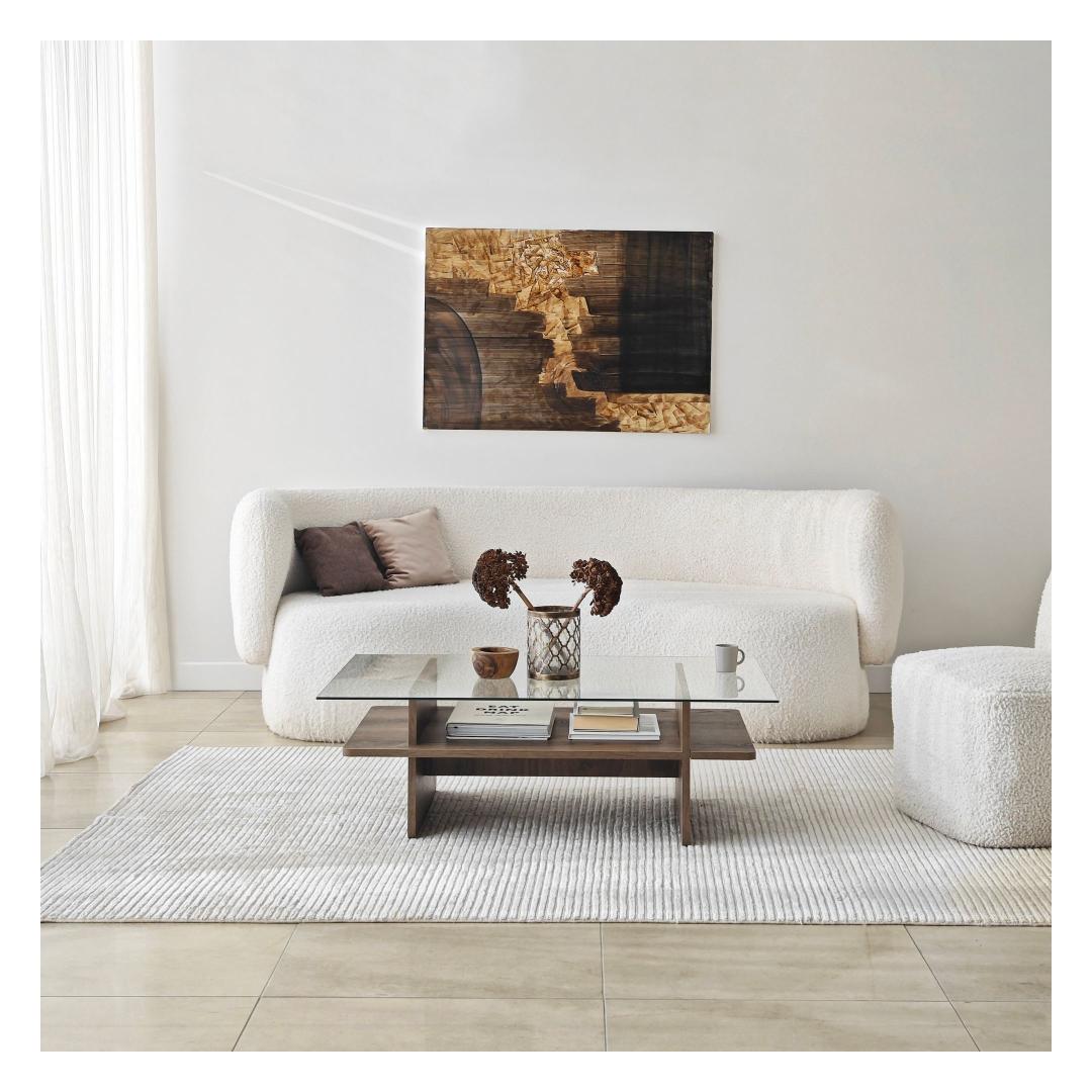 Muuda oma elutuba meie uimastava kohvilaualauaga, mis on valmistatud 100% karastatud klaasist, mis tagab elegantse ja moodsa välimuse. Läbipaistev klaasplaat võimaldab teil esitleda oma lemmikdekoori, samal ajal kui pähklipuu värvi raam lisab igasse ruumi soojust ja elegantsust.
