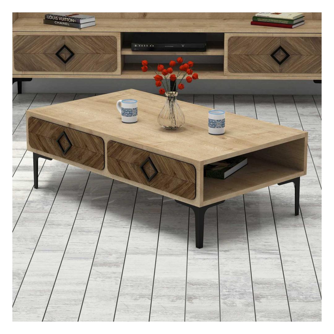 Tutvustame meie suurepärast kohvilauda, mis on tõeline meistriteos, mis tõstab teie eluruumi uuele tasemele. Vabastage elegantsi jõudSukelduge meie kohvilaudade elegantsi, mis on hoolikalt valmistatud, et lisada teie koju luksust. Selle moodne ja uudne disain, kombineerituna tööstusliku väändega, loob lummava keskse eseme, mis jätab teie külalised aukartusse.Kompromissitu kvaliteetSee ülima täpsusega valmistatud kohvilaud on valmistatud 100% melamiiniga kaetud puitlaastplaadist, mis tagab erakordse vastupidavuse ja pikaealisuse. Selle 18 mm paksus tagab tugeva ja usaldusväärse konstruktsiooni, mis peab vastu aja katsumusele. Esteetiliselt meeldivSelle laua tammepuust värv(id) kiirgavad sooja ja kutsuvat õhkkonda, sobitudes vaevata mis tahes olemasoleva sisustusega. Selle mõõtmed on 105 cm laius, 34. 6 cm kõrgus ja 60 cm sügavus muudavad selle ideaalselt sobivaks teie vajaduste rahuldamiseks, olgu selleks siis teie lemmikraamatute esitlemine või mõnusa pärastlõunase tee nautimine. Transformeerige oma eluruumVärskendage oma elutuba selle lummava kohvilaualauaga ja vaadake, kuidas see muudab teie ruumi mugavuse ja stiili paradiisiks. Selle ainulaadne disain ja laitmatu käsitöö saavad kahtlemata teie toa keskpunktiks, luues atmosfääri, mis on nii kutsuv kui ka inspireeriv. Tehnilised üksikasjad:Materjal: Materjal: Materjal: Materjal: Materjal: Materjal: Materjal: Materjal: materjal: 100% melamiiniga kaetud puitlaastplaatPaksus: 18 mmLaius: 105 cmKõrgus: 34,6 cmSügavus: 60 cmVärv: TammKontseptsioon: Kaasaegne - uudsus, tööstuslikHellitage meie kohvilaudade elegantsi ja võlu ning kogege luksuse tõelist olemust oma kodus. Tellige kohe ja laske sellel peenel mööbliesemel oma eluruumi uuesti määratleda. Värv: Oak